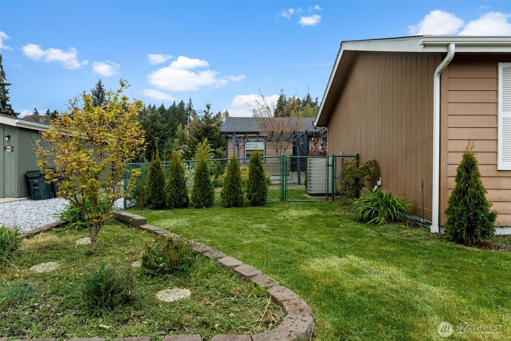 Welcome to easy living in the highly coveted Brookdale Greens 55+ gated community! This stunning, 3-bedroom, 2-bathroom home offers 1,508 square feet of absolute turn-key perfection, featuring vaulted ceilings and an expansive open floor plan bathed in natural light. The primary suite serves as a private retreat with its walk-in closet and a spa-like 5-piece en suite, including a separate soaking tub. Set on a massive 86' x 54' landscaped corner lot, the property boasts a fully fenced yard with a built-in sprinkler system, a carport, a large attached storage outbuilding, and a charming pergola that stays with the home. This stellar neighborhood provides an active lifestyle with top-tier amenities including a clubhouse, exercise room, and BBQ areas, plus convenient RV storage for a low monthly fee. Perfectly situated just minutes from the Sprinker Recreation Center, Spanaway Lake Park/Golf Course, and the bustling Pacific Avenue retail corridor, this marvelous home offers the ideal balance of gated serenity and suburban convenience.