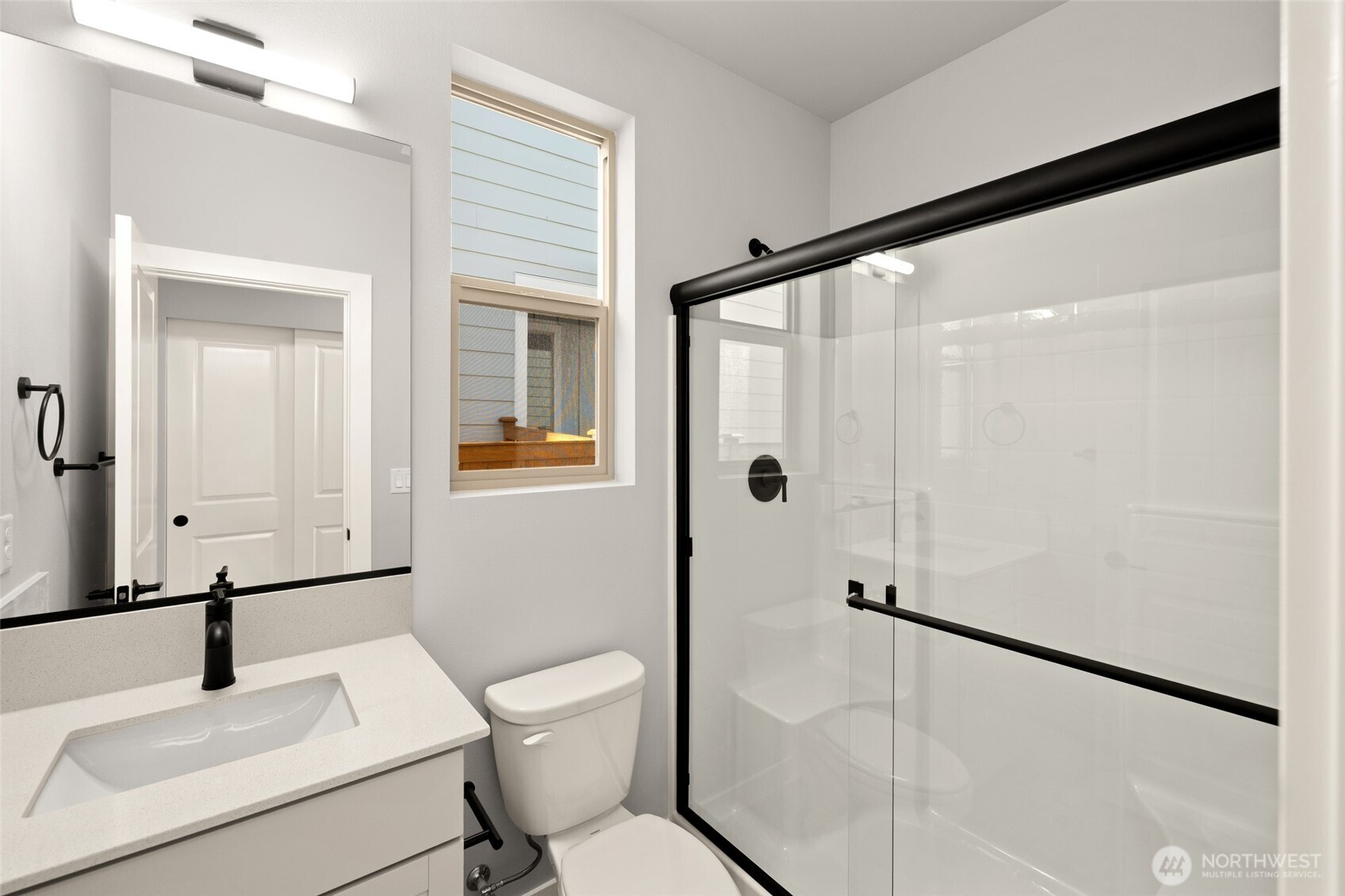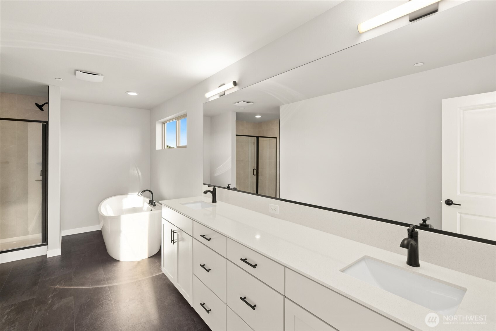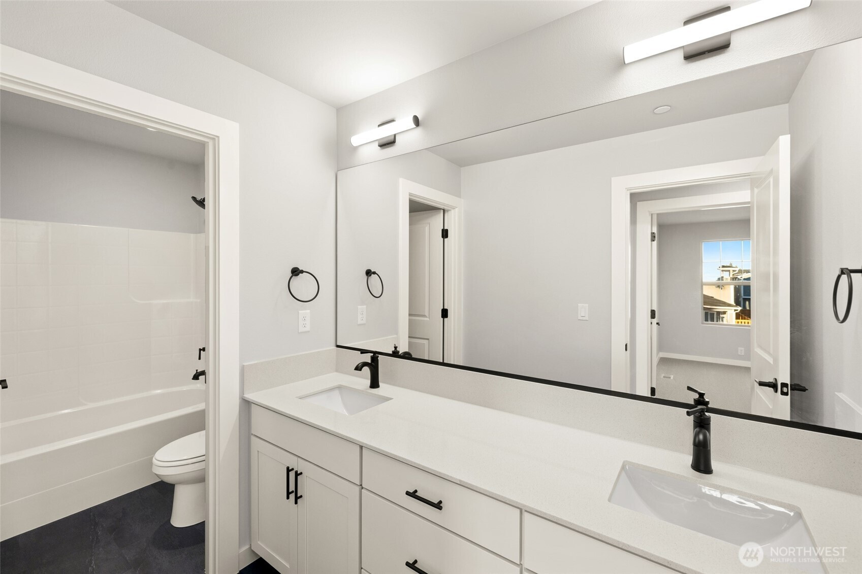 Experience the Conner Difference - where thoughtful design, quality craftsmanship, and everyday functionality shine. Covered front porch welcomes you into a light-filled foyer leading to a spacious great room with soaring 12-foot ceilings & expansive windows. Chef-inspired kitchen features walk-in pantry w/outlet, 5-burner gas range, generous counter space, soft close cabinetry, undermount farmhouse sink & under-cabinet lighting. Additional dedicated tech space for homework or remote business. Enjoy indoor-outdoor living with great room access to outdoor covered living overlooking fully fenced backyard. Main-level guest suite has attached ¾ bath for multigenerational living or guests. Upstairs, an open loft and four additional bedrooms, full bath, laundry room with extra cabinetry. Spacious primary suite offers vaulted ceilings, oversized walk-in closet, spa-inspired 5-piece bath has freestanding soaking tub, dual sinks, full tile shower with glass door. 3-minute walk to community clubhouse featuring gym, pools, hot tub, media room, meditation pond & unbeatable Mt Rainier views plus numerous nearby walking trails. Limited lots available with 3,022 sq ft Hawk plan, largest at Uplands, offering 5 bedrooms & 3.25 baths and main level suite.