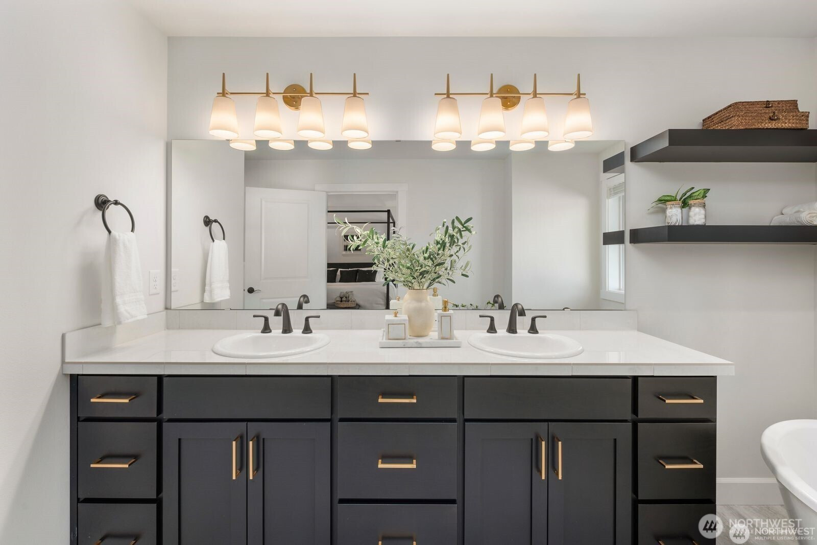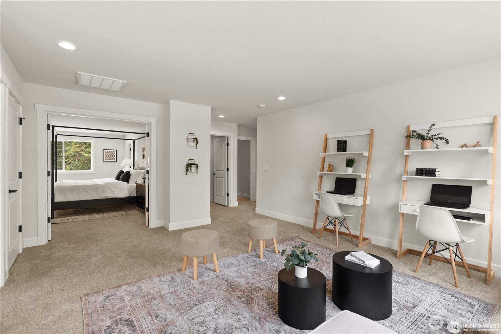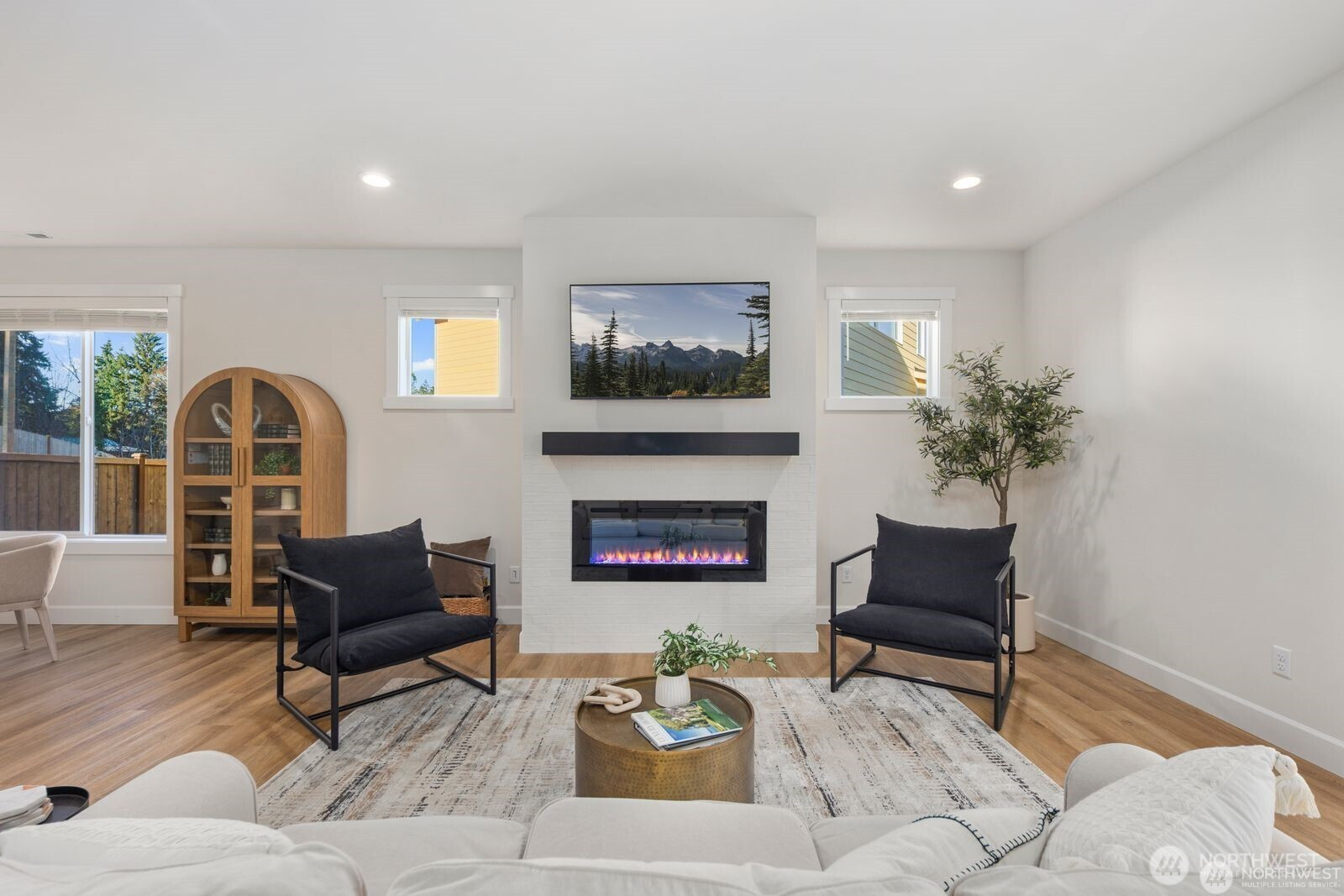 Introducing a MOVE-IN READY Bainbridge Plan by Sager Family Homes in the brand-new Evelyn Heights community! This thoughtfully designed home features an open great room layout with a contemporary kitchen offering quartz countertops, a breakfast bar, and a butler’s pantry. The spacious living room is highlighted by a cozy fireplace. The main level includes a versatile multi-generational suite with a ¾ bath, wet bar, and mini fridge—ideal for guests, a home office, or potential rental use—along with a dining area and mudroom. Upstairs, enjoy a generous loft, a primary suite with a walk-in closet, dual sinks, a free-standing soaking tub, and a walk-in shower, plus three additional bedrooms and a conveniently located laundry room. Outside, relax on the covered patio and fully fenced backyard. Conveniently located minutes from shopping, dining, and everyday amenities, this home offers modern comfort and flexibility for a variety of lifestyles.
