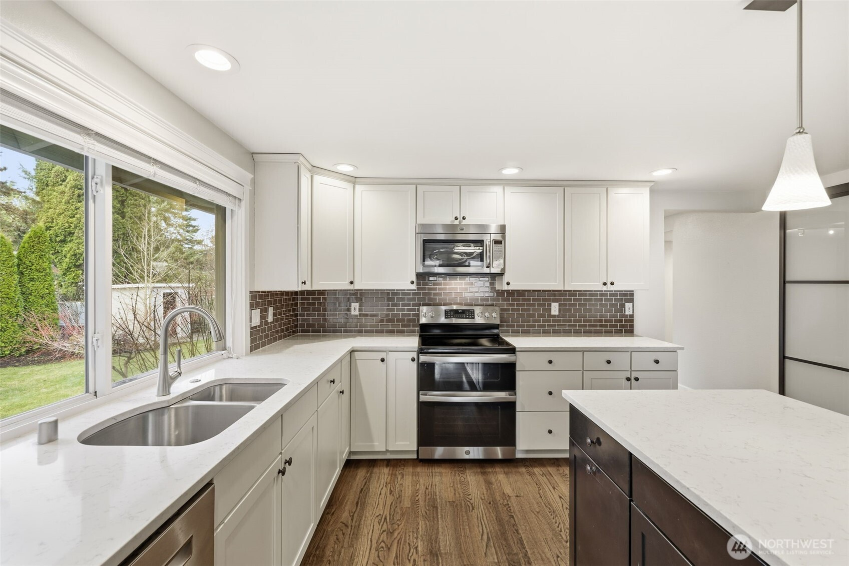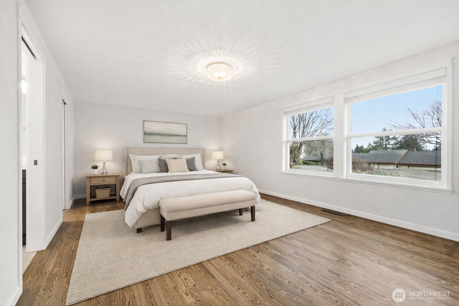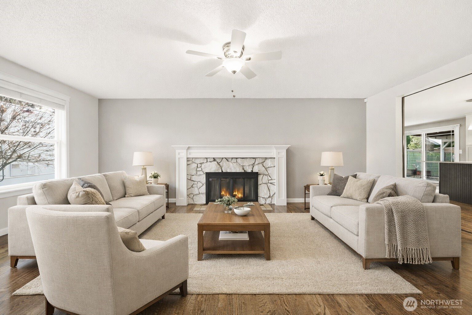 Extensively remodeled rambler in the heart of Fircrest offering just under 2,000 sq ft of beautifully updated, one-level living. This 3-bedroom home features an entertainers kitchen w/ quartz countertops, SS appliances, subway tile backsplash & generous island. Updated bathrooms, newer windows, and stunning hardwood floors throughout—making it a true standout. Enjoy the ease of one-level living paired with modern amenities, a heat pump for year-round comfort, tankless hot water heater and a generous two-car garage. Situated on a flat lot with a private, quiet backyard & a covered patio, this home offers both functionality and serenity in a super private setting. A rare find and an exceptional opportunity—this is one you won’t want to miss.