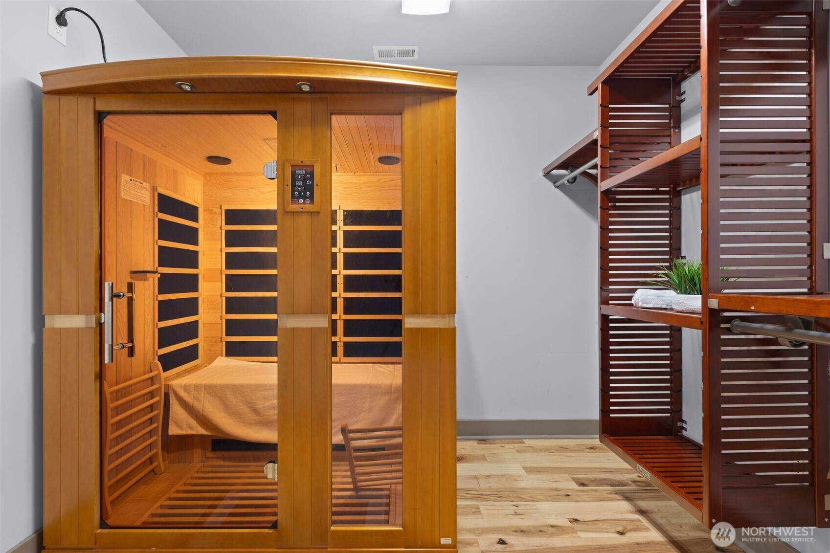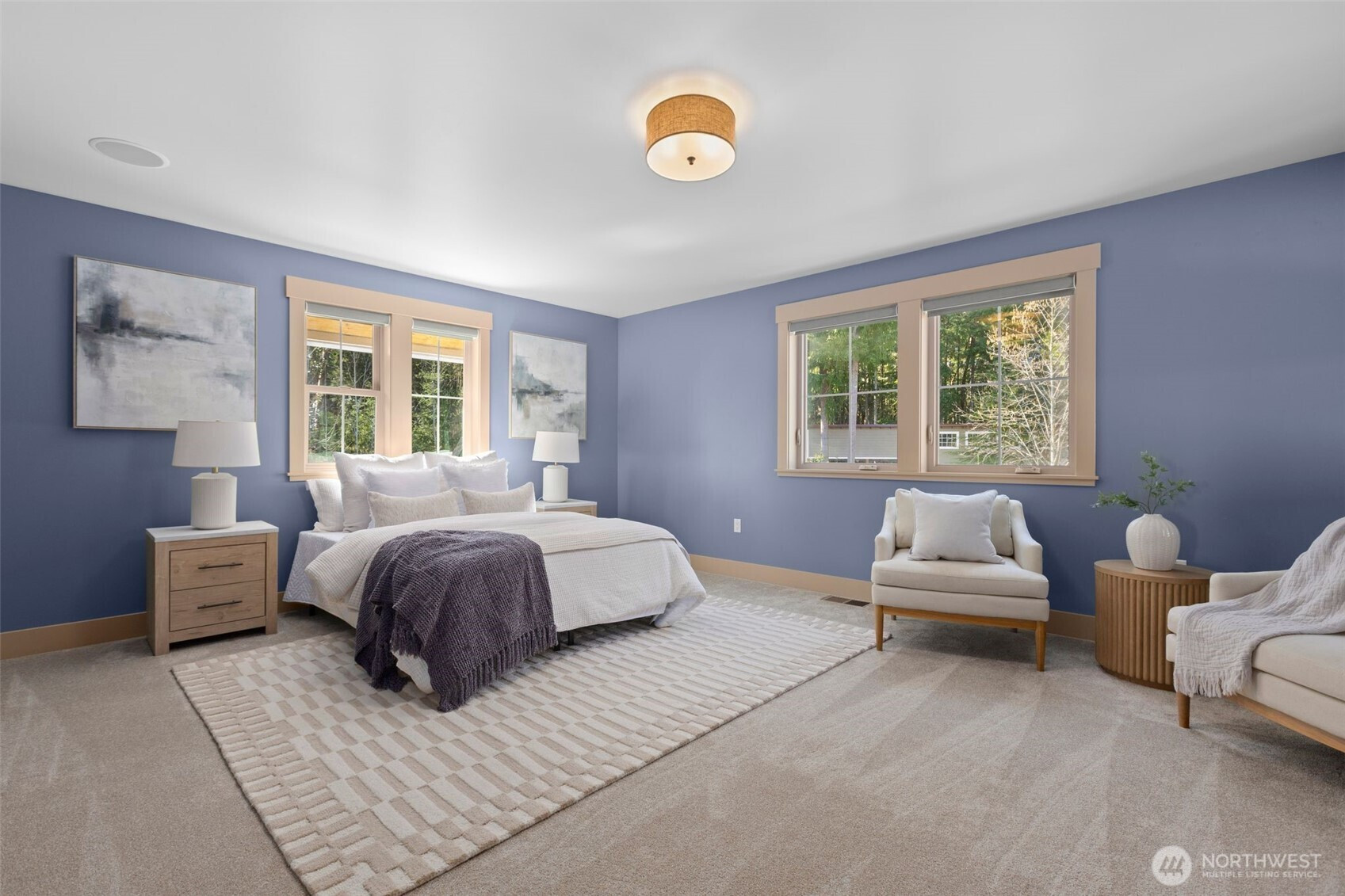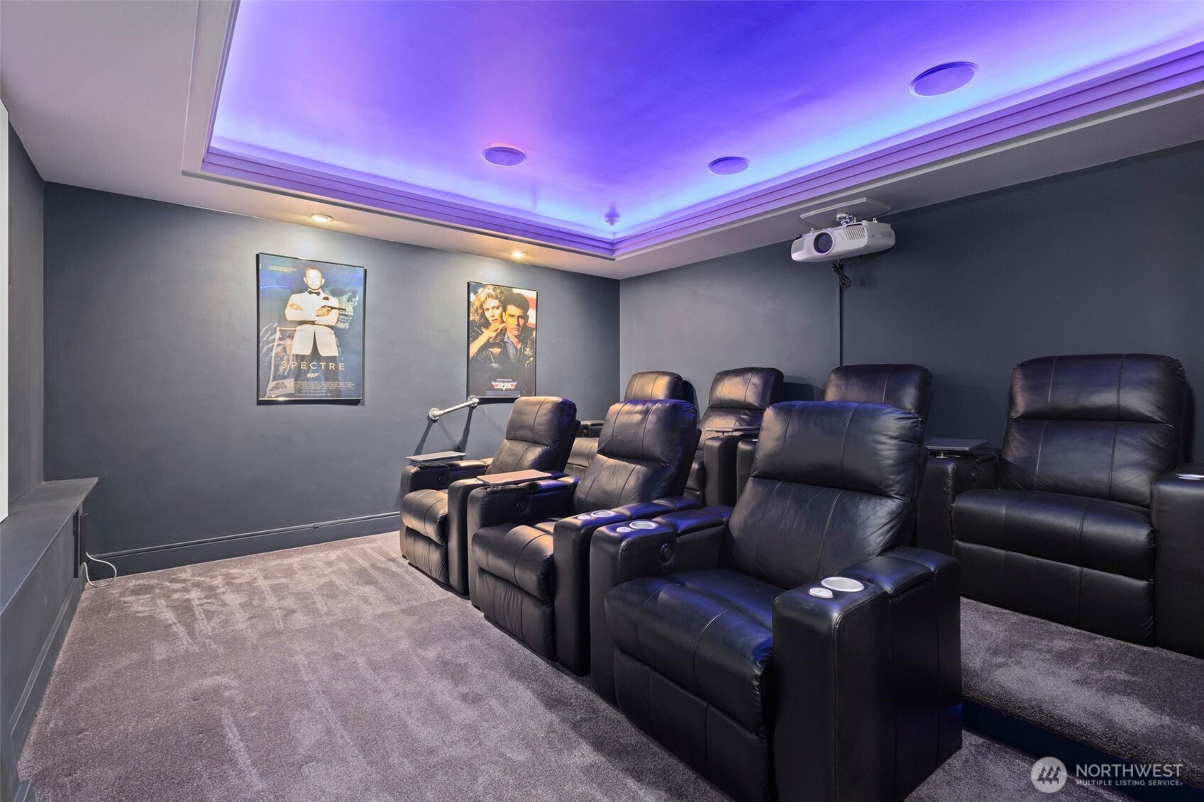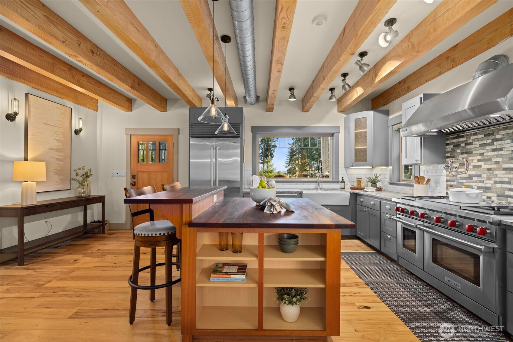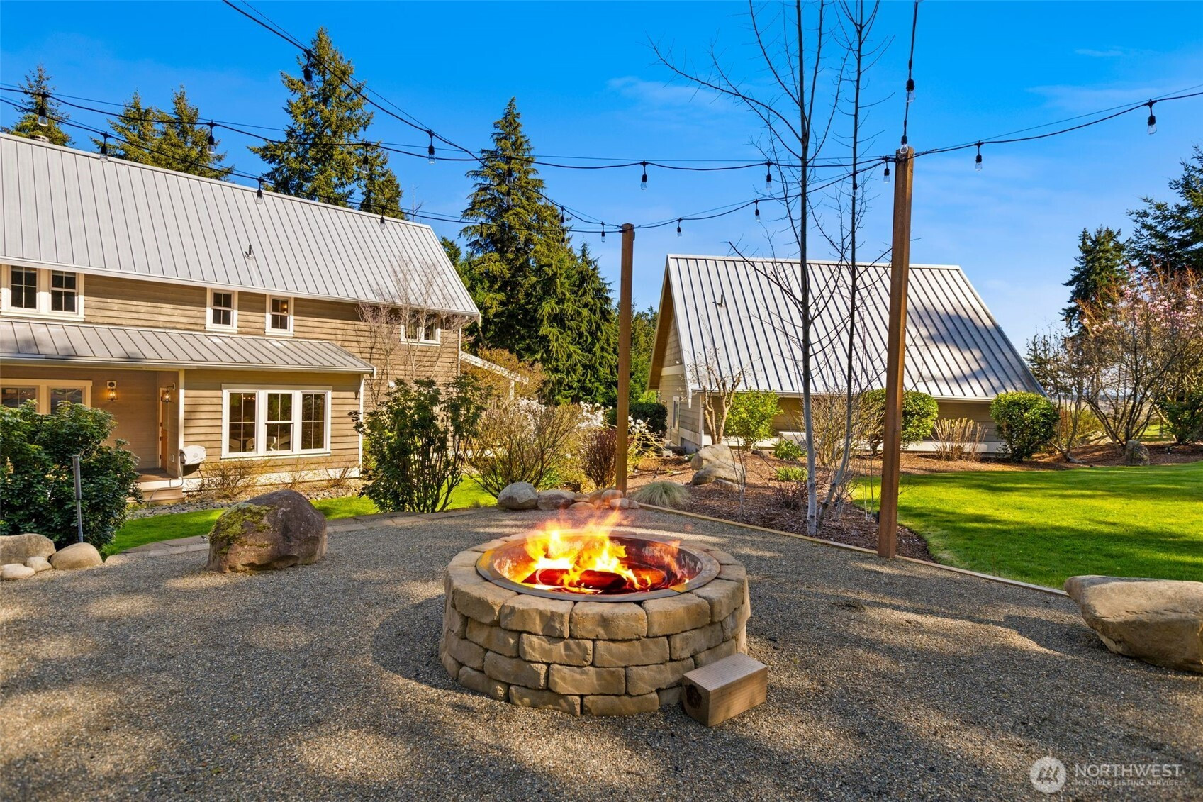 Perched on a private 1.8-acre lot on Fox Island, this custom home is filled with natural light and a warmth you feel the moment you walk in. Tucked away on a quiet cul-de-sac and surrounded by trees, it features beautiful post-and-beam construction and thoughtful details throughout. Outdoor living truly shines here, with a newly built patio and a 40x16 in-ground pool with hot tub, perfect for long summer nights with friends. For those who need space to create or tinker, the brand new shop includes an 18x26 garage and a 20x26 concrete pad. Inside, the chef’s kitchen is equipped with Wolf appliances, a breakfast bar, and opens seamlessly to the dining area with built-ins and quartz counters. The main level offers an easy, open layout for entertaining, along with a main-floor primary suite and dedicated office. Upstairs, you'll find two oversized bedrooms and a full bathroom. Downstairs, the fully finished lower level is ready for fun and relaxation with a home theater featuring a newer 4K projector and built-in speakers, an optional fourth bedroom, plus a workout room, sauna, and plenty of storage. The gated entry adds to the sense of privacy, and the detached two-car garage is topped with a 364 sq ft apartment/MIL with a 3/4 bath, ideal for guests, extended living, or added flexibility. The kind of property that checks every box—space to host, space to create, and a setting that feels like a true retreat.