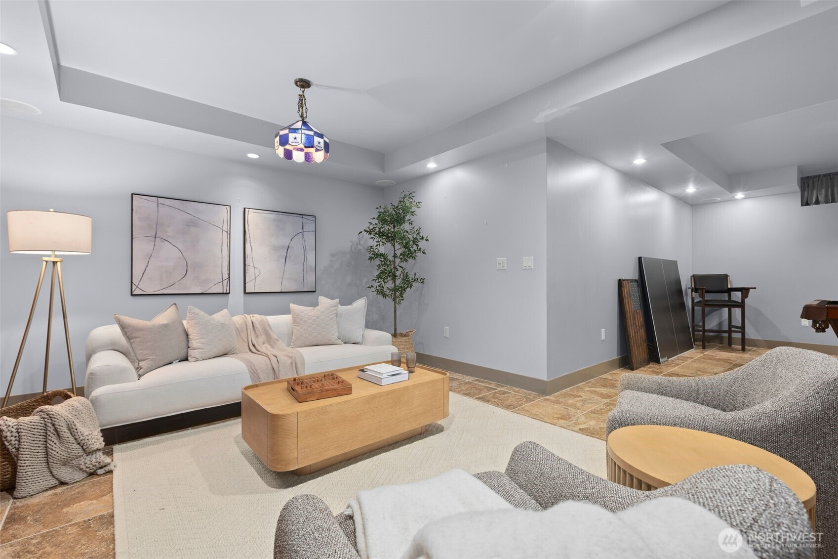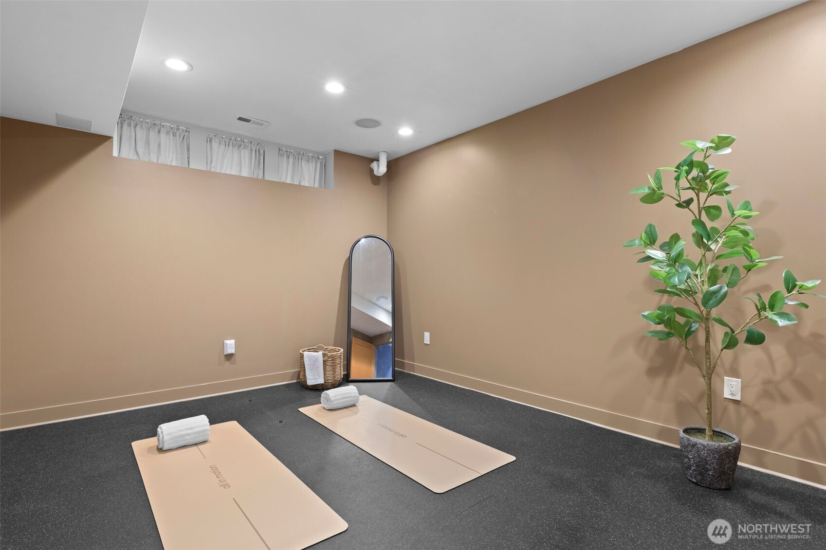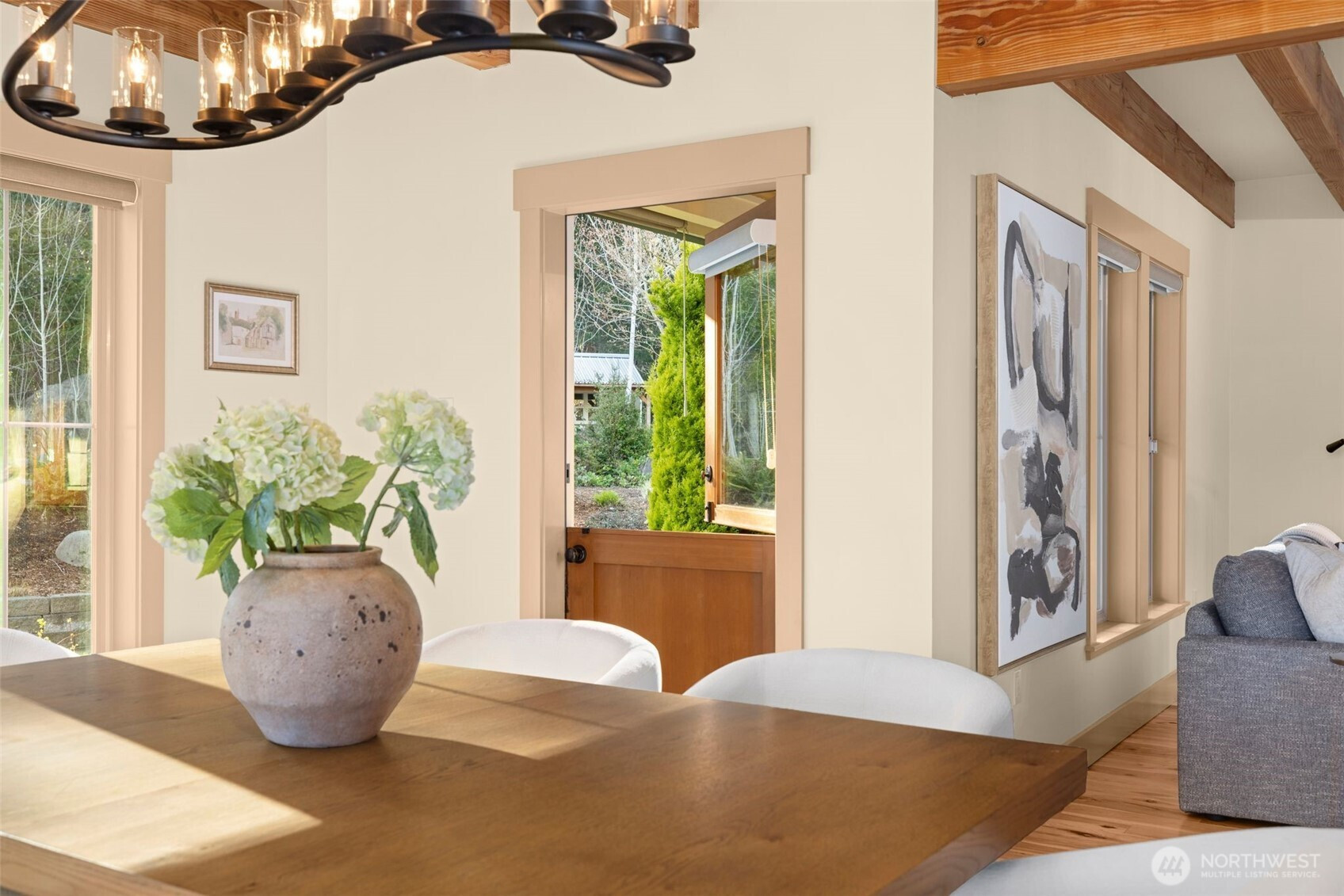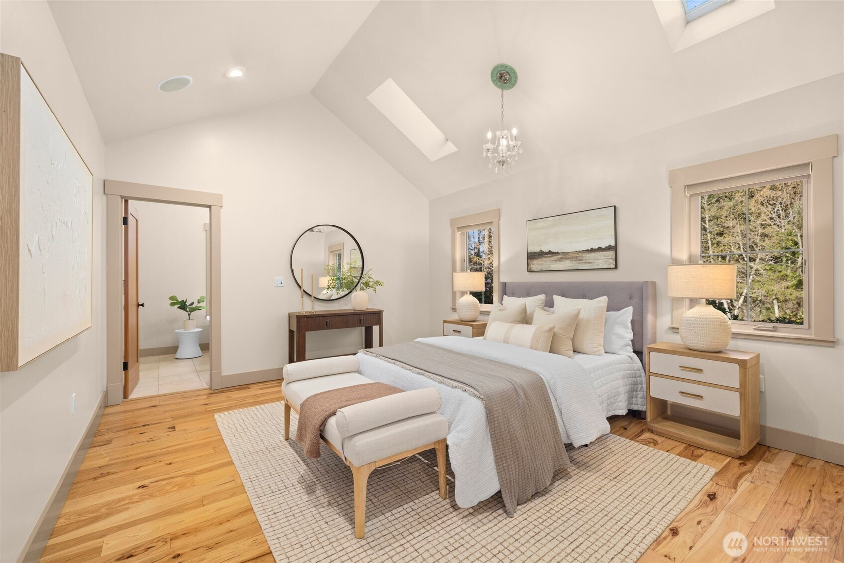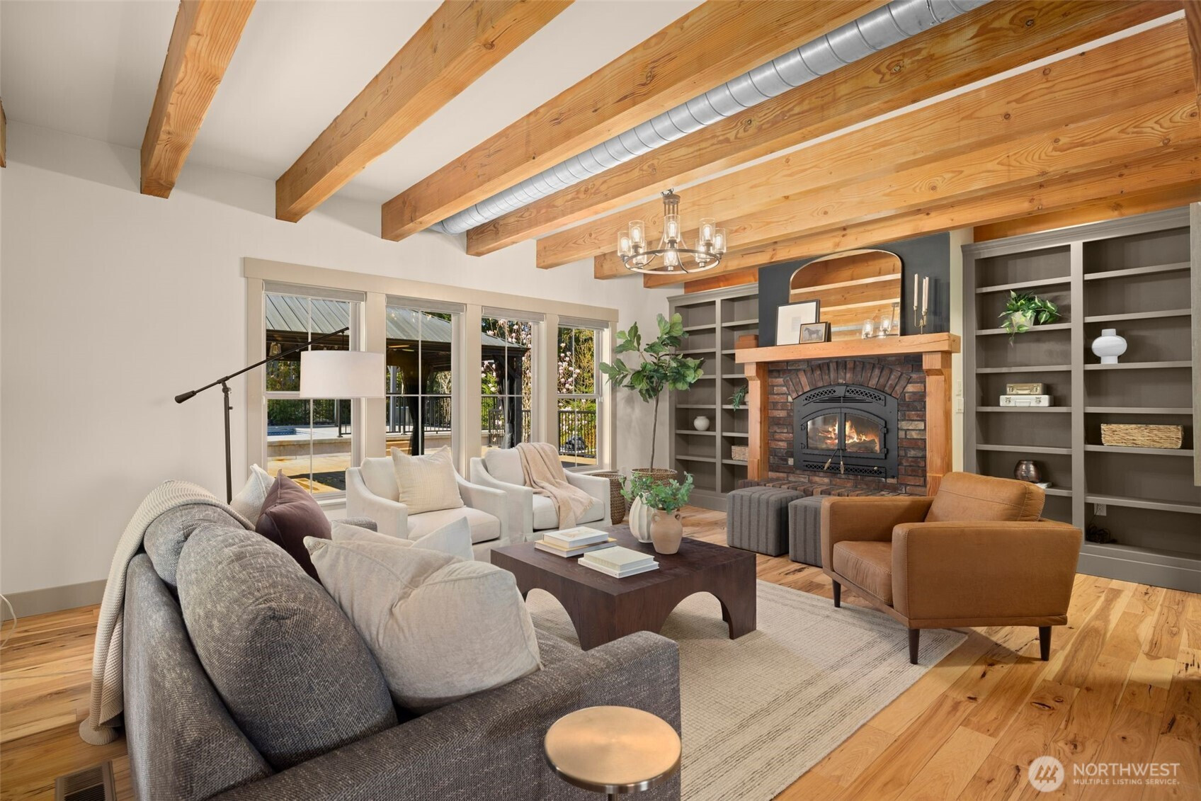 Perched on a private 1.8-acre lot on Fox Island, this custom home is filled with natural light and a warmth you feel the moment you walk in. Tucked away on a quiet cul-de-sac and surrounded by trees, it features beautiful post-and-beam construction and thoughtful details throughout. Outdoor living truly shines here, with a newly built patio and a 40x16 in-ground pool with hot tub, perfect for long summer nights with friends. For those who need space to create or tinker, the brand new shop includes an 18x26 garage and a 20x26 concrete pad. Inside, the chef’s kitchen is equipped with Wolf appliances, a breakfast bar, and opens seamlessly to the dining area with built-ins and quartz counters. The main level offers an easy, open layout for entertaining, along with a main-floor primary suite and dedicated office. Upstairs, you'll find two oversized bedrooms and a full bathroom. Downstairs, the fully finished lower level is ready for fun and relaxation with a home theater featuring a newer 4K projector and built-in speakers, an optional fourth bedroom, plus a workout room, sauna, and plenty of storage. The gated entry adds to the sense of privacy, and the detached two-car garage is topped with a 364 sq ft apartment/MIL with a 3/4 bath, ideal for guests, extended living, or added flexibility. The kind of property that checks every box—space to host, space to create, and a setting that feels like a true retreat.