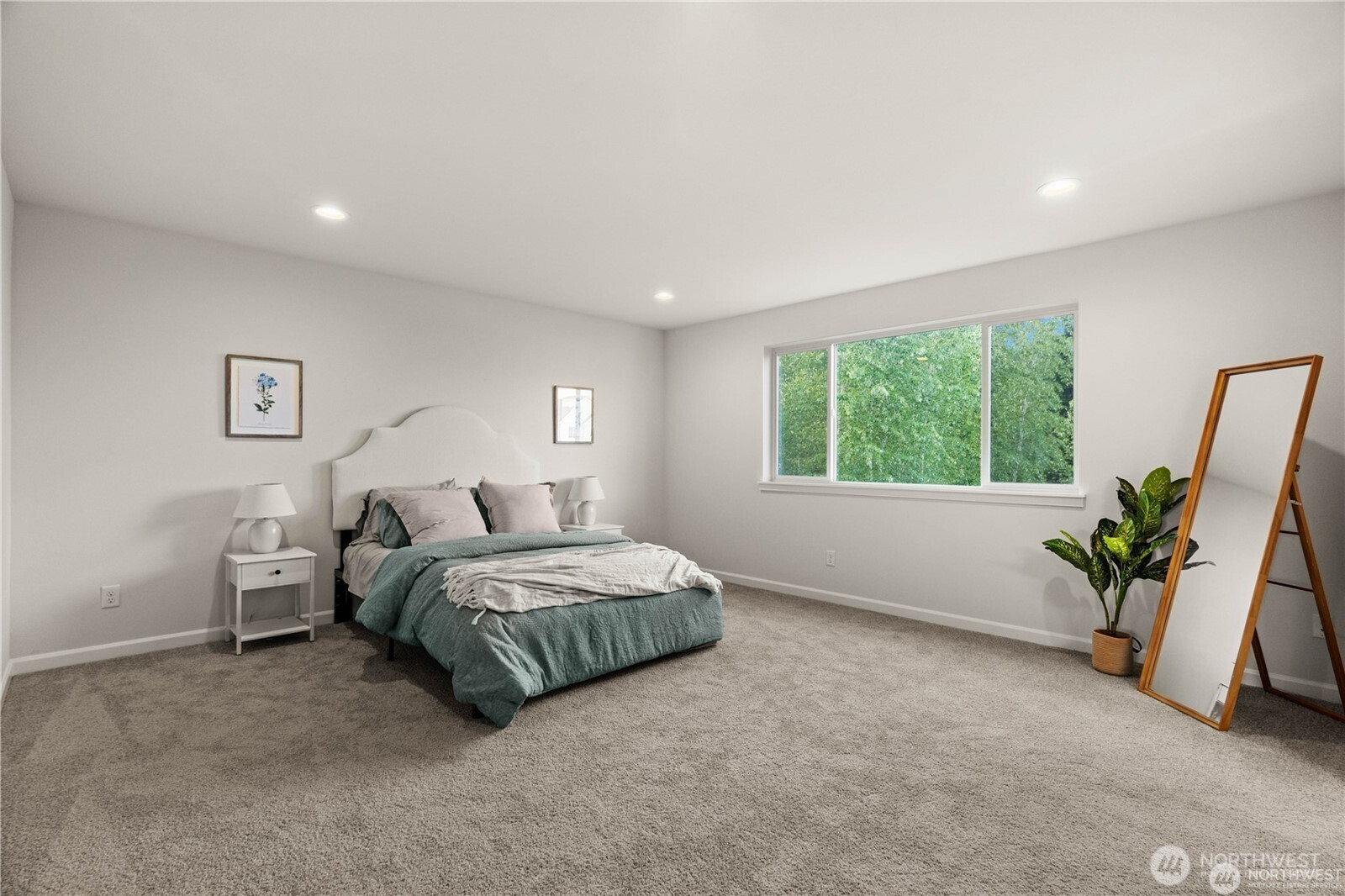 Surrounded by nature and built for modern living, this brand-new, move in ready home in Evelyn Heights invites you to breathe, relax, and settle in. Tucked into a private lot with green space on three sides, the Burrows plan by Sager Family Homes delivers both serenity and sophistication. Inside, sunlight pours into open living and dining areas that seamlessly flow into a stylish kitchen with sleek quartz counters, generous pantry, and breakfast bar—perfect for weekend brunches or evening wine with friends. Need flexible space? The main-floor office/guest suite with adjacent ¾ bath offers ideal privacy. Upstairs, unwind in the airy loft or retreat to the serene primary suite overlooks the lush backdrop of trees, complete with a 5-piece spa bath and walk-in closet. Outside, a secluded patio offers the perfect backdrop for morning coffee, al fresco dinners and weekend BBQs. As a bonus, air conditioning, Three car garage and a fully fenced yard. Complete and move-in ready—your new beginning starts here.
