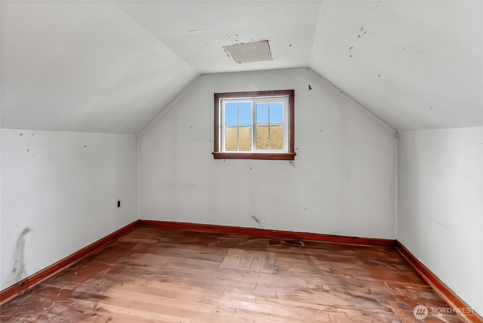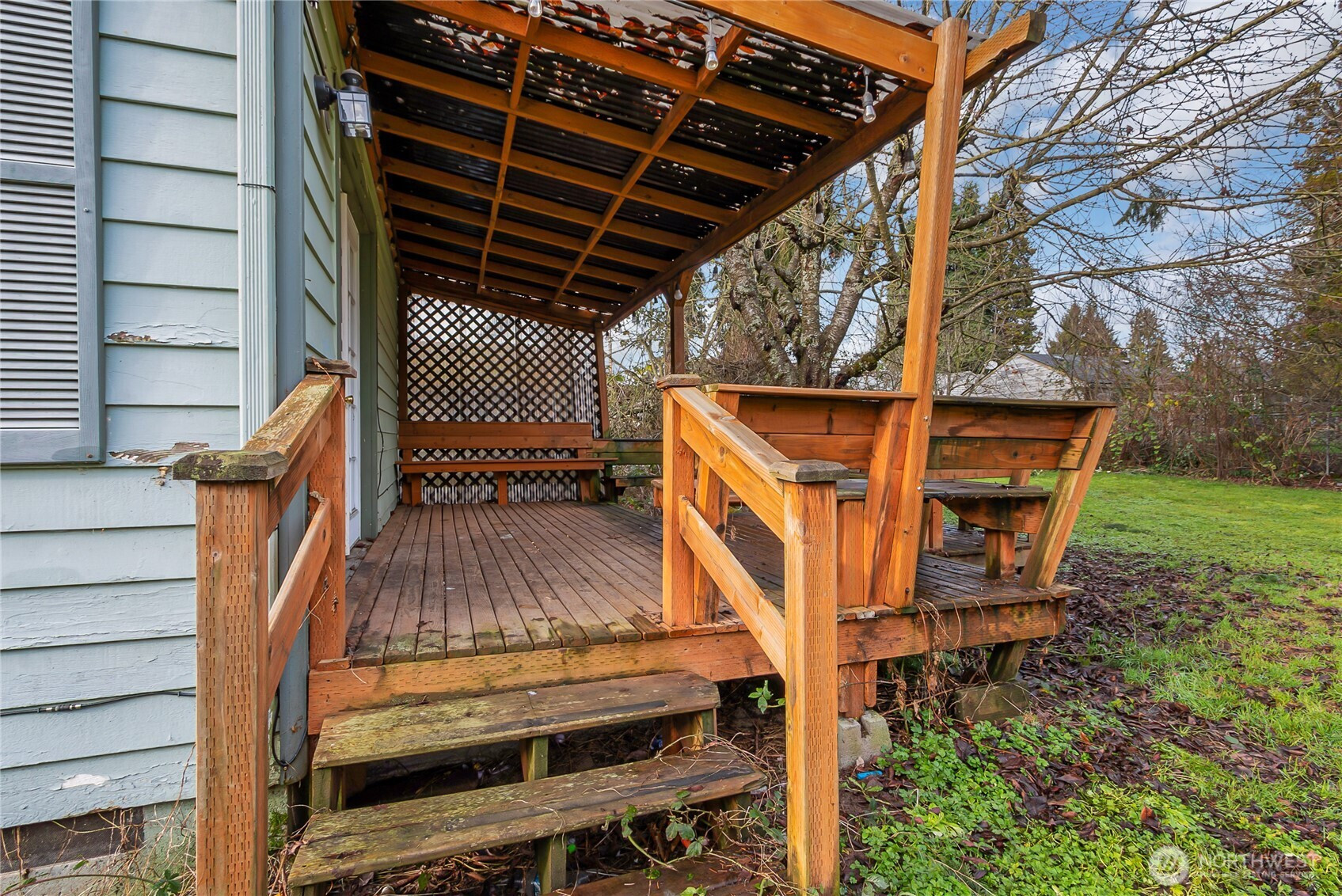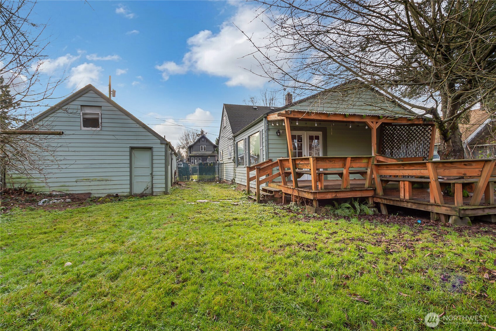 Charming bungalow with tons of potential! This 1,352 sq ft home sits on a large, fenced lot and includes a detached 2-car garage. The main floor features a primary bedroom with attached bath, an additional bedroom and second full bath. Upstairs offers a third bedroom plus versatile loft space. A spacious family room off the kitchen opens through French doors to a deck overlooking the private backyard. Grab your tool belt and come fix this home up to your own taste. Tons of opportunity for sweat equity.