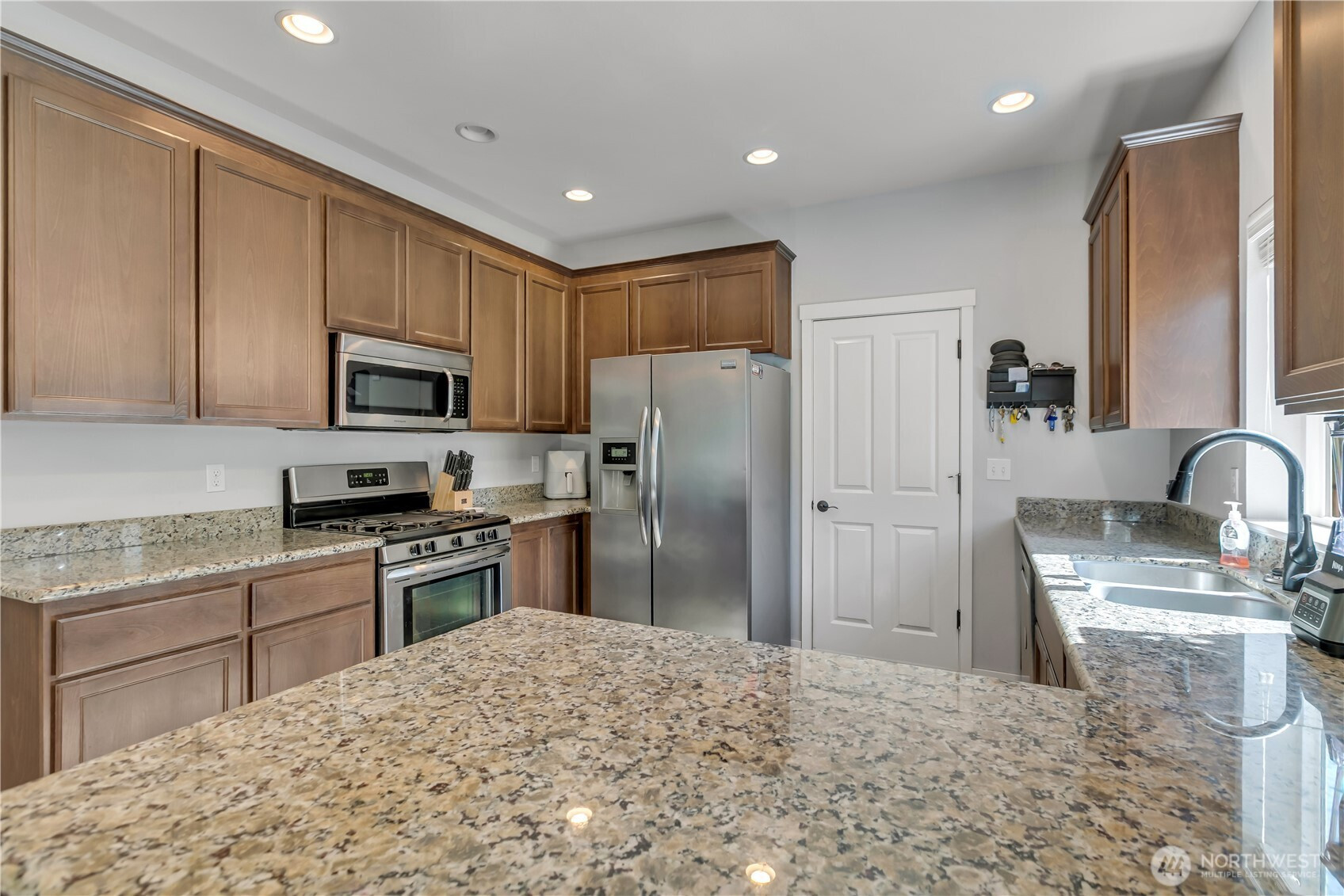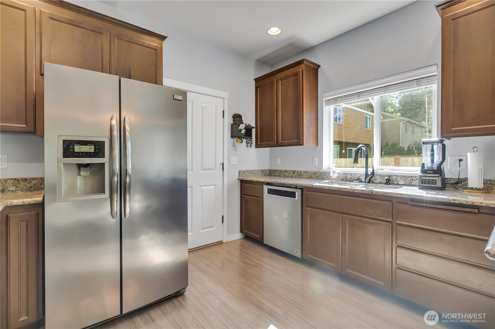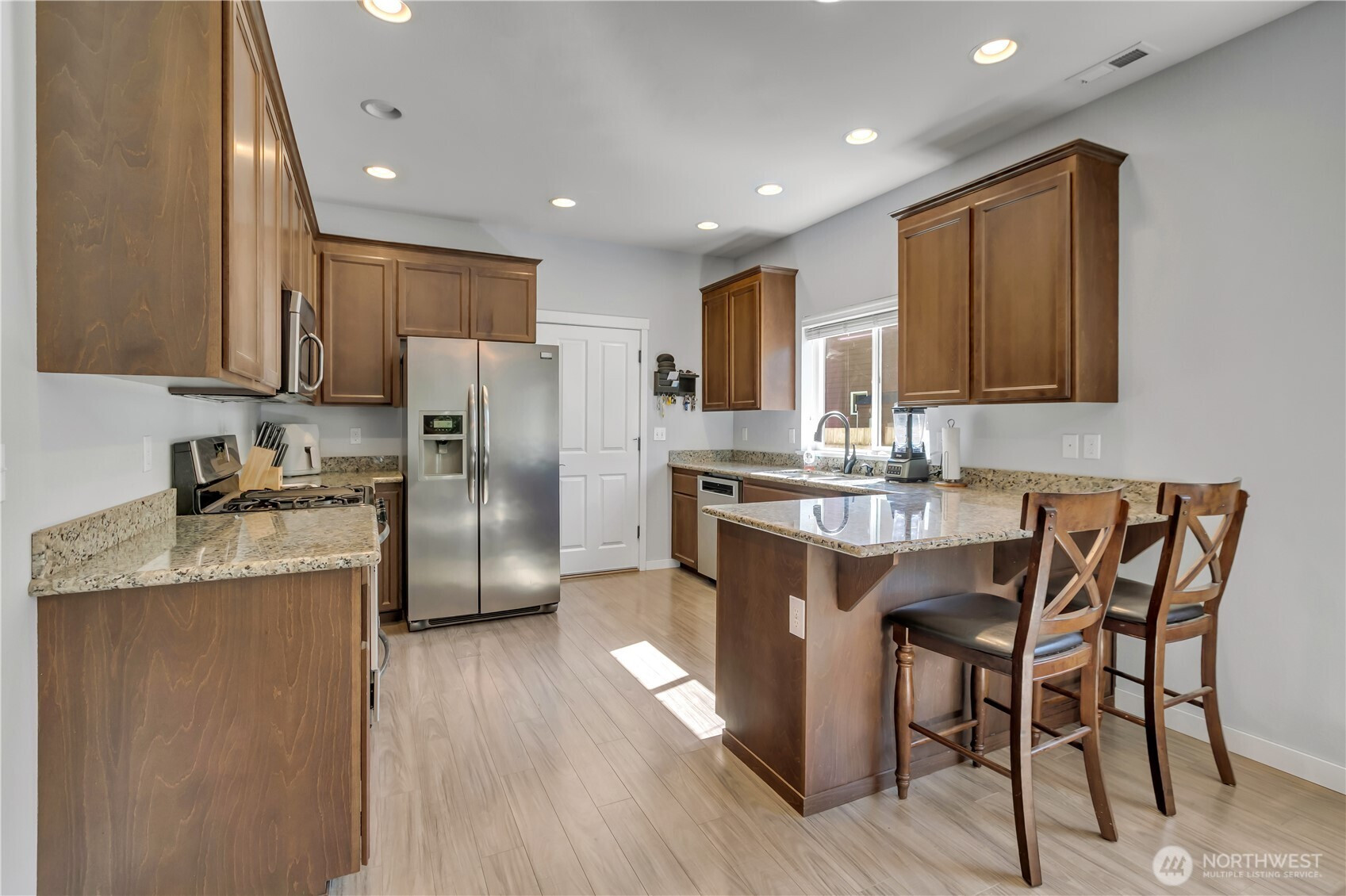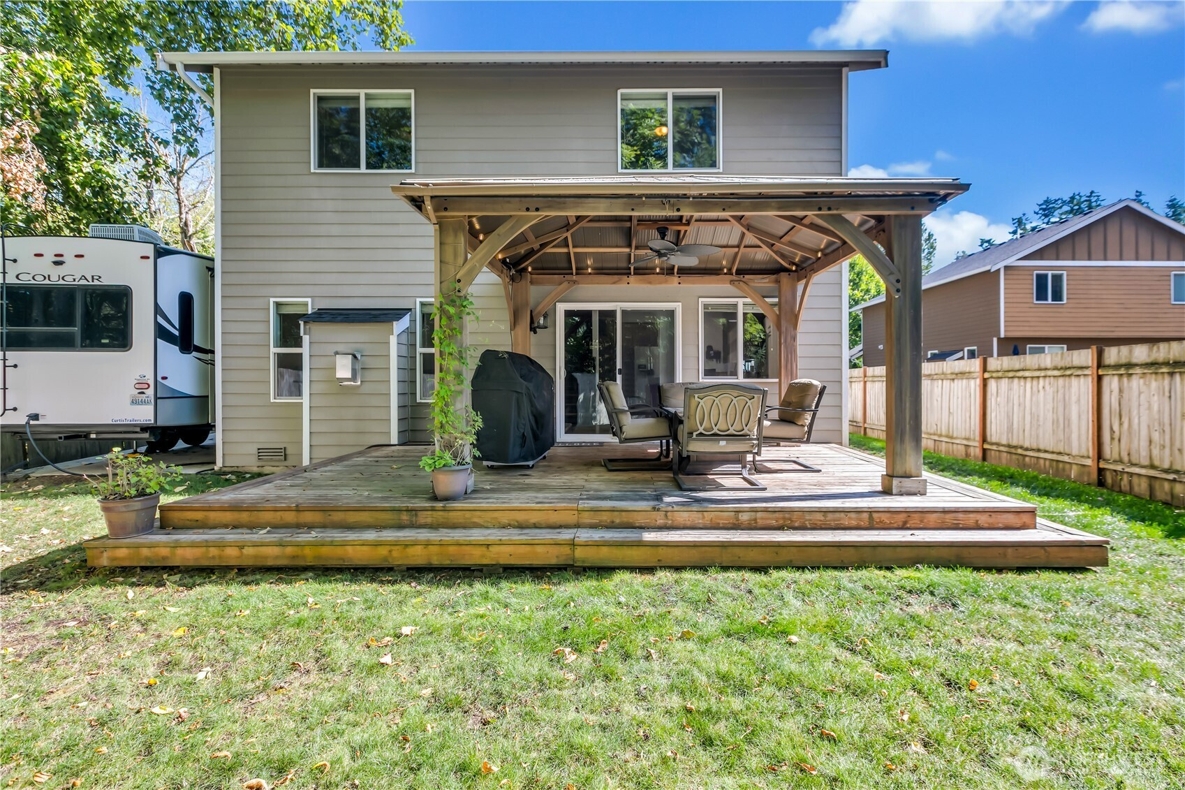 Comfort, space & outdoor living at its finest! This 4 bed, 2.5 bath South Hill home offers 2,057 sq ft of living space with central A/C, a main floor office, and an open-concept kitchen featuring granite counters and custom cabinets. The bright layout is perfect for entertaining or relaxing. The private primary suite includes a walk-in closet and ensuite bath. Outside, enjoy a fully fenced backyard with nearly 400 sq ft of deck space, a covered gazebo, and a 35’ concrete RV parking pad. Fresh interior paint in 2025. Just 1/3 mile from South Hill Community Park and close to schools, shopping, and Hwy 512. Low $85/month HOA. Move-in ready!