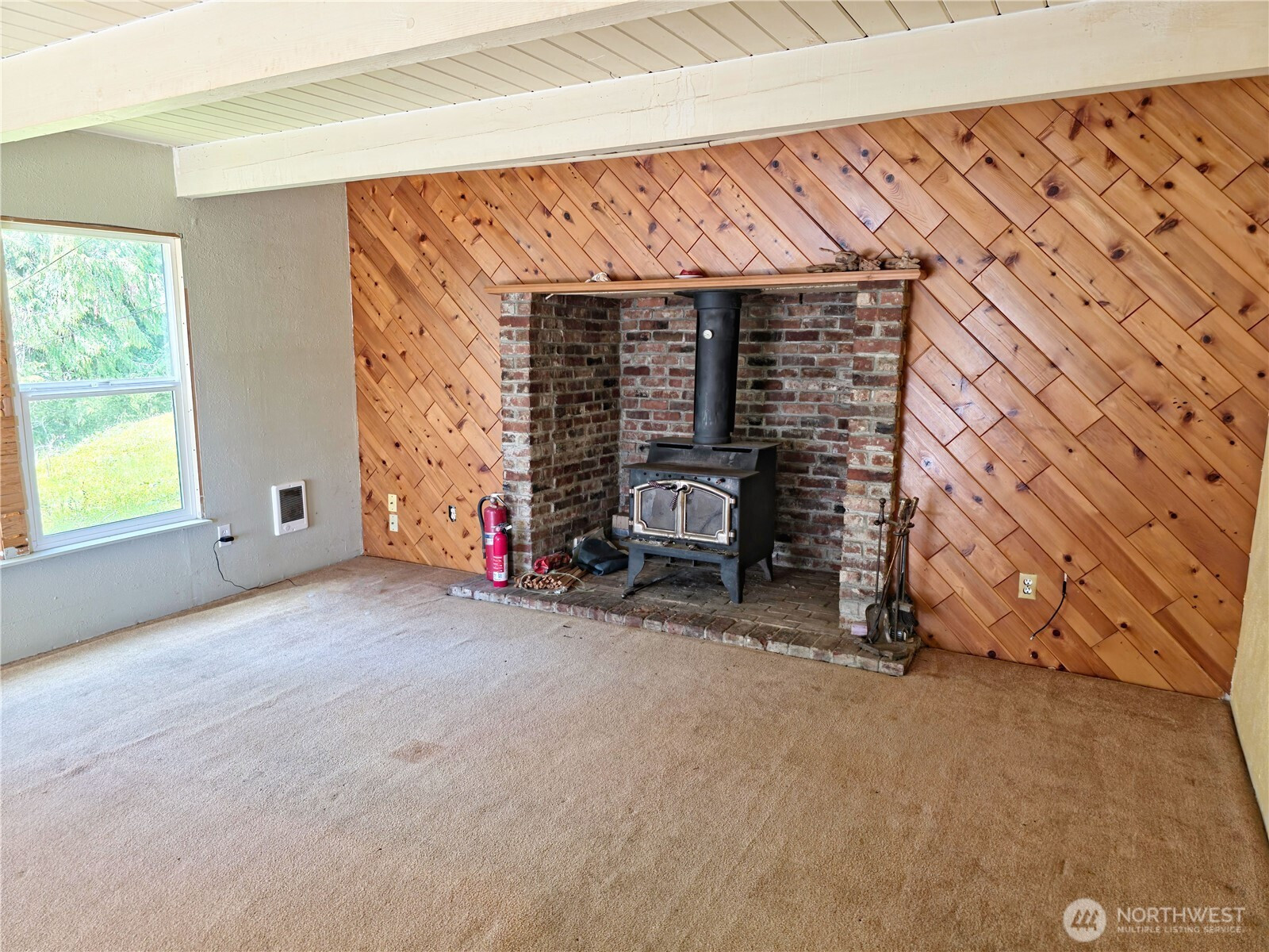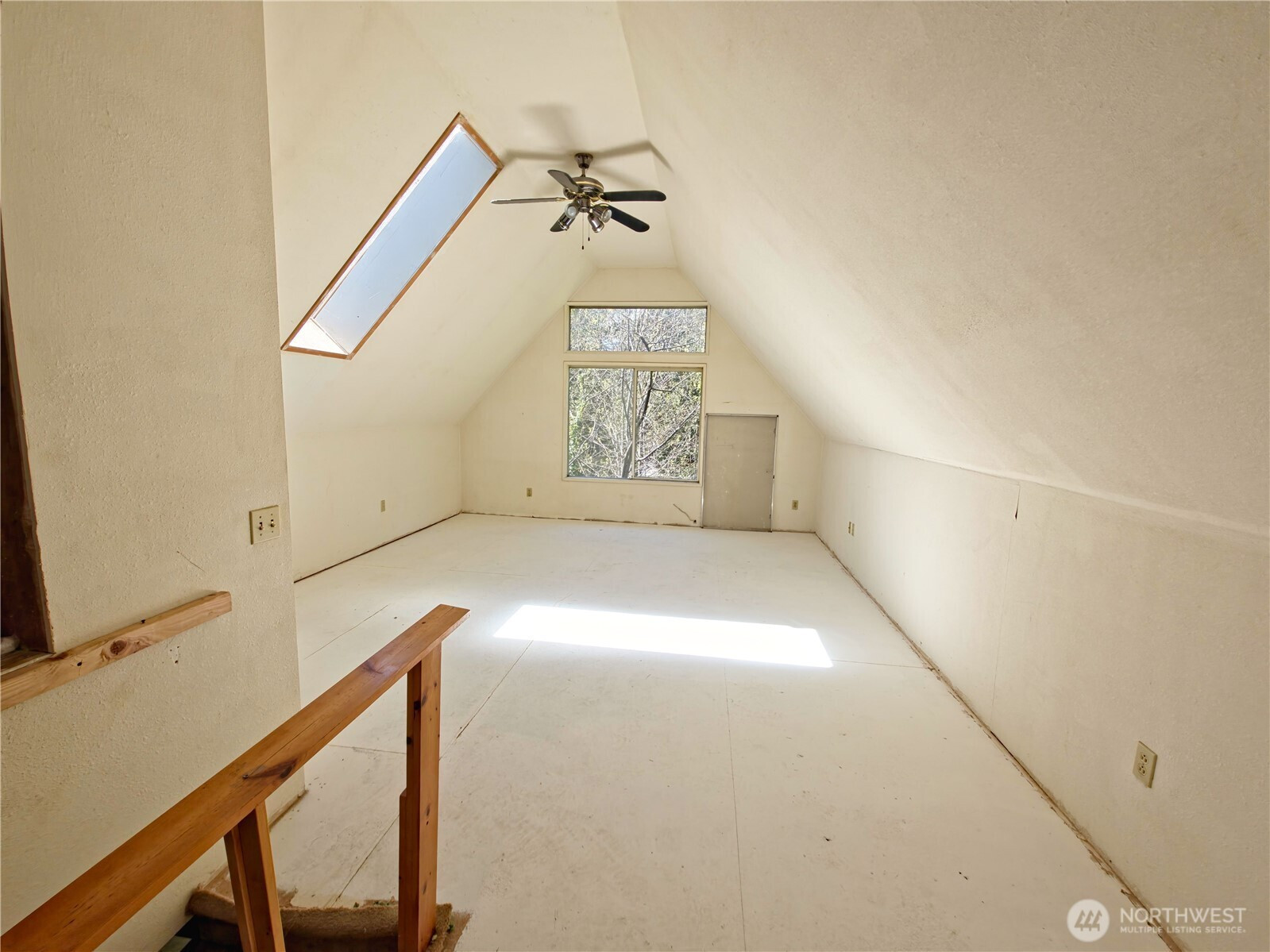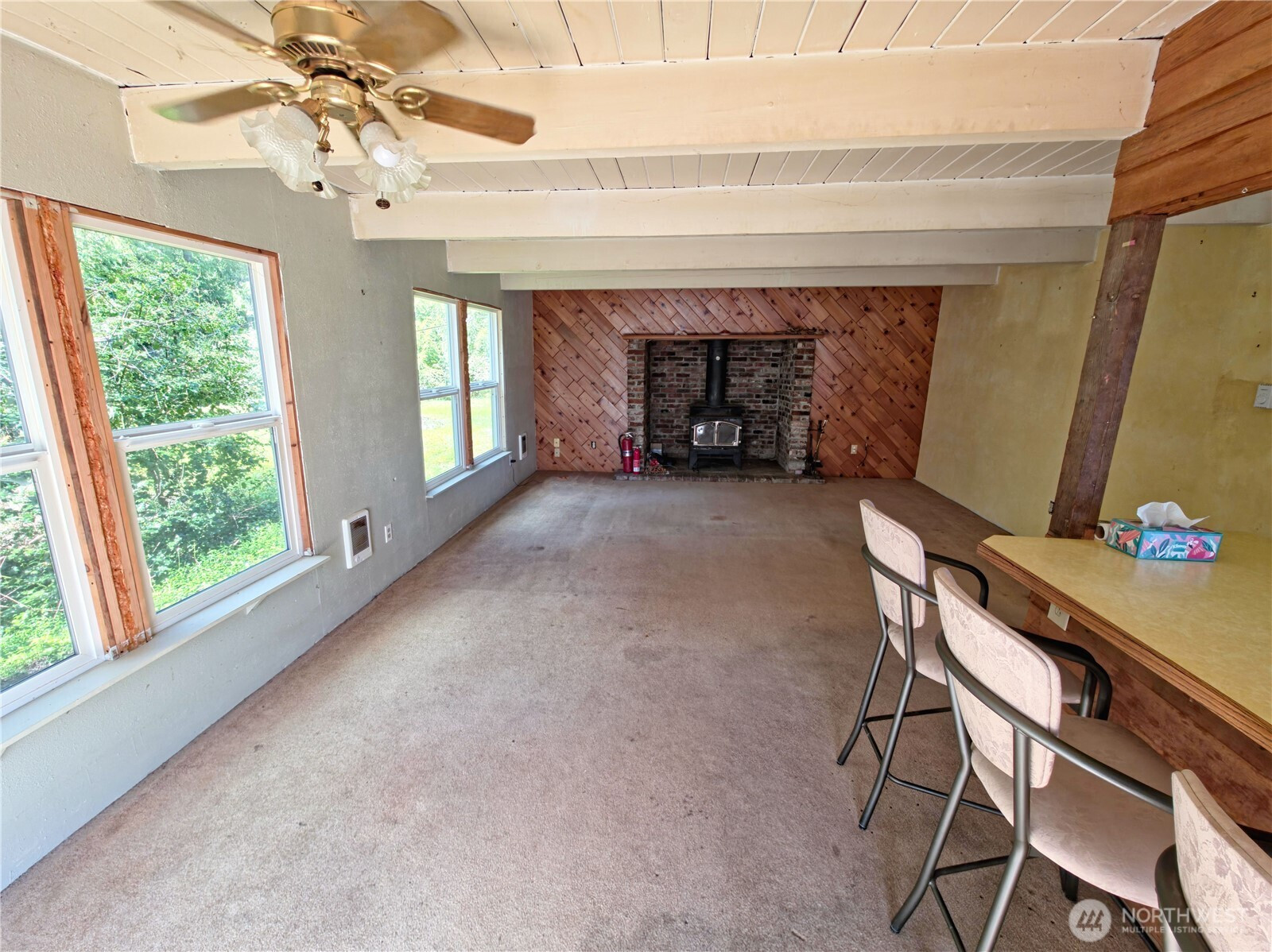 Water-view home with incredible potential, ready for your personal touch. With a little sweat equity, this could easily become your dream home. The property features one bedroom, office, utility room, and a charming skylit attic space filled with natural light. Enjoy cozy evenings by the wood-burning fireplace, and take advantage of the open kitchen, complete with stove, refrigerator, and dishwasher.