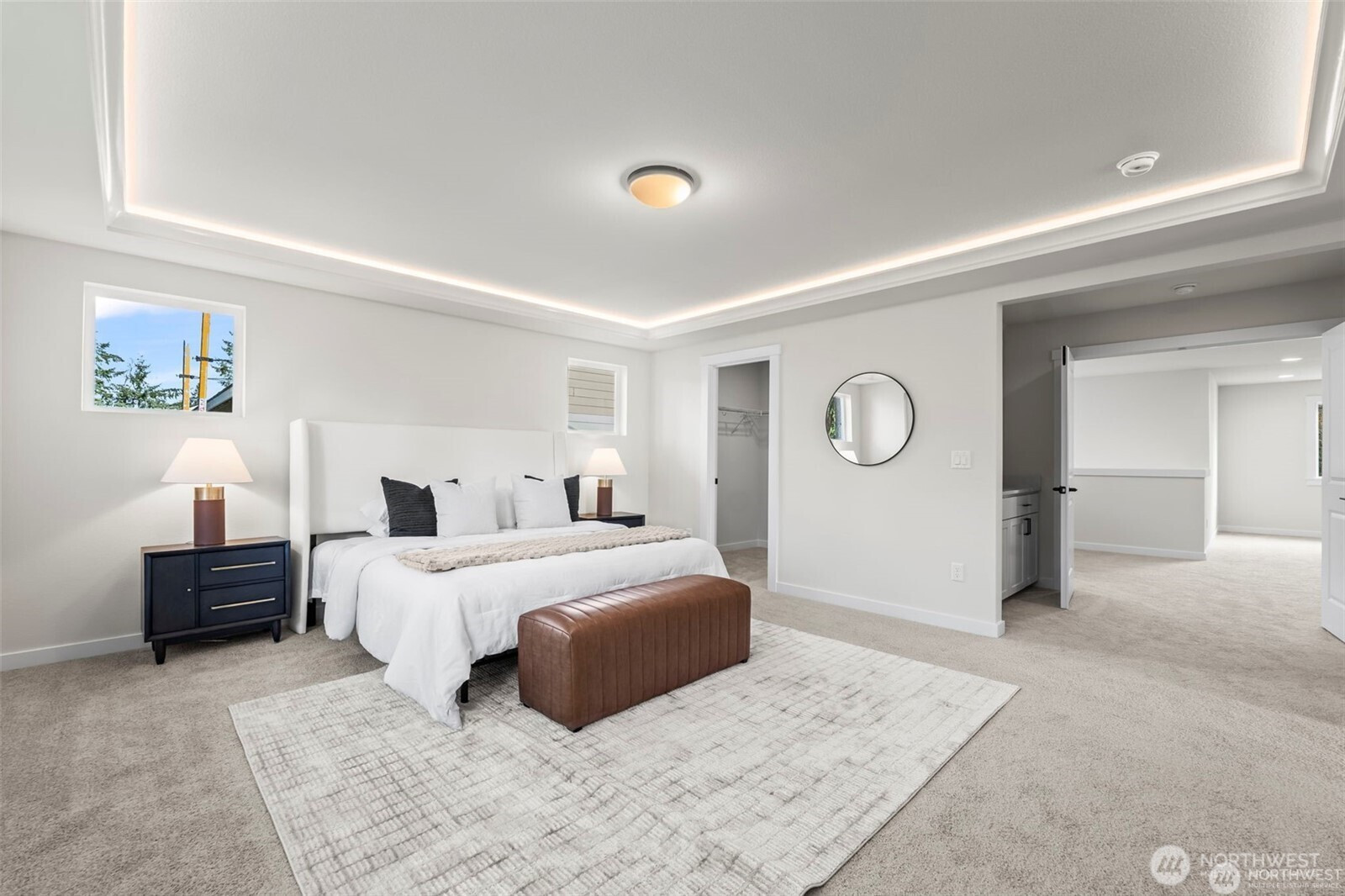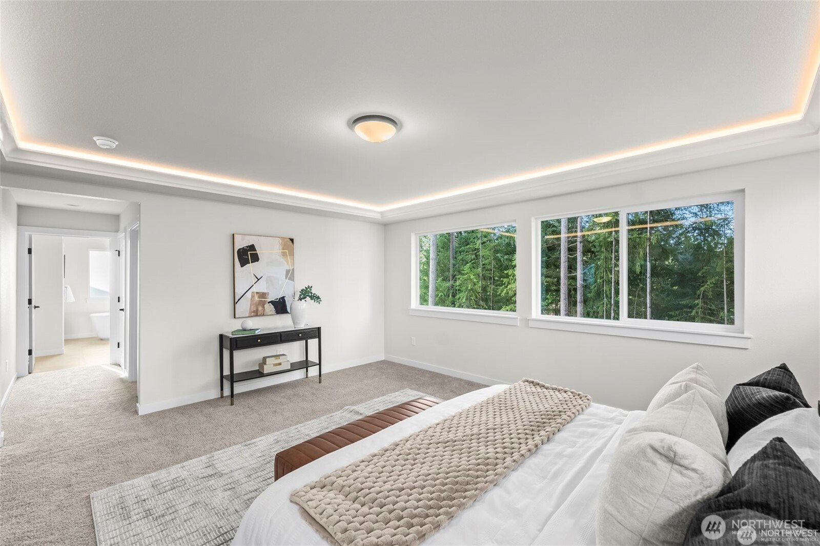 Welcome to your brand new, semi-custom home built by local award-winning builder, JK Monarch. Designer selected finishes & lighting in this popular floorplan featuring include 8' front door, wrought-iron rails, white painted millwork, and heat pump (A/C). Main level flex room w/adjacent ¾ bath. Great room has linear electric FP and opens to outdoor covered living w/ private back yard. Includes Whirlpool SS appliances including W/D, EV prewire in garage & garage door opener w/ keyless entry pad. Kitchen boasts quartz counters, SS sungle basin undermount sink, full-height tile backsplash, soft-close cabinetry & walk-in pantry. 2 additional bedroom upstairs, bonus loft + media room! Double door entry into primary suite that has large walk-in closet & ensuite w/ dual sinks, soaking tub & tile/glass walk-in shower. Close to JBLM & commuter routes, this home delivers both comfort & practicality. Floor Plan Highlights: Den/Guest | Leisure Loft | Covered Outdoor Living | 3 Bedrooms + Media RM/4th Bedroom | 2.75 Baths | 3 Car Tandem Garage. April 2026 Completion. $20K incentive! Upgrades included at no additional cost: ter routes, this home delivers both comfort and practicality. Upgrades included at no additional cost: 8' doors on the main, coffered ceiling in primary bedroom, mudroom bench/coathooks, freestanding tub & tile floors in primary bathroom and exterior stone accents.