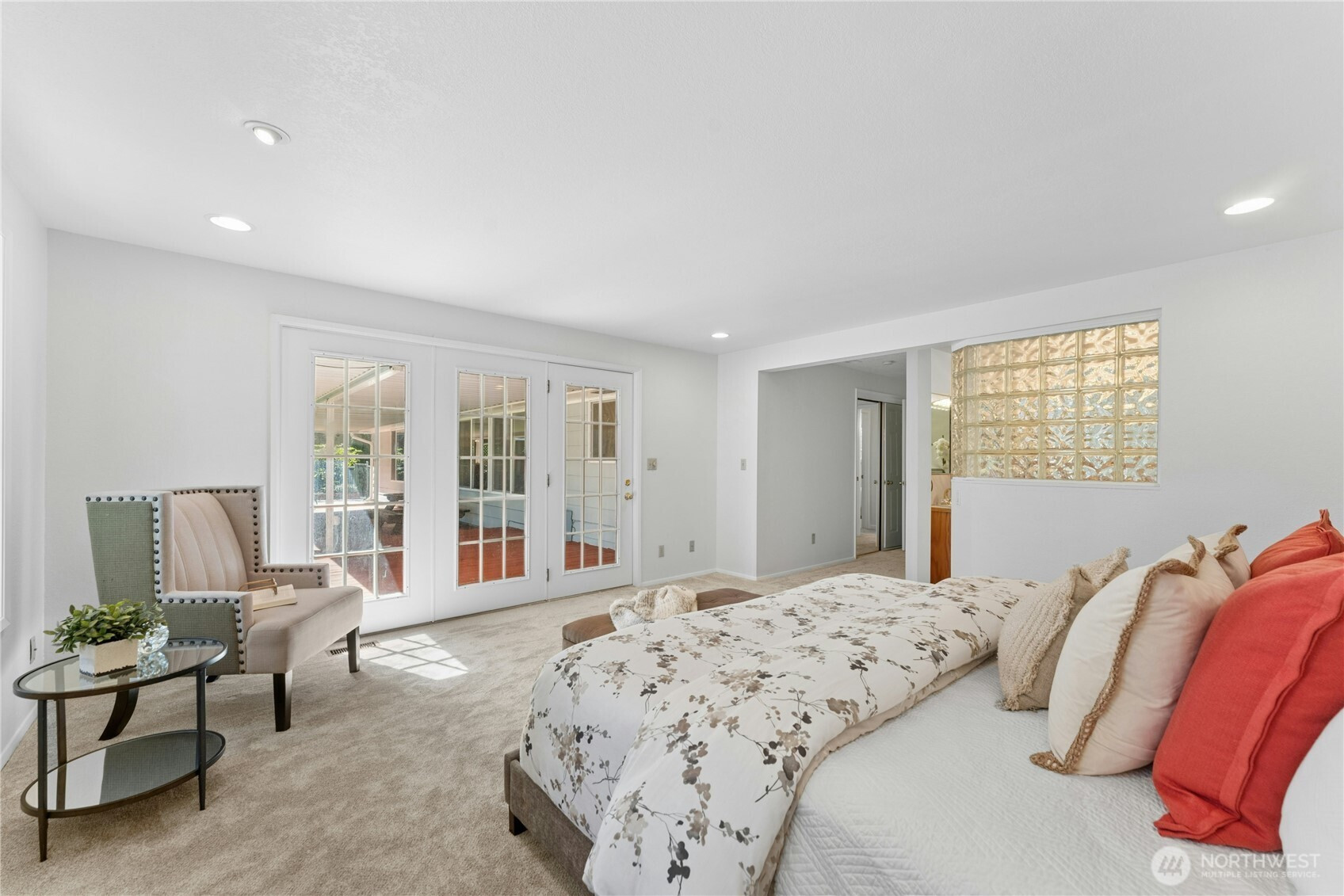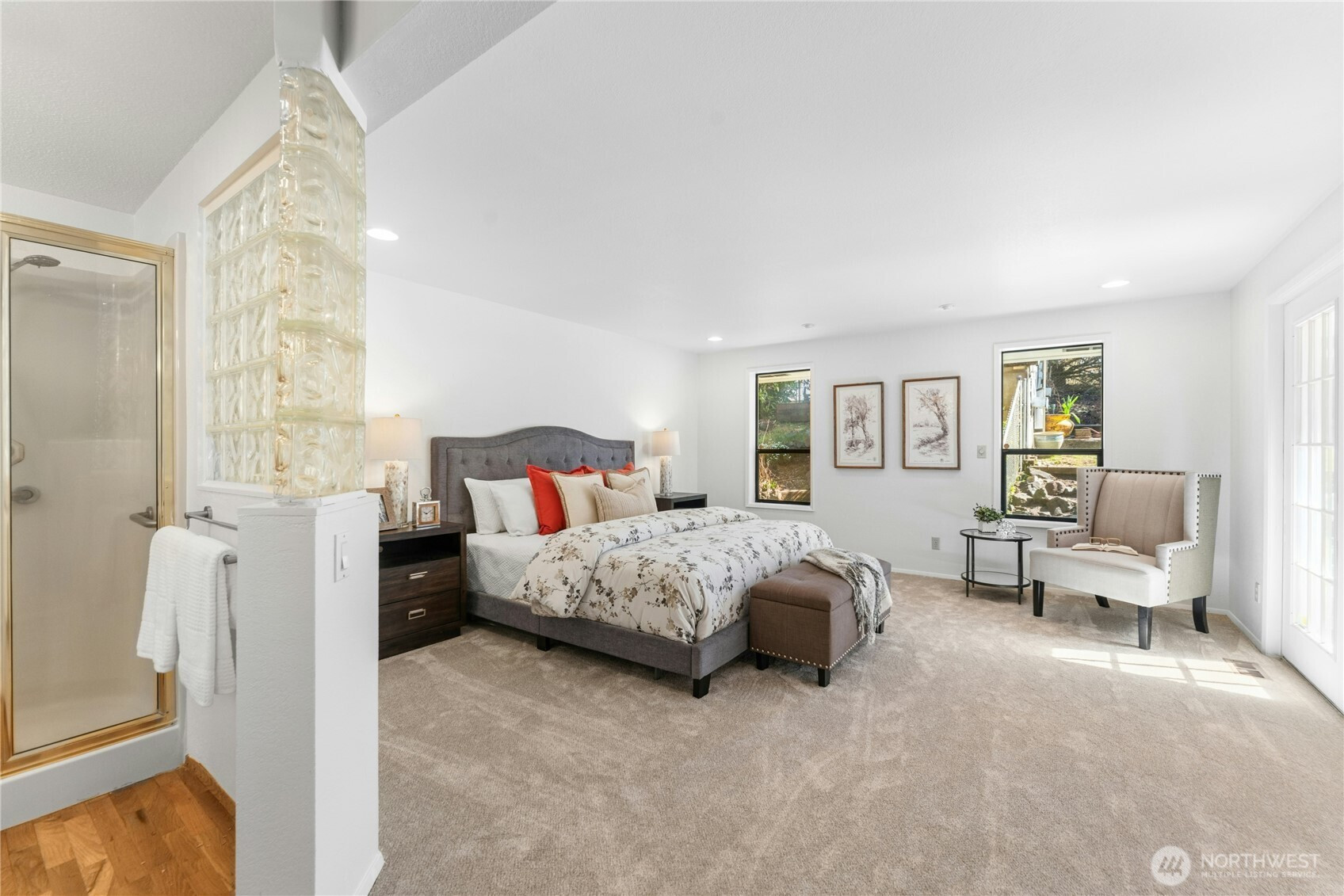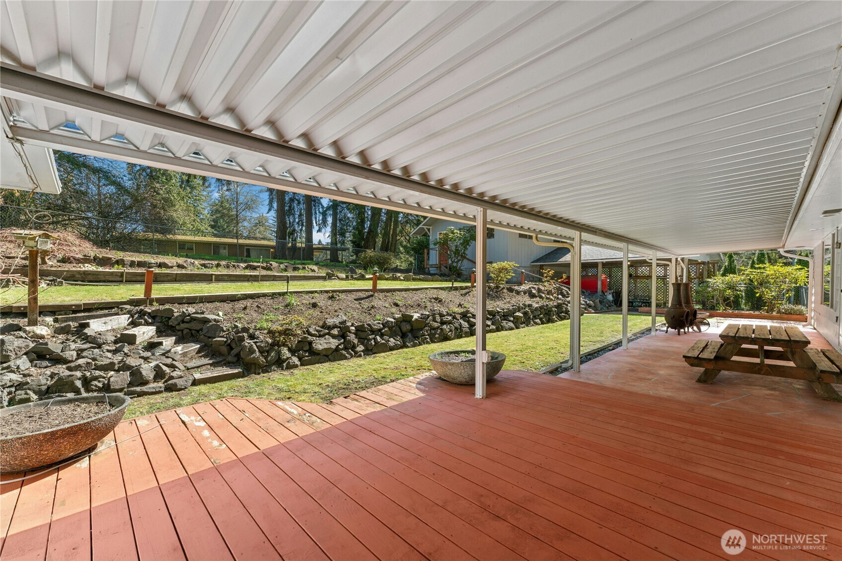 Rare Opportunity! Spacious 2,000+ sq ft single-level rambler set on a large, beautifully landscaped lot offering exceptional privacy with mature trees for a rural feel just minutes away from shopping, dining, and major freeways. This property is a dream setup for auto enthusiasts, hobbyists, or anyone needing serious workspace. In addition to the home’s attached two-car garage, there's also a separate detached garage and carport topped by a massive shop, providing incredible flexibility for projects, storage, or creative pursuits. Inside, the freshly painted interior and brand-new carpeting create a welcoming, move-in ready space. The spacious living room features a wall of windows overlooking the patio and tranquil backyard. The remodeled kitchen boasts warm wood cabinetry, granite countertops, stainless steel appliances, and a gas range. The generous primary suite easily accommodates a king-size bed and includes an ensuite bath, walk-in closet, and French doors opening to a private deck, offering a peaceful retreat. Additional spaces include a dedicated family room (or home office?) off the living room and a large craft/hobby room with extensive cabinetry and storage, ideal for projects or creative work. Step outside to enjoy the terraced backyard with greenhouse and garden space, perfect for gardening enthusiasts. Bonuses include RV/boat parking and A/C. A truly special property that must be seen to be fully appreciated.