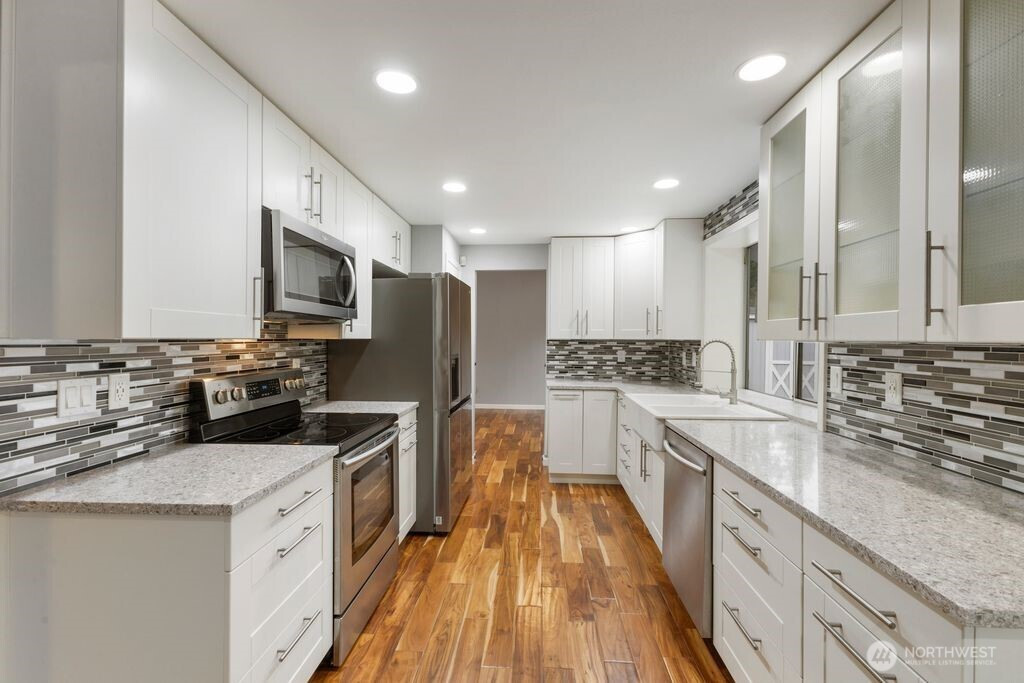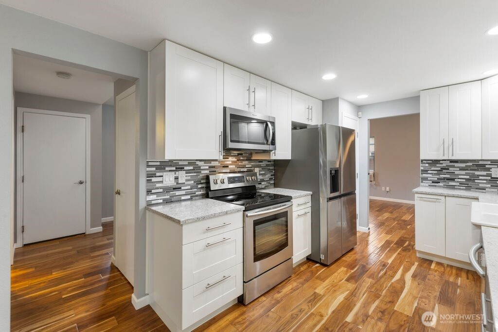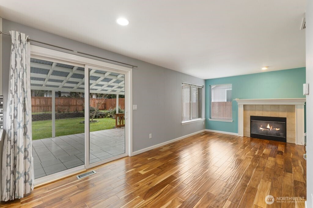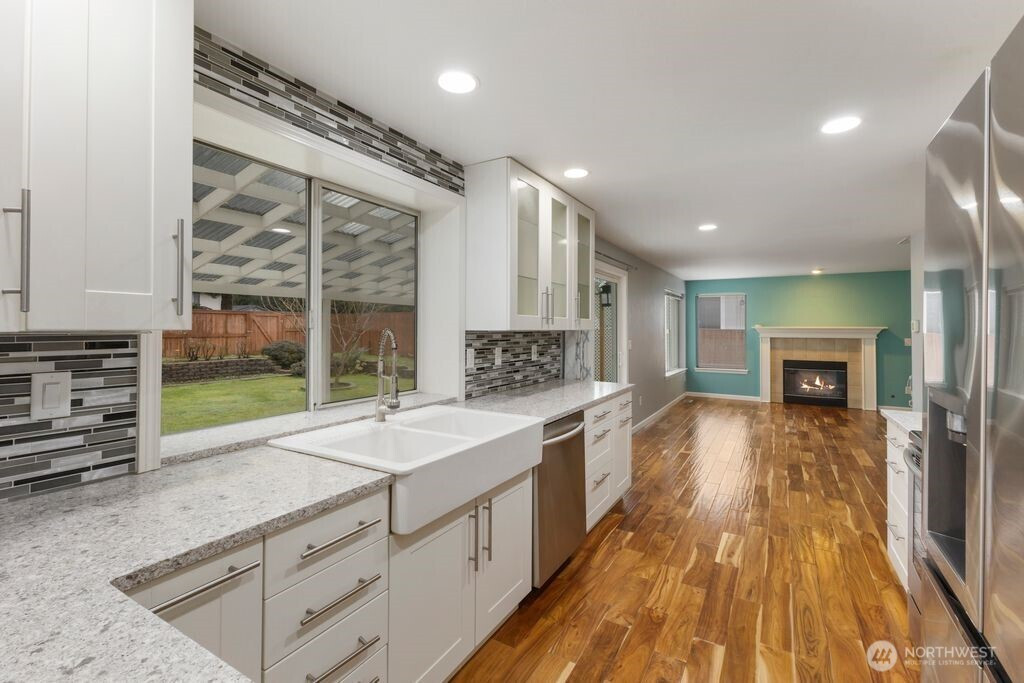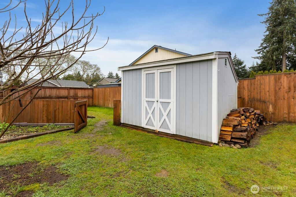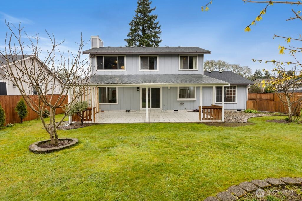 Welcome to this beautifully updated 3-bedroom, 2.25-bath home, perfectly situated on a spacious, level lot. The main floor features elegant hardwood flooring and a fully remodeled kitchen designed to impress, complete with stainless steel appliances, quartz countertops, under-cabinet lighting, a modern backsplash, and soft-close cabinetry. Upstairs, the inviting primary suite offers a refreshed en-suite bathroom and a walk-in closet, creating a comfortable private retreat. Step outside to your fully fenced backyard oasis—an exceptional space for relaxation and entertaining. Enjoy a rare collection of mature fruit trees, including fig, plum, Asian pear, aronia, persimmon, quince, jujube, blueberries, chestnut, and Siberian ginseng. The expansive 15x30 covered patio, cozy fire pit, and convenient storage shed make outdoor living enjoyable year-round. Ideally located with easy access to freeways, parks, shopping, dining, and everyday amenities, this home truly offers the perfect blend of comfort, convenience, and charm.