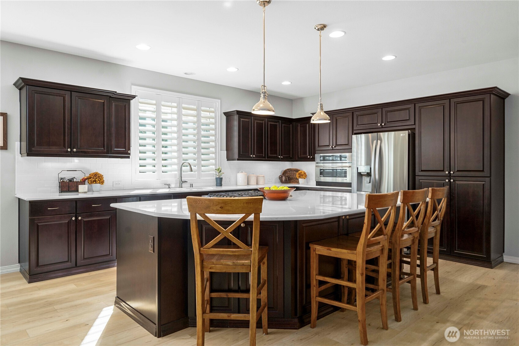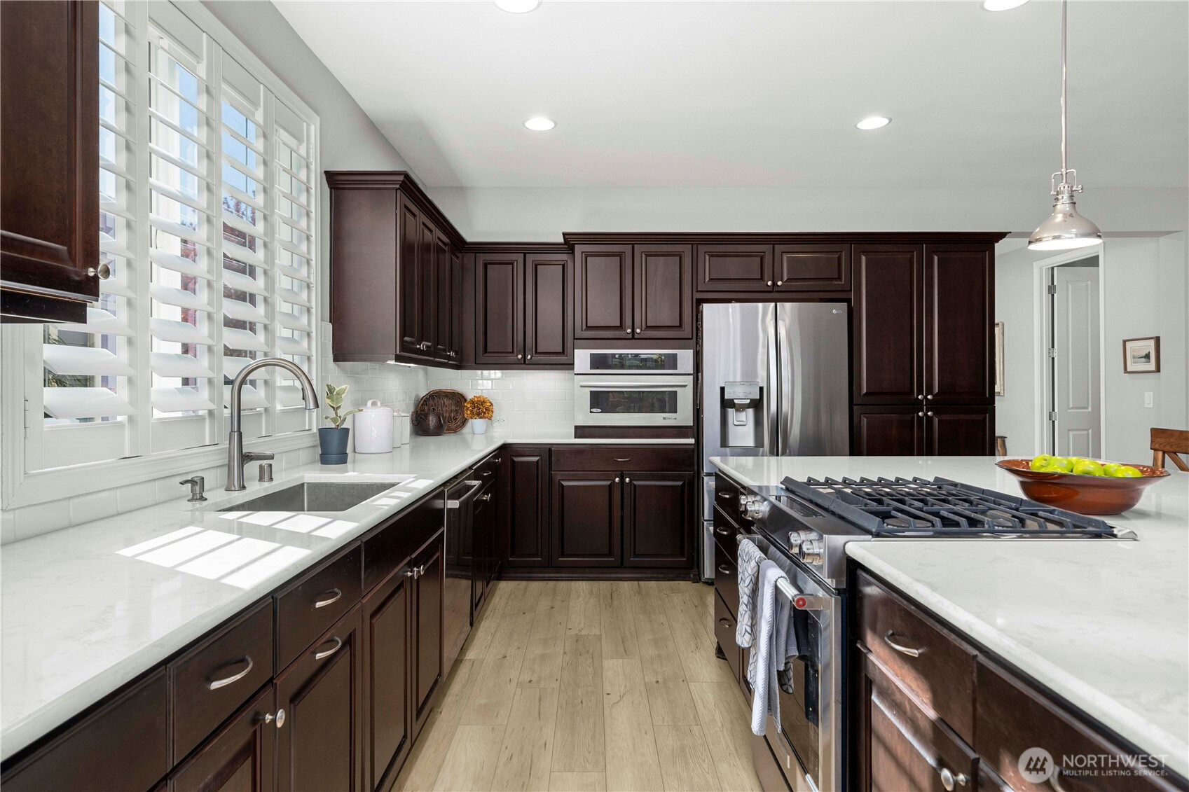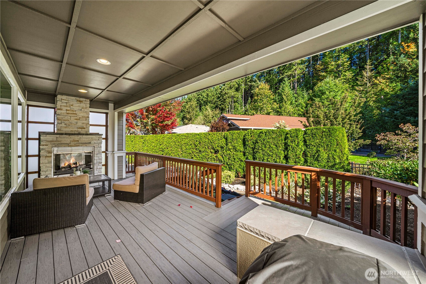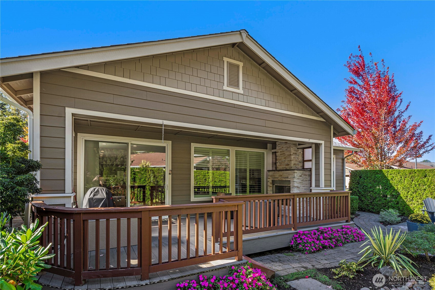 Resort 55+ living at Trilogy at Tehaleh! Stunning & beautifully upgraded "Refresh" on a premier, corner lot w/ an abundance of privacy. This meticulously maintained, turn-key home offers expansive living spaces & an abundance of windows to take advantage of the views. Timeless kitchen w/ Quartz & top tier appliances. Two statement fireplaces & high-end Plantation shutters throughout. Spacious covered Trex deck w/ stone fireplace & Shoji privacy screens overlooks the tranquil & low maintenance backyard featuring a water feature, extensive hardscape & an idyllic seating area to bask in your own private sanctuary! Short walk to the Lodge/pool/fitness/restaurant/bar/Pickleball/trails/Post & Pour Bistro/retail/trails. $9500 Club fee is waived!
