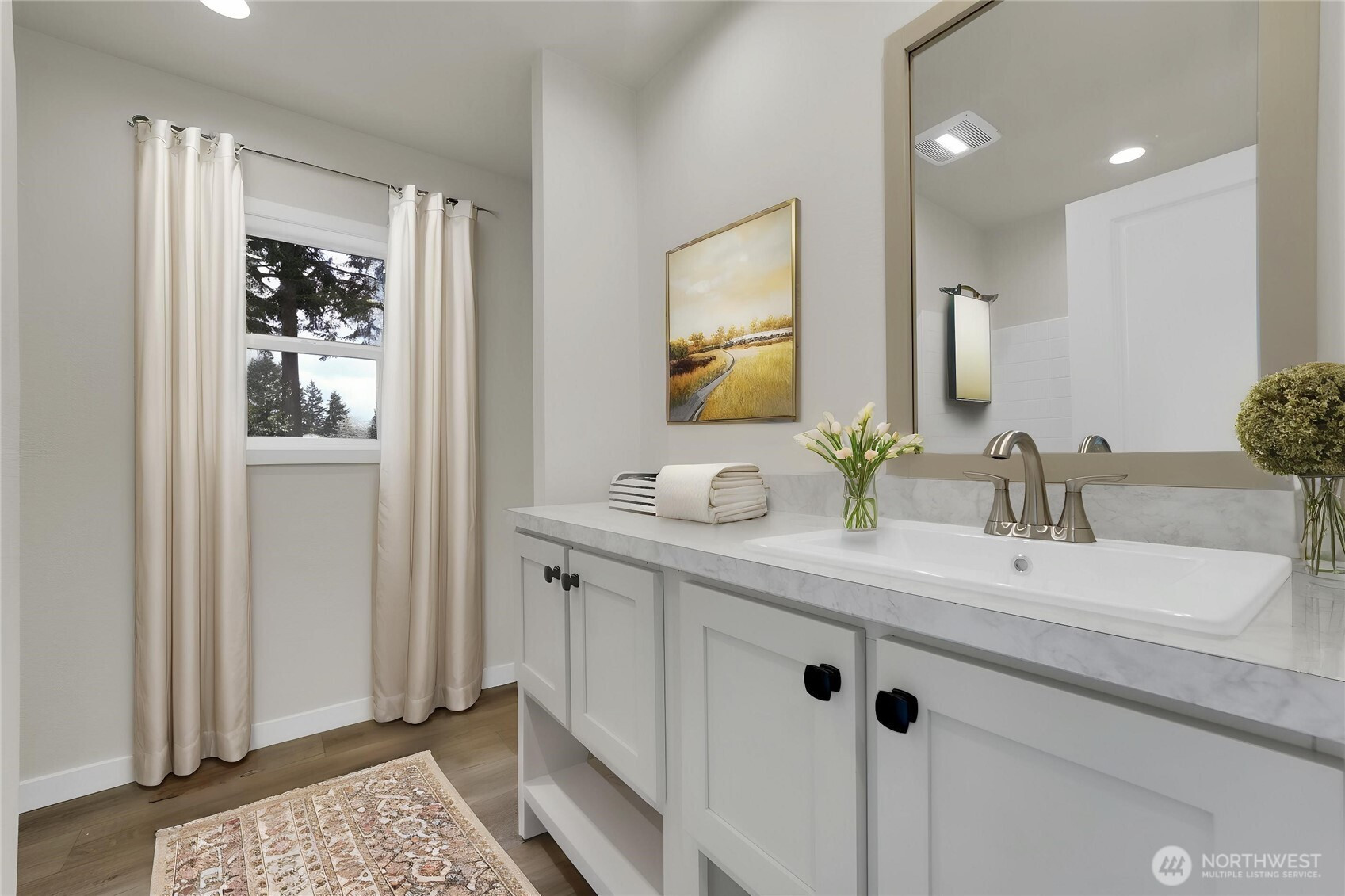 Enjoy this brand-new home on flat, usable lot with plenty of space to enjoy the outdoors. This 3 bedroom,2 bathroom home also includes a versatile flex space perfect for a home office, playroom, or guest room. The open concept layout offers a bright and spacious living area that flows into the kitchen and dining space. Ideal for everyday living and entertaining. The kitchen features a large eating island with plenty of seating and workspace. The private primary suite includes an ensuite bathroom bathroom and ample closet space. With the modern finishes and a functional design, this home offers comfort space, easy living.