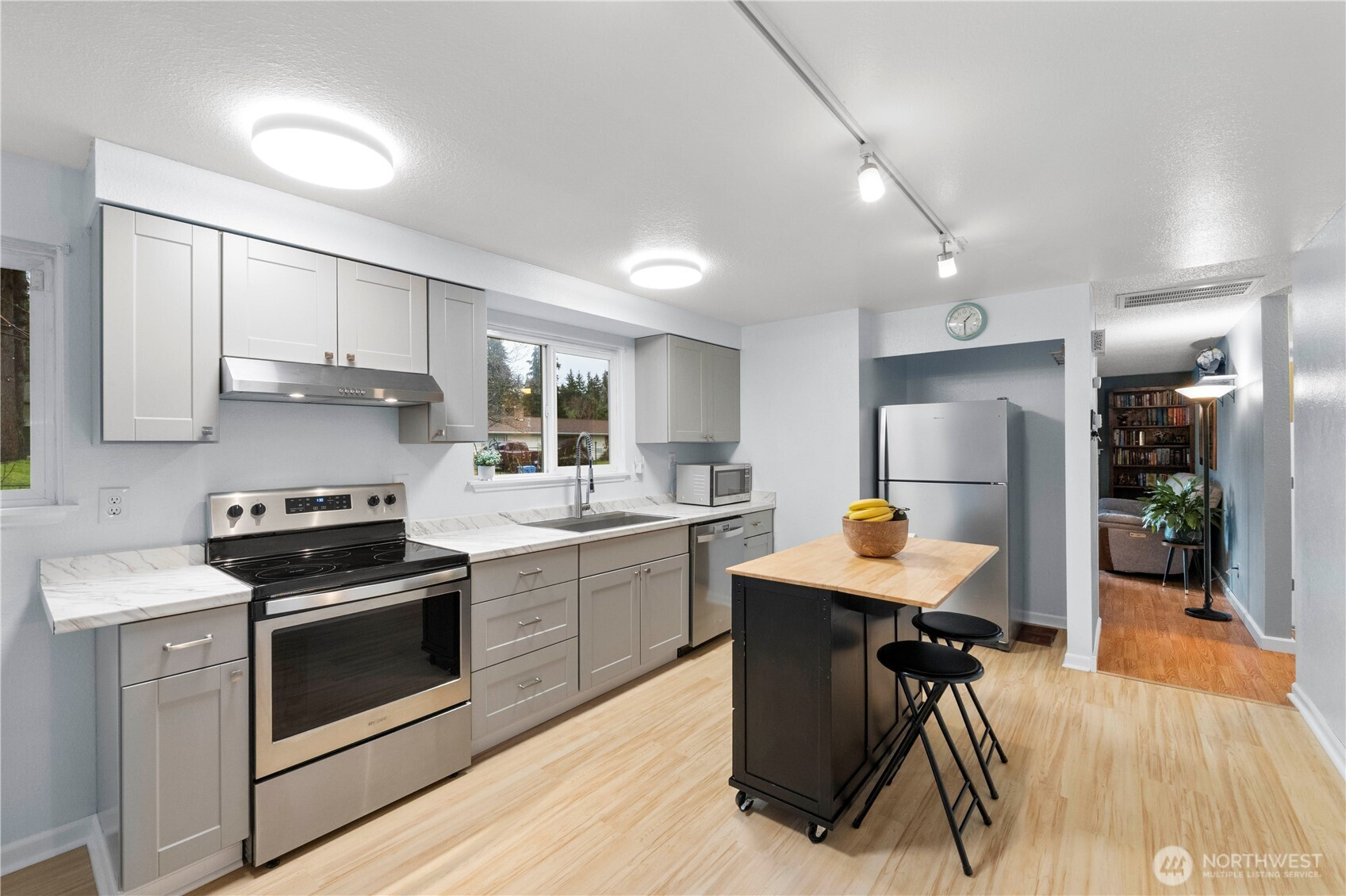 Tucked on a spacious ¼+ acre lot, this thoughtfully updated rambler offers the ideal combination of modern updates, flexible living, and exceptional outdoor space. The expansive lot features mature evergreen trees and a variety of fruit-bearing plants including grapes, Honeycrisp & Spartan apple trees, thornless blackberries, kiwis, raspberries, and strawberries—your own private garden oasis! Enjoy the outdoors from the large back deck, ideal for entertaining or relaxing, plus a chicken coop, child playset, and new storage shed for added versatility. Inside, the home is enhanced with quality updates throughout. A new furnace and all-new ducting system were installed in 2020, along with a new 30-year roof. The kitchen has been fully updated with new LVP flooring, a new refrigerator, and cabinets, creating a clean and modern feel. Bathroom updates include new tile and toilet, while bedrooms feature newer carpet and built-in Murphy beds in the secondary rooms—ideal for flexible living, guests, or home office use. Additional features include a 50-gallon water heater, a large driveway with plenty of parking including RV space, and a peaceful setting on a quiet street. Conveniently located near local amenities and parks, all within the desirable Puyallup School District—this property truly offers space, upgrades, and lifestyle all in one.