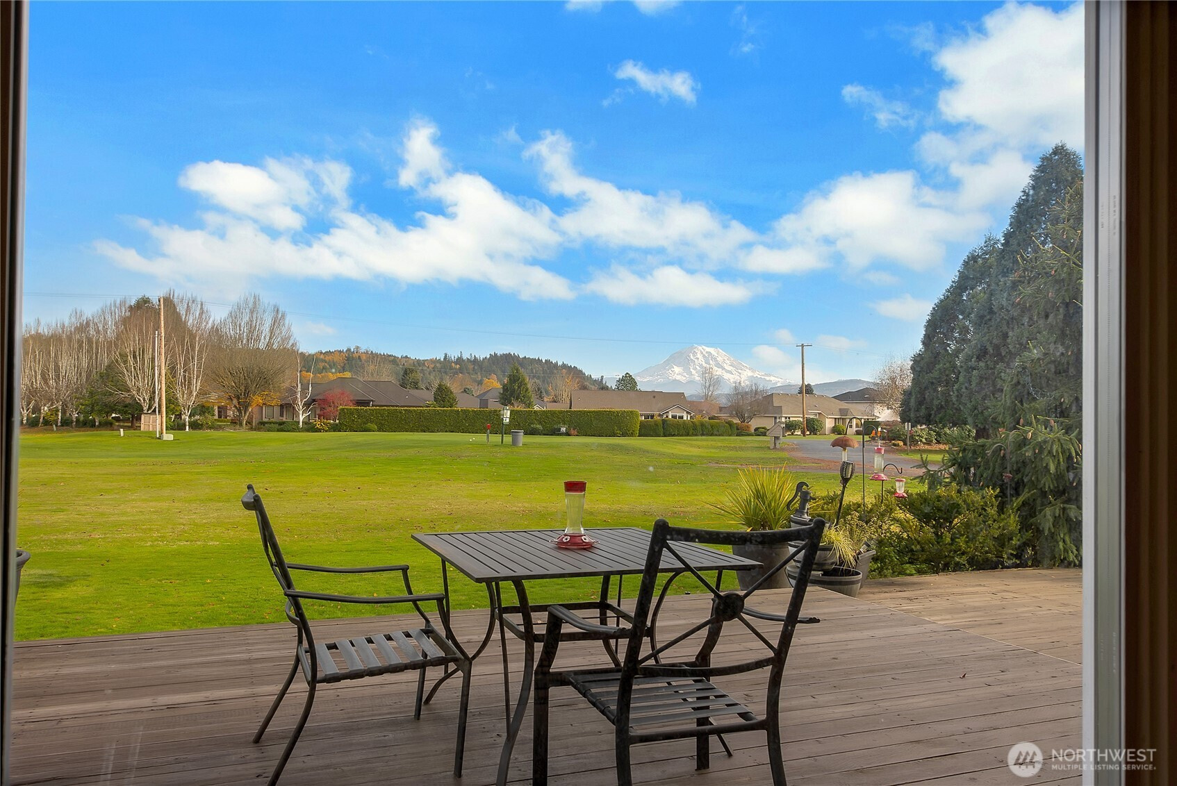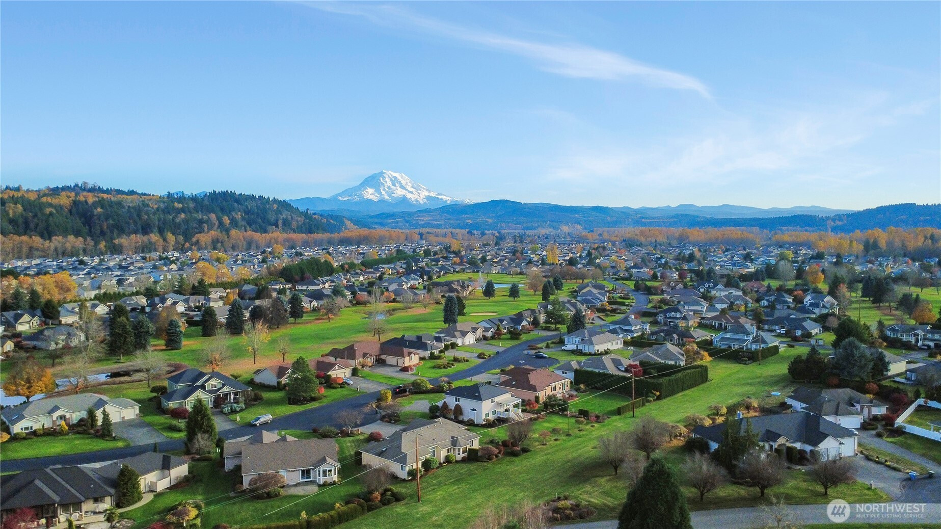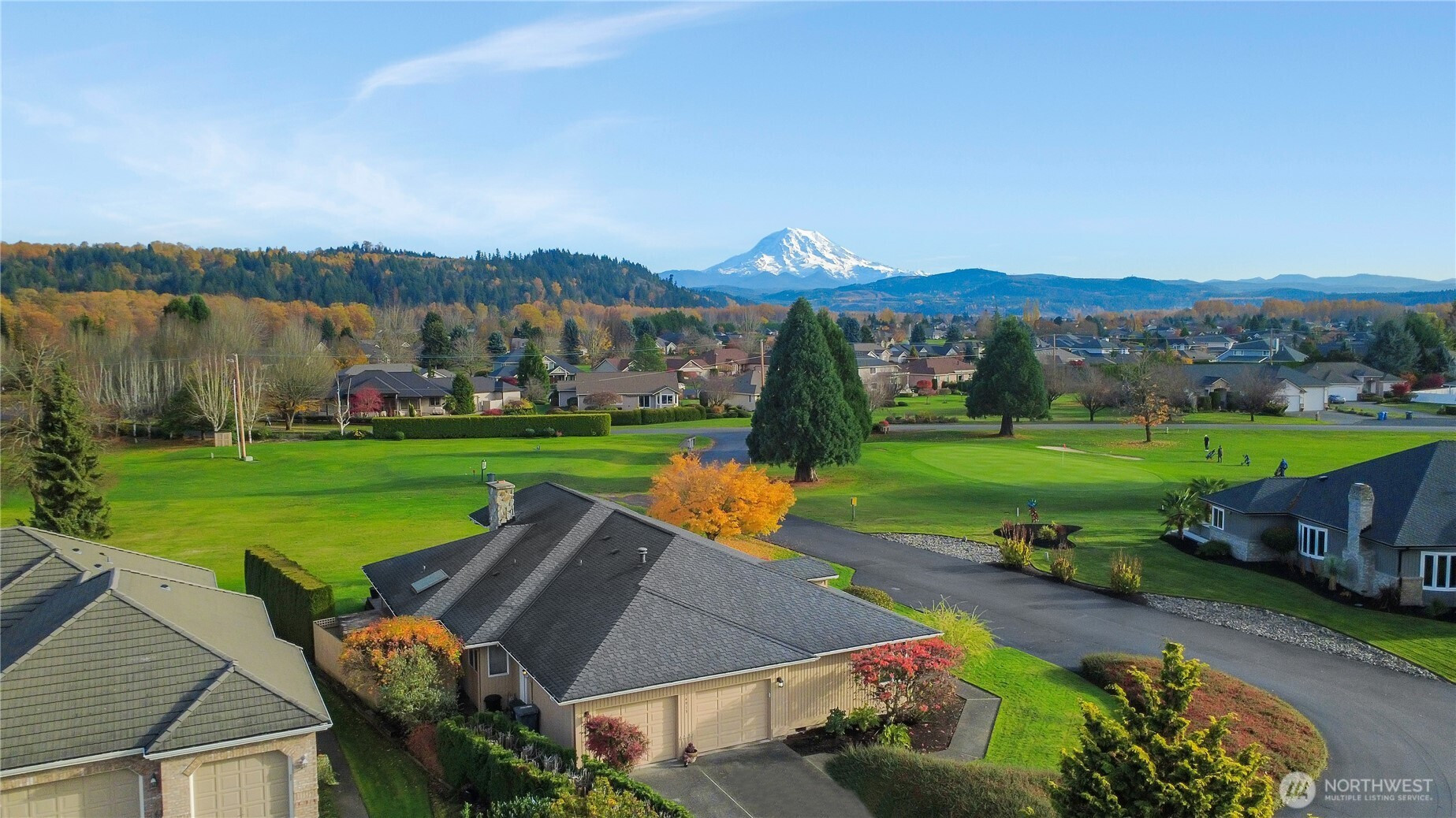 "Stay Where You Play!" Beautifully maintained rambler in the Augusta sub-division at the High Cedars 27-hole Golf Course. Boasts stunning Mt. Rainier views & a spacious deck overlooking the Executive Nine’s 3rd tee. Features 3 bedrooms (one currently a den), 2 baths, plus an extra shower in mud/laundry room, a large island kitchen, cathedral ceilings, lots of natural light in living areas, plus a generous primary suite, with 5-piece bath & easy deck access. Brags newer roof & HVAC system with central air, inground sprinkler system, dual hot water tanks. Easy golf cart/walk access to clubhouse & chef run restaurant, close to Sumner or Orting city services, schools, more. *Golf course homes do not come up very often, it won't disappoint!