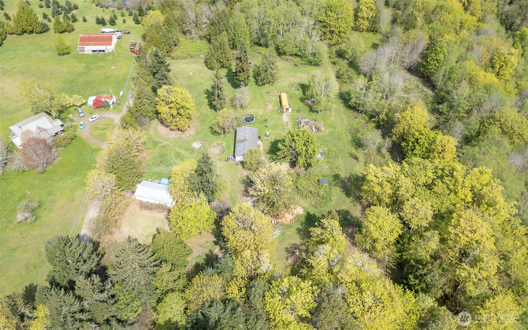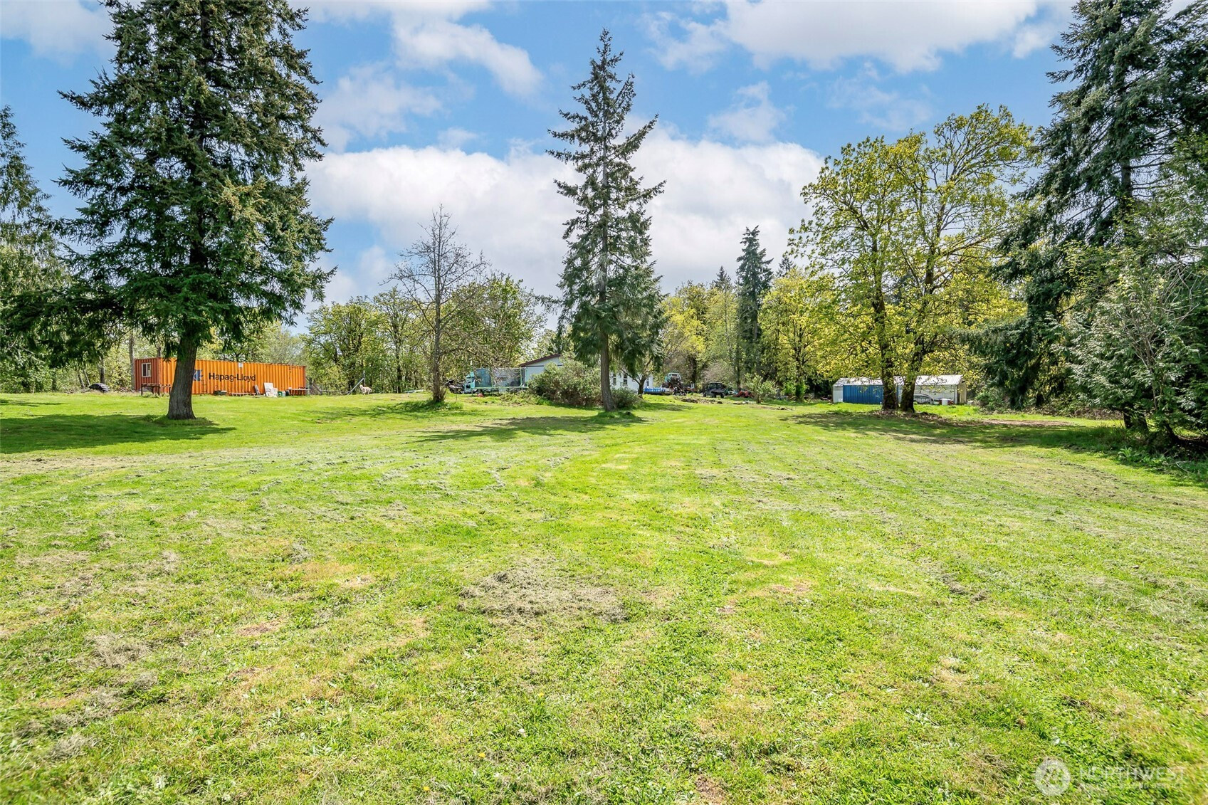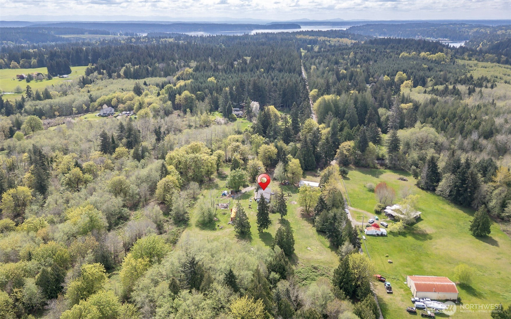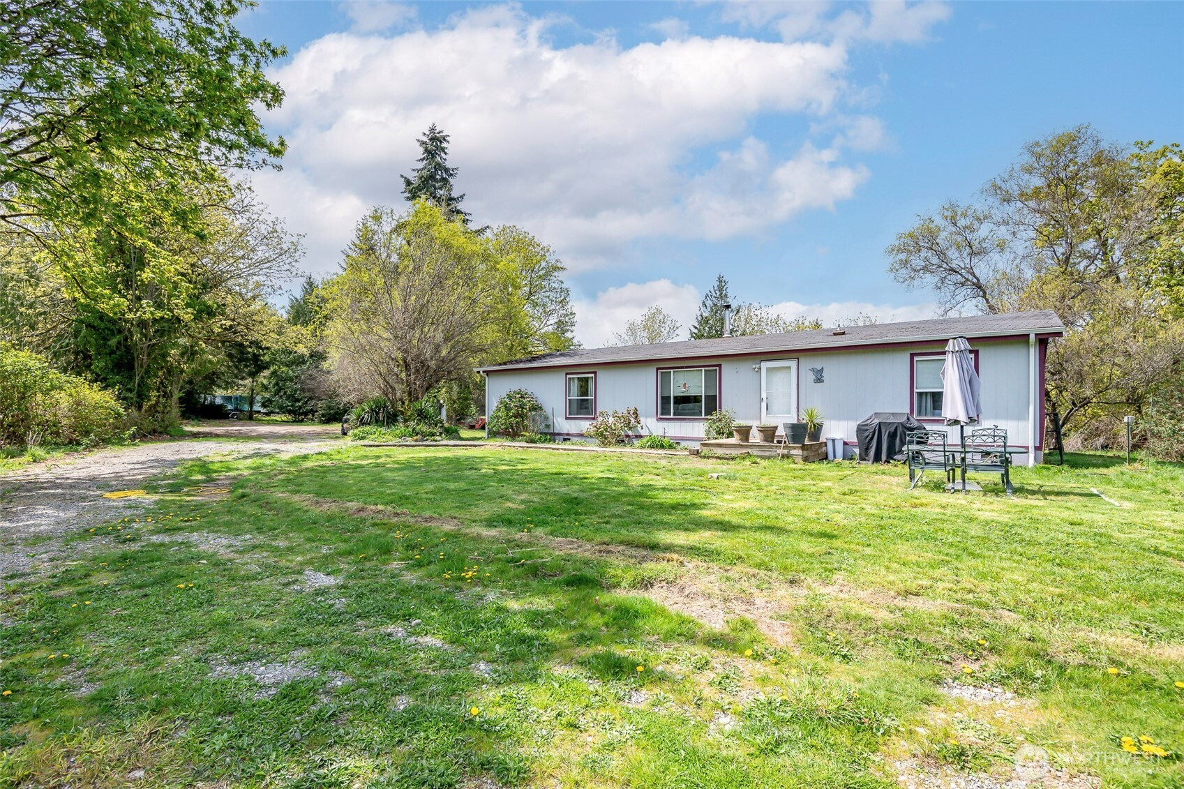 So many opportunities with this 10 acre property in quiet Lakebay community. The manufactured home on the property has vaulted ceilings for an open feel in the living and dining rooms. There is a cozy wood stove and stunning laminate hardwood flooring throughout. The kitchen offers tons of cabinetry and a center island plus access to the utility room that offers pantry space. The primary bedroom features wainscoting detailing, large walk-in closet and an en-suite bath. 2 additional bedrooms plus an additional full bath. The front porch overlooks the property which includes a shed, and fenced garden area. Storage Container goes with seller.