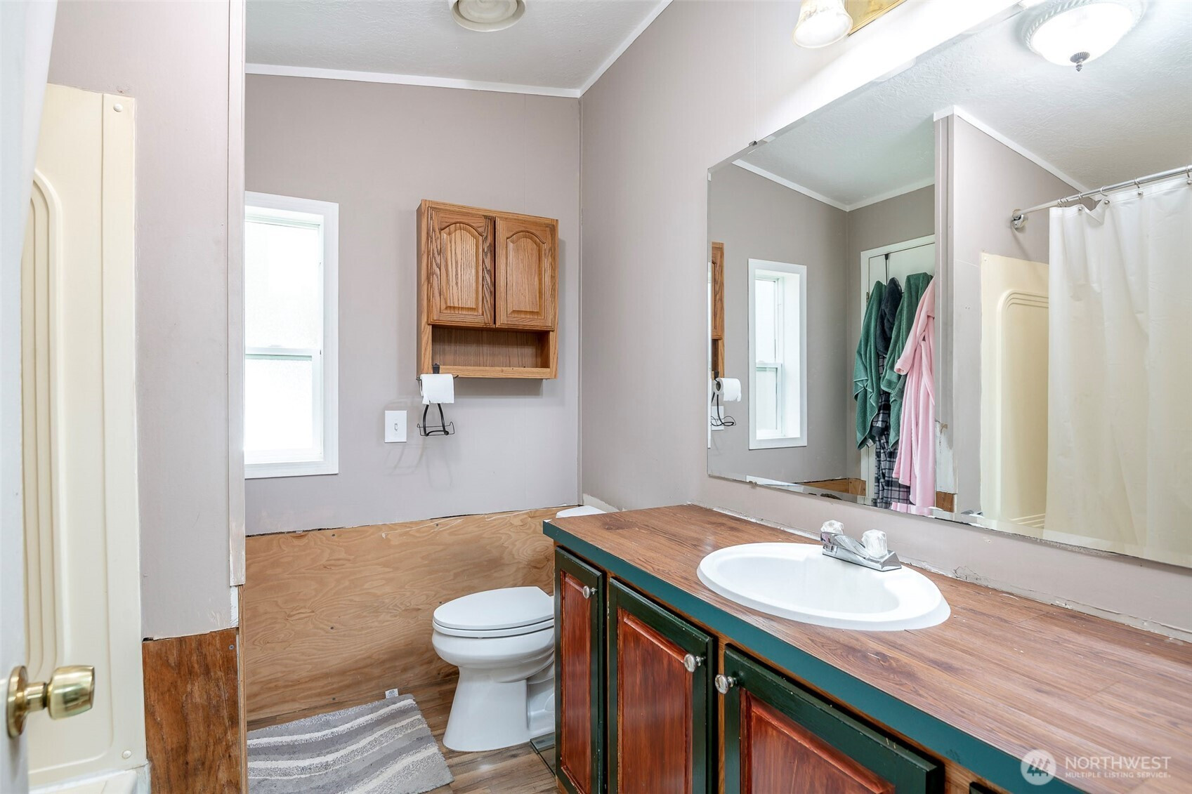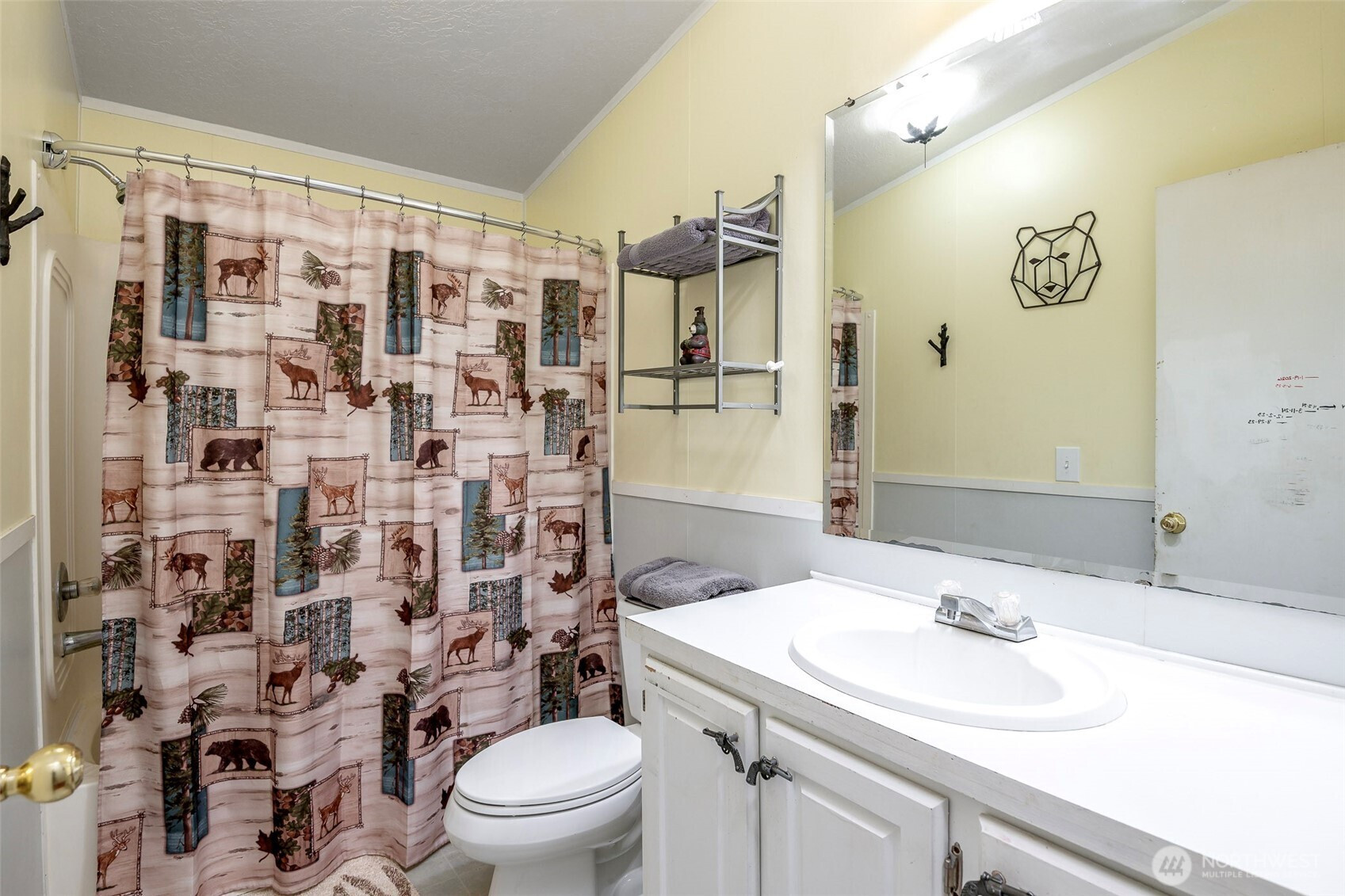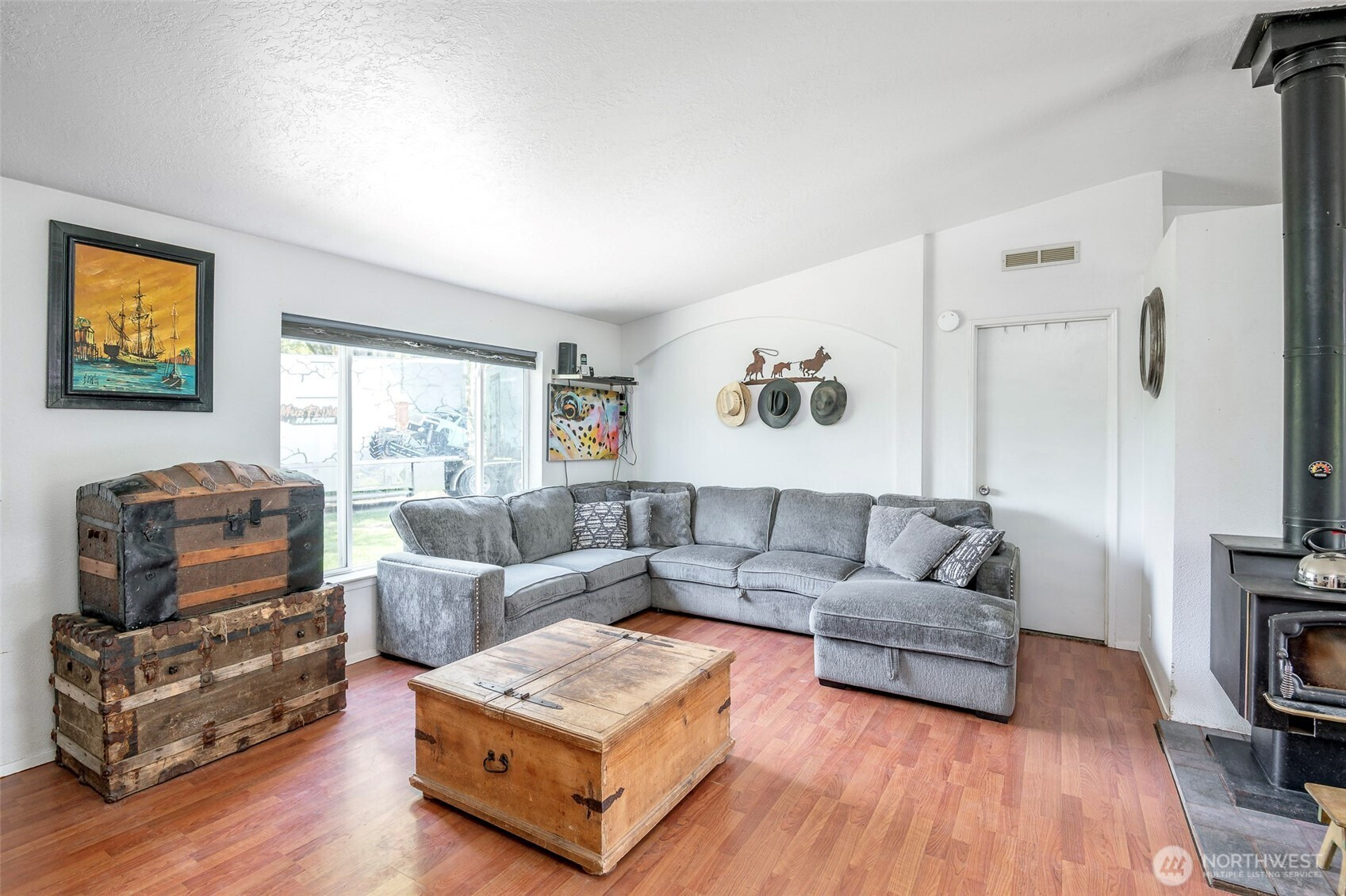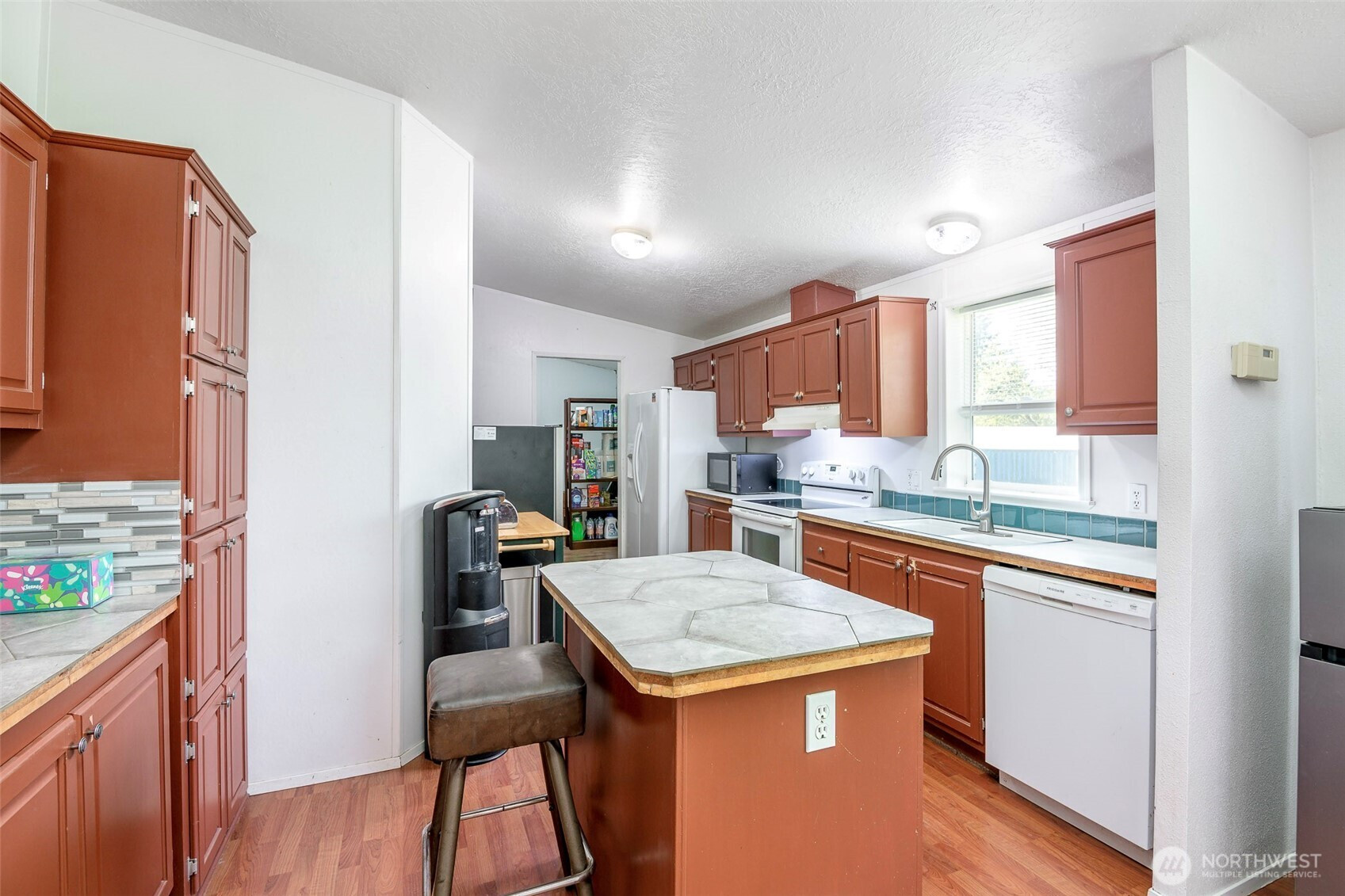 So many opportunities with this 10 acre property in quiet Lakebay community. The manufactured home on the property has vaulted ceilings for an open feel in the living and dining rooms. There is a cozy wood stove and stunning laminate hardwood flooring throughout. The kitchen offers tons of cabinetry and a center island plus access to the utility room that offers pantry space. The primary bedroom features wainscoting detailing, large walk-in closet and an en-suite bath. 2 additional bedrooms plus an additional full bath. The front porch overlooks the property which includes a shed, and fenced garden area. Storage Container goes with seller.