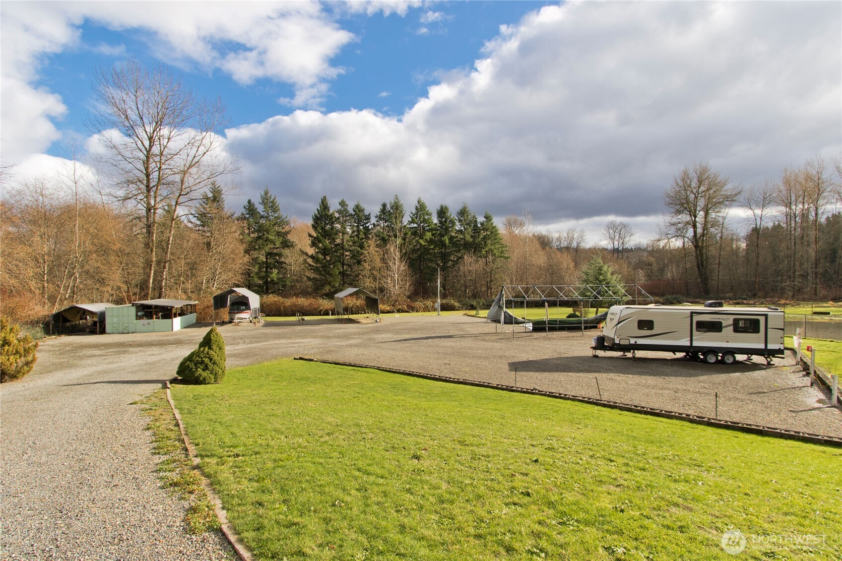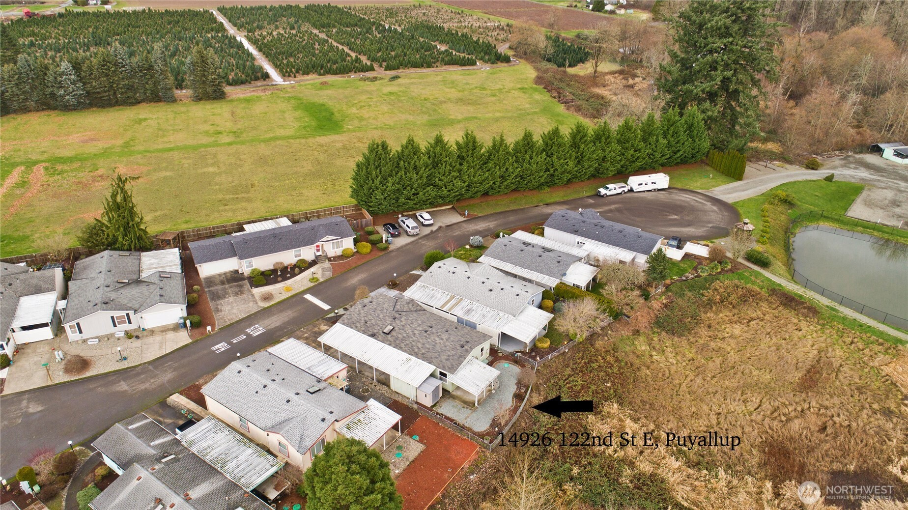 55+ 3 bedroom 2 bath home in the desirable well maintained Noble Firs Park with secure gated entry! Large family room with slider that opens up to the covered back patio with a storage shed and low maintenance fenced yard that over looks nature. Open concept light and bright kitchen and dining with vaulted ceilings, a large pantry. Primary bedroom offers vaulted ceilings walk in closet, primary bath with a large walk in shower. New inside paint and new flooring through-out. Enjoy this 55+ community that has walking trails, neighborhood park, RV parking and special events close to the Orting trails, minutes to shopping and amenities