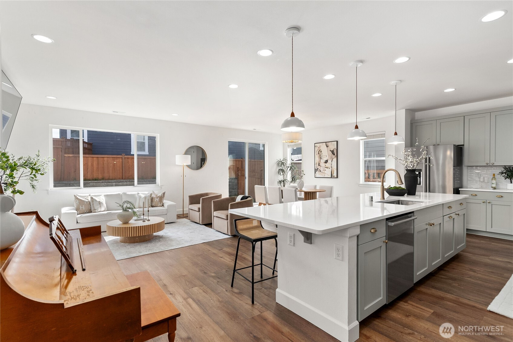 Experience refined living in this exceptional two-story new construction home, thoughtfully designed with a sleek modern aesthetic and an abundance of natural light, ideally situated in a highly desirable and vibrant location. The open-concept main level offers a seamless flow, creating an inviting atmosphere perfect for both everyday living and elevated entertaining. A spacious great room anchors the home, complemented by an elegant dining area and a stunning chef’s kitchen featuring an oversized center island, premium finishes, and generous cabinetry for both style and function.Upstairs, a versatile loft provides the perfect space for a home office, media room, or additional lounge area. Well-appointed secondary bedrooms offer comfort and flexibility, while the luxurious primary suite serves as a true retreat, complete with a spa-inspired bathroom featuring upscale finishes and an expansive walk-in closet designed for convenience and organization.This home showcases quality craftsmanship and thoughtful design throughout, blending clean lines with modern sophistication. An attached garage adds everyday convenience, while the overall layout maximizes both space and livability. Located in a sought-after area known for its accessibility and appeal, this residence offers a rare opportunity to enjoy contemporary comfort, timeless style, and an elevated lifestyle in a prime setting.