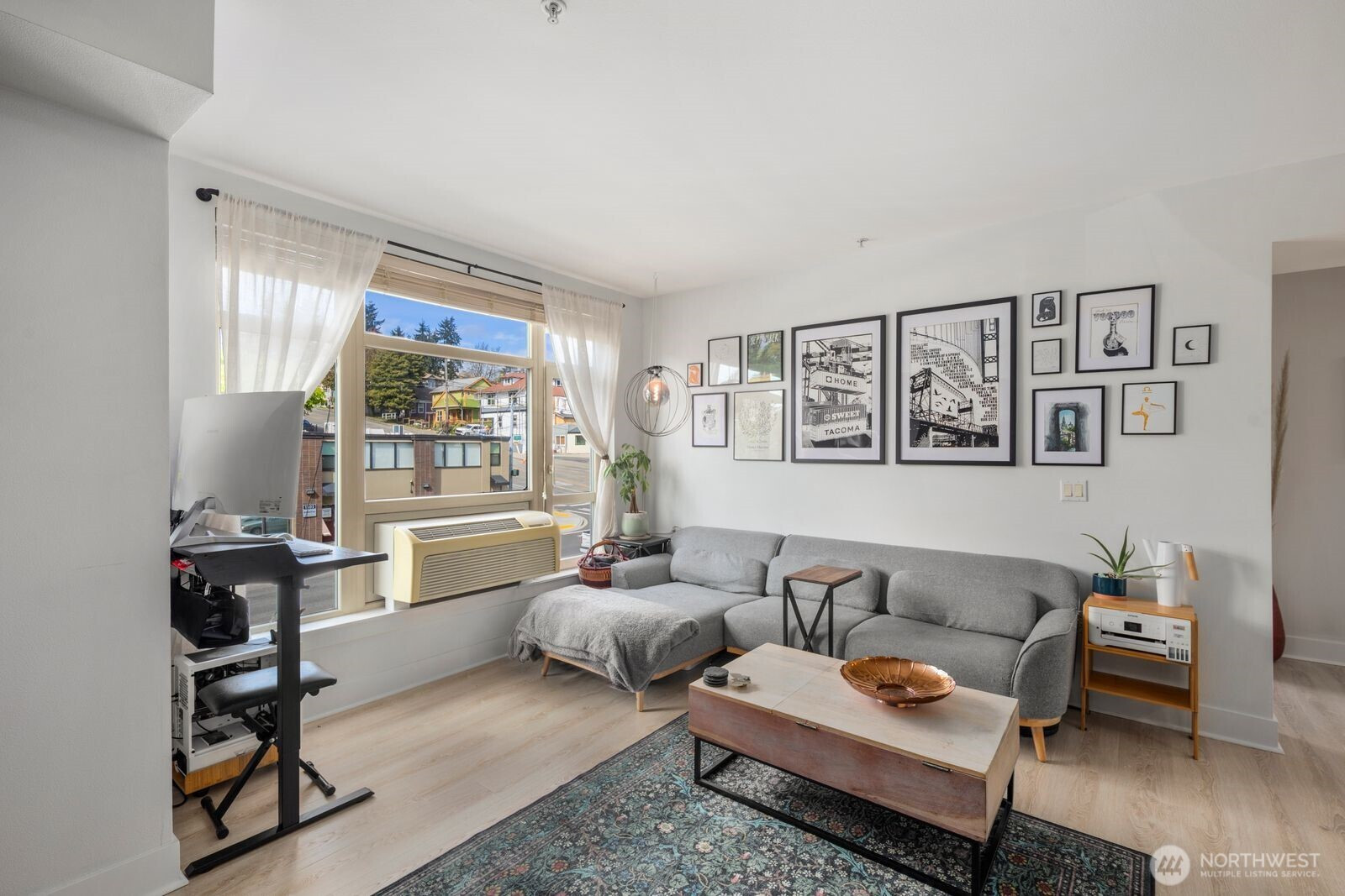 Welcome to Reverie at Marcato, where urban downtown living meets comfort and charm in the heart of Tacoma. This inviting 1 bedroom + den, 1 bath unit offers a warm and functional layout with space for a home office or guest area. The updated kitchen with stainless appliances adds a modern touch, while west facing windows fill the home with natural light and create a bright, welcoming feel. With no neighbors on the north wall, enjoy an added sense of privacy that is rare in condo living. This secure building offers premium amenities including a fitness center, private theater, clubhouse, BBQ courtyard, secured parking garage with a designated space, and designated storage unit. Located just minutes from the light rail, I 5, waterfront, dining, and major employers, this is an ideal opportunity for easy, connected living in one of Tacoma’s most vibrant areas.