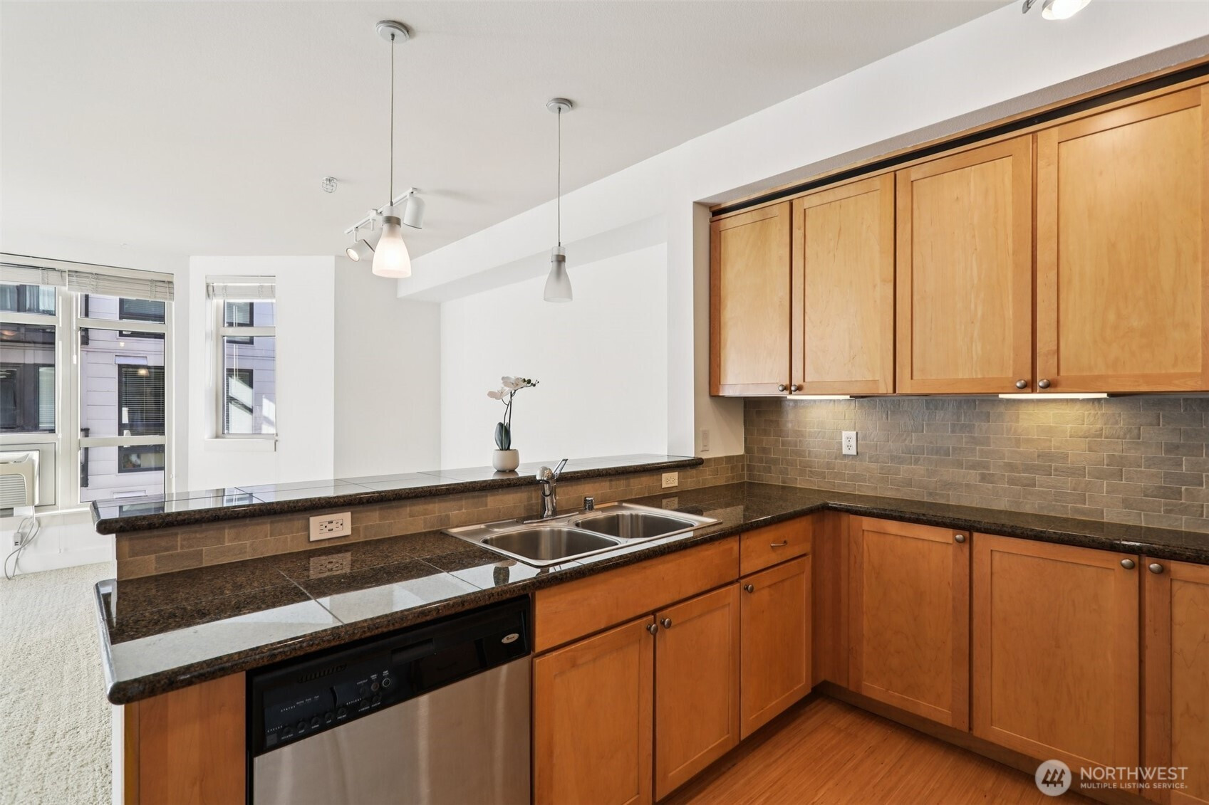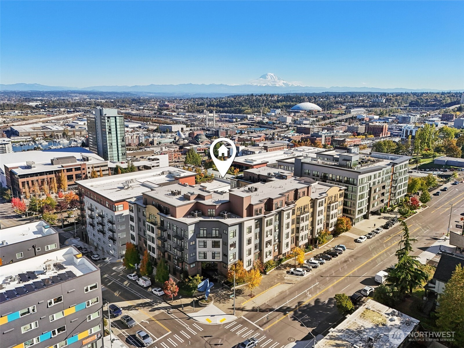 This 1 Bed/1 Bath + Home Office condo offers the perfect balance of location, amenities, and convenience. Ten-foot ceilings and tall windows brighten the spacious living area, while the kitchen shines with black granite counters, SS appliances, and a bar open to the living room. Radiant floor heating and A/C ensure year-round comfort and control, with in-unit laundry and dishwasher adding ease. That’s just the condo! The Reverie at Marcato has a secure lobby and mail area, garage parking, dedicated storage, courtyard with grill, clubhouse/community room, cinema, and fitness center. Just minutes from I-5 (though not too close for comfort!), and blocks from shops, dining, museums, farmers market, St. Joseph Medical Center, and UW Tacoma.