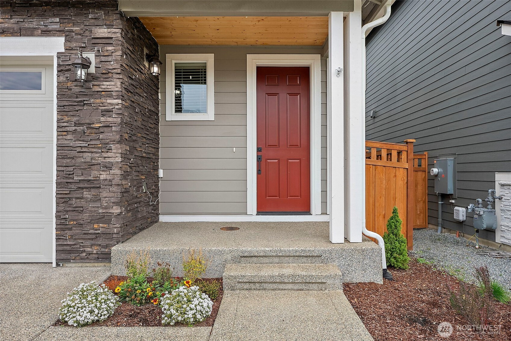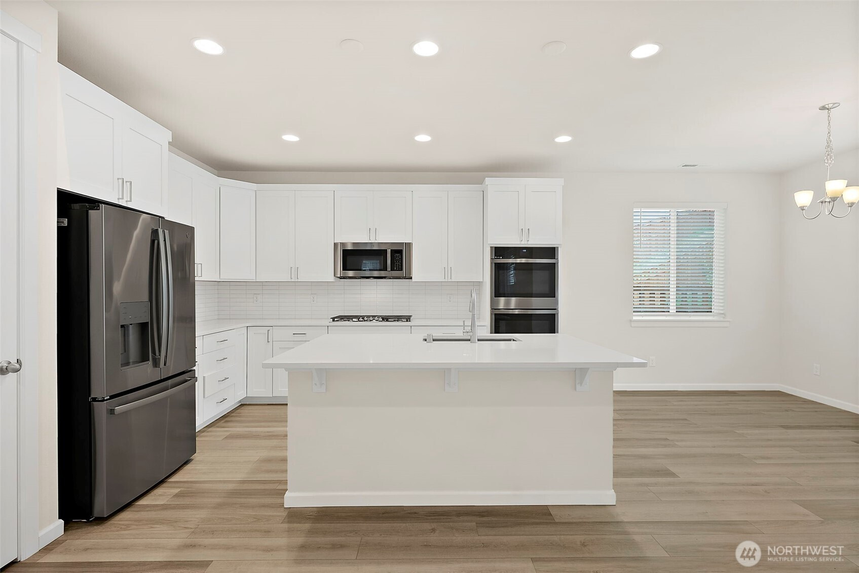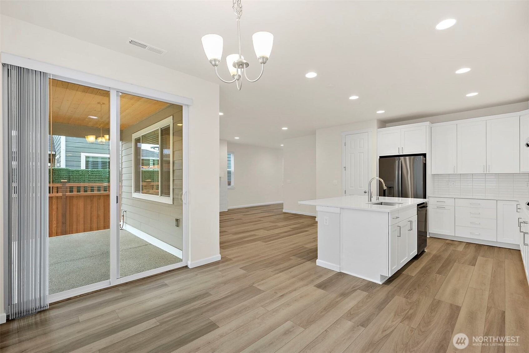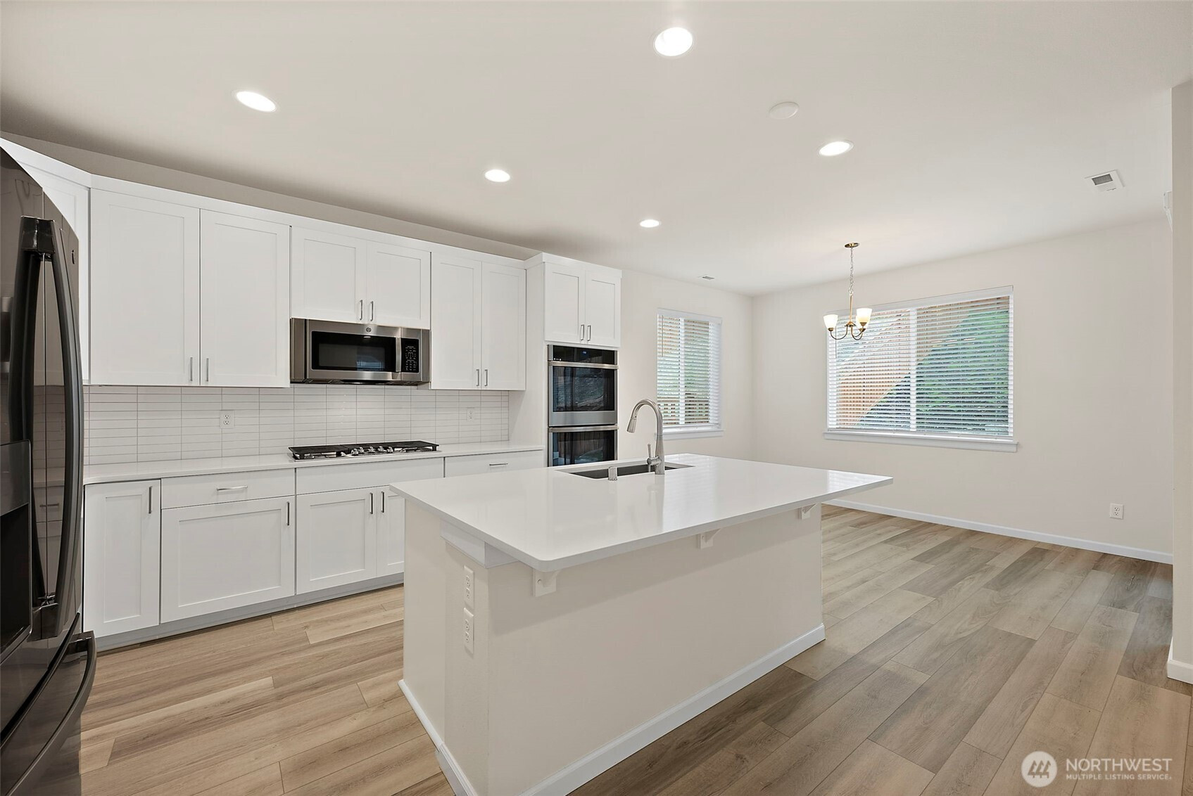 Morning light spills across wide plank floors as the house wakes. The kitchen shines with quartz counters, white shaker cabinets, stainless appliances, and a big island where breakfasts stretch into plans for the day. The great room gathers everyone by the fireplace, then opens to a private patio and a low maintenance yard made for easy evenings. In summer, A/C keeps every room cool and calm. A main level guest suite welcomes guests or work from home days. Upstairs, a spacious loft becomes movie night central. The primary suite feels like a spa with a soaking tub and an oversized walk in closet. Step outside to trails, parks, and coffee at Post & Pour. Life here looks connected, relaxed, and yours