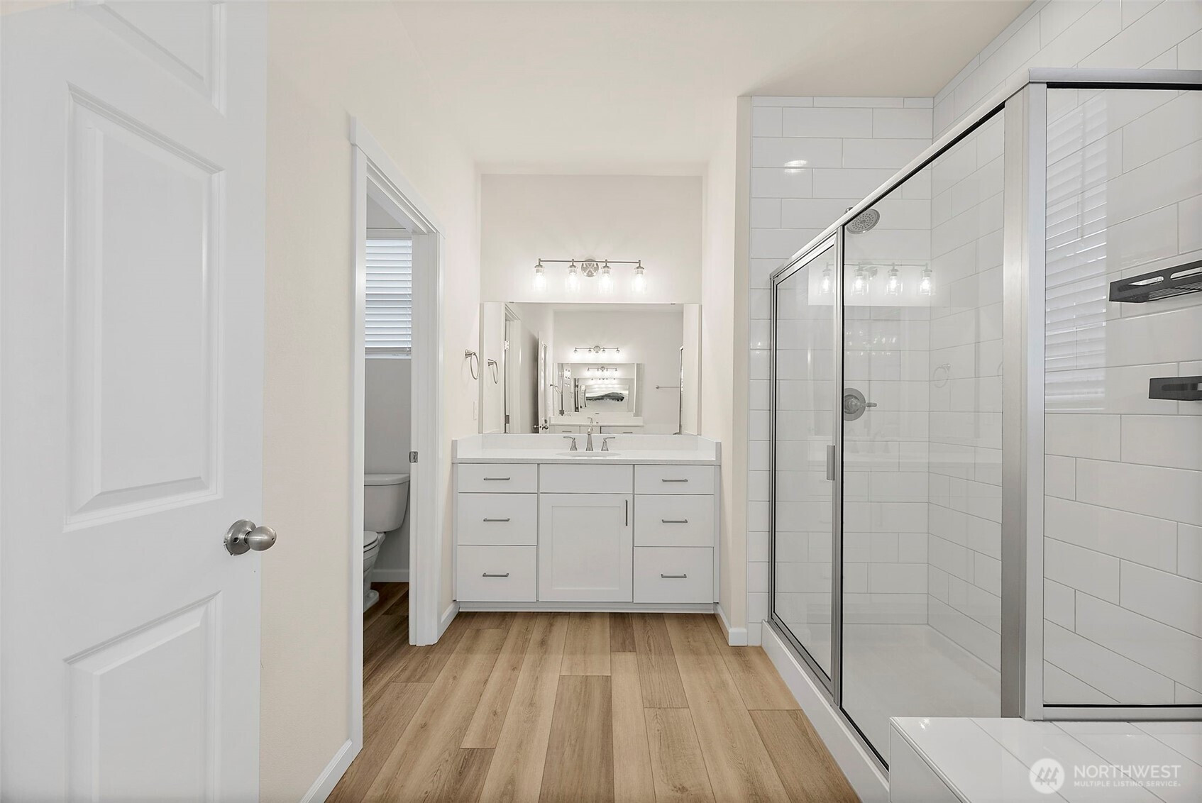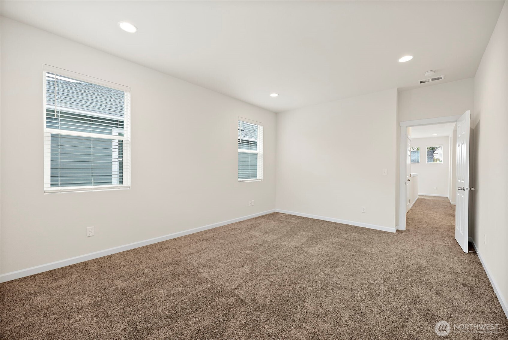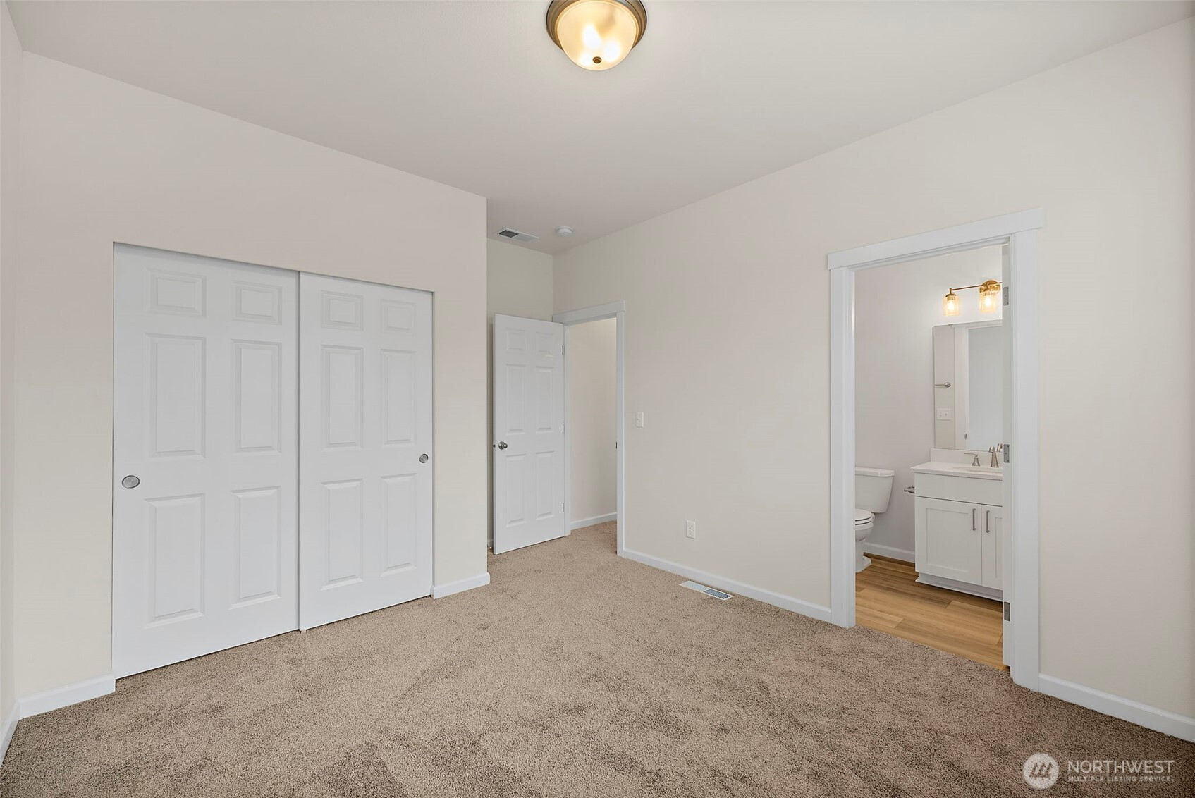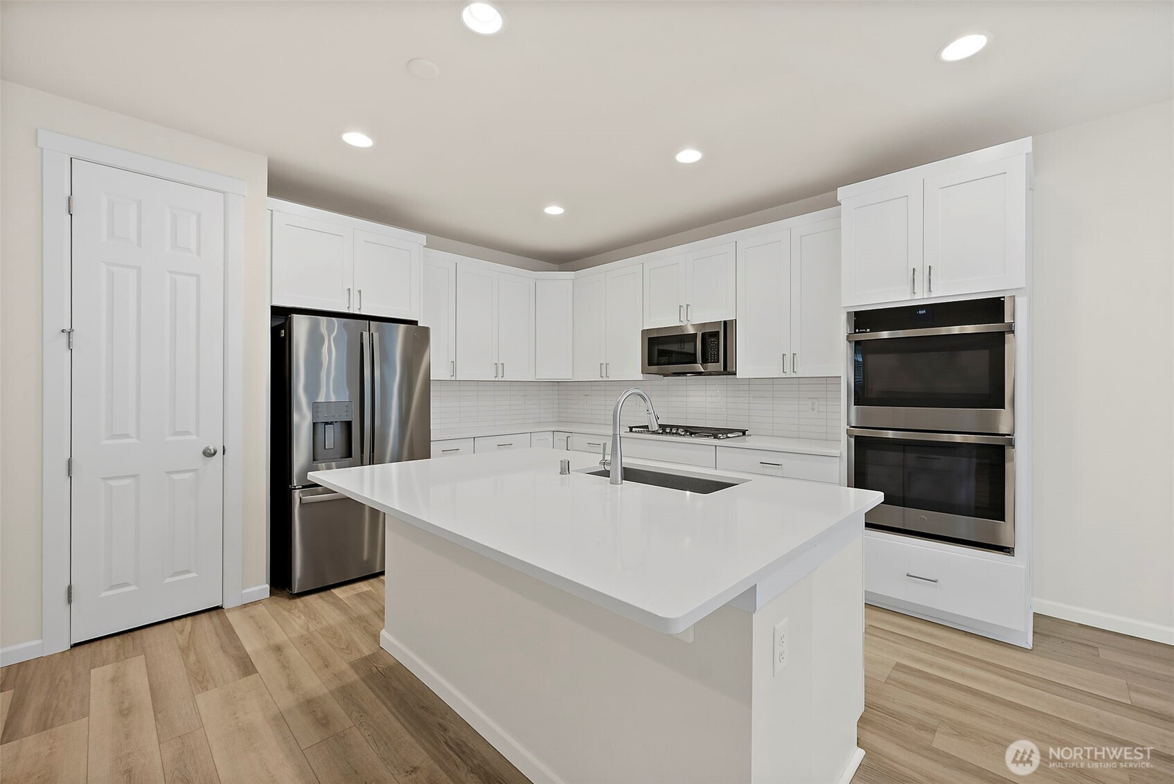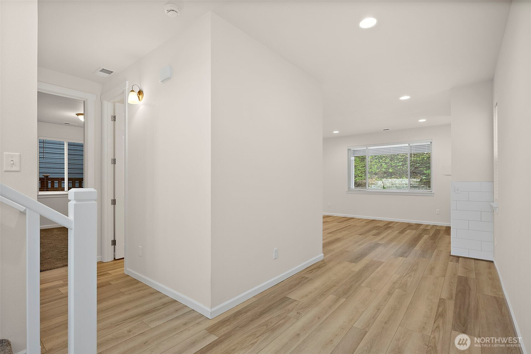 Morning light spills across wide plank floors as the house wakes. The kitchen shines with quartz counters, white shaker cabinets, stainless appliances, and a big island where breakfasts stretch into plans for the day. The great room gathers everyone by the fireplace, then opens to a private patio and a low maintenance yard made for easy evenings. In summer, A/C keeps every room cool and calm. A main level guest suite welcomes guests or work from home days. Upstairs, a spacious loft becomes movie night central. The primary suite feels like a spa with a soaking tub and an oversized walk in closet. Step outside to trails, parks, and coffee at Post & Pour. Life here looks connected, relaxed, and yours