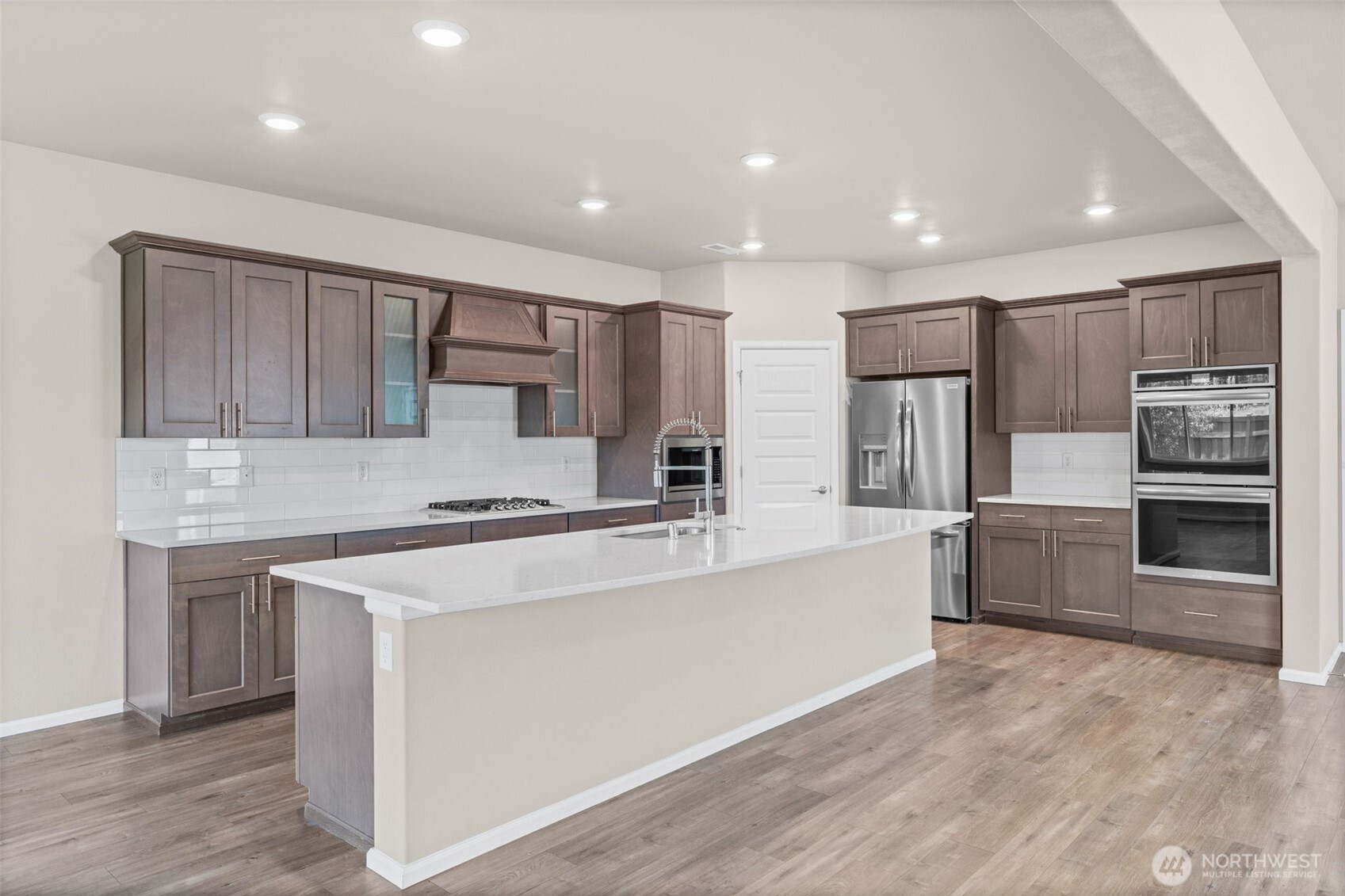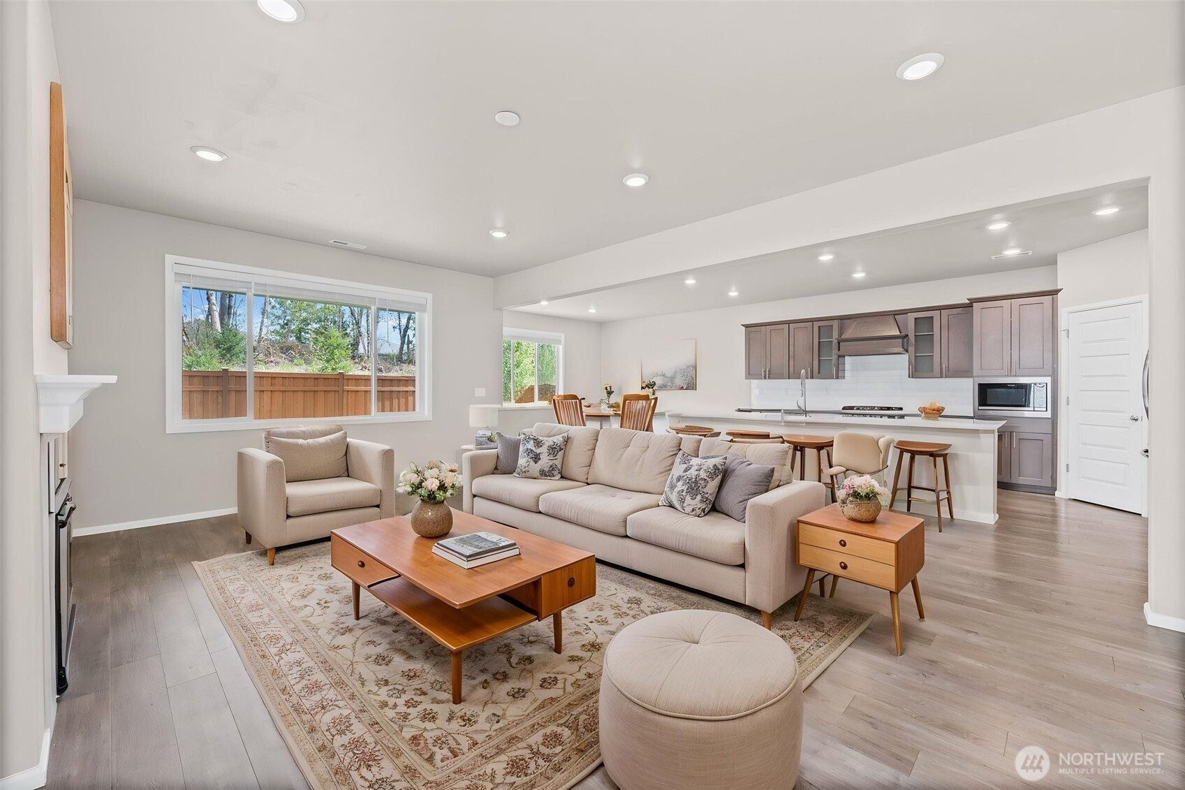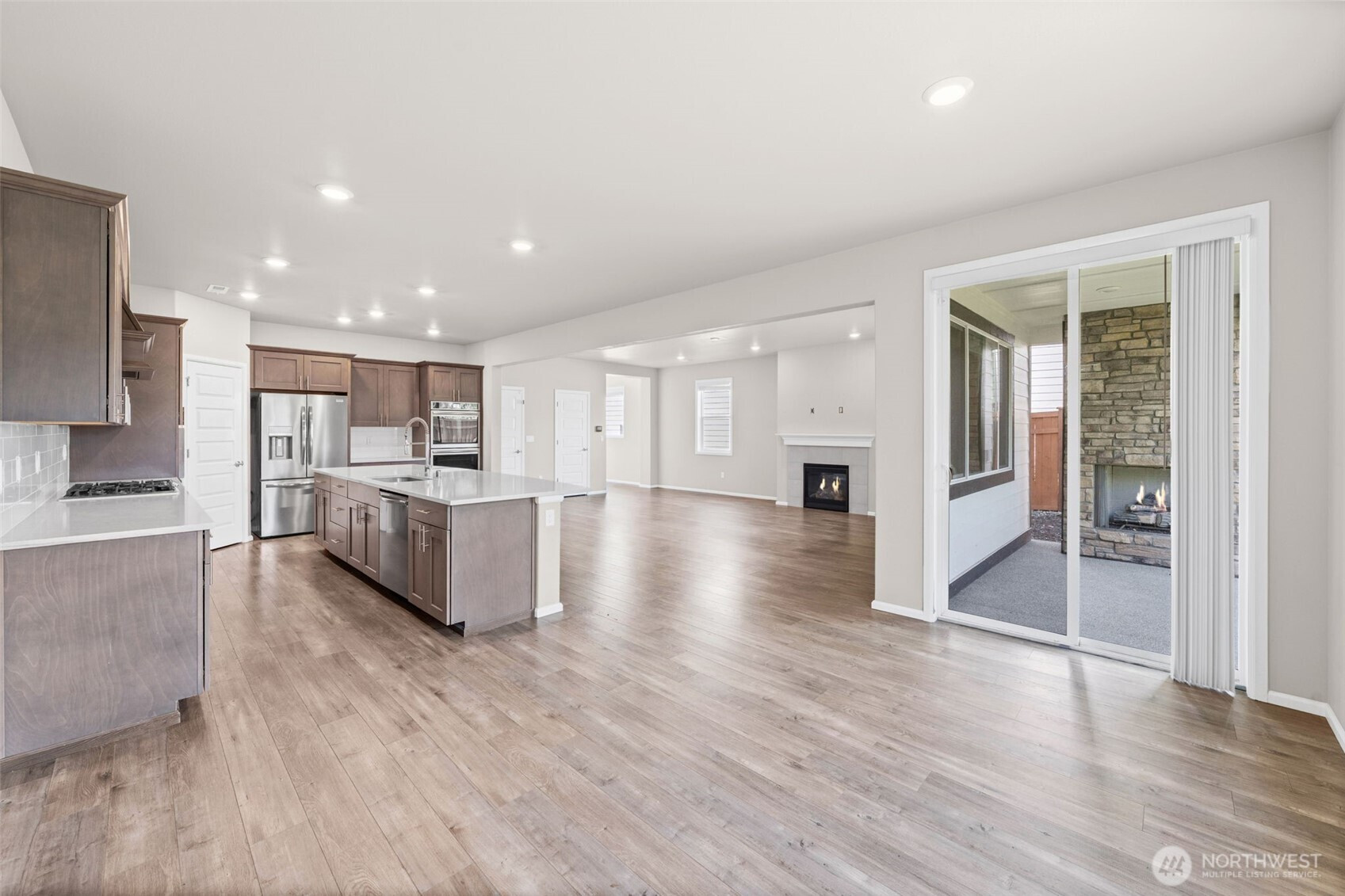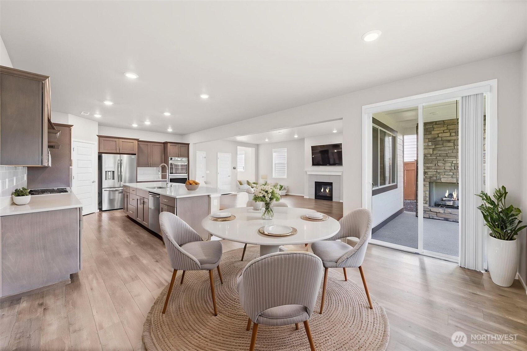 Welcome to Tehaleh living at its finest! Built in 2022, this beautifully upgraded Lennar Magnolia Plan home offers the perfect blend of comfort, style, and outdoor connection. Ideally situated backing to open space and scenic walking trails—and just steps from the new mountain bike park—this home delivers both privacy and adventure right outside your door. The open-concept main level is designed for entertaining, featuring a stunning kitchen with an oversized quartz island, double oven, abundant cabinetry, and seamless flow into the spacious great room with a cozy gas fireplace. Upstairs, enjoy a generous primary suite with a luxurious 5-piece bath, along with three additional bedrooms, a full bath, and a conveniently located utility room. Stay comfortable year-round with central A/C, and unwind under the covered back patio complete with its own gas fireplace—perfect for relaxing evenings. Thoughtfully designed and loaded with upgrades, this nearly new home is move-in ready and set in one of the area’s most sought-after communities.