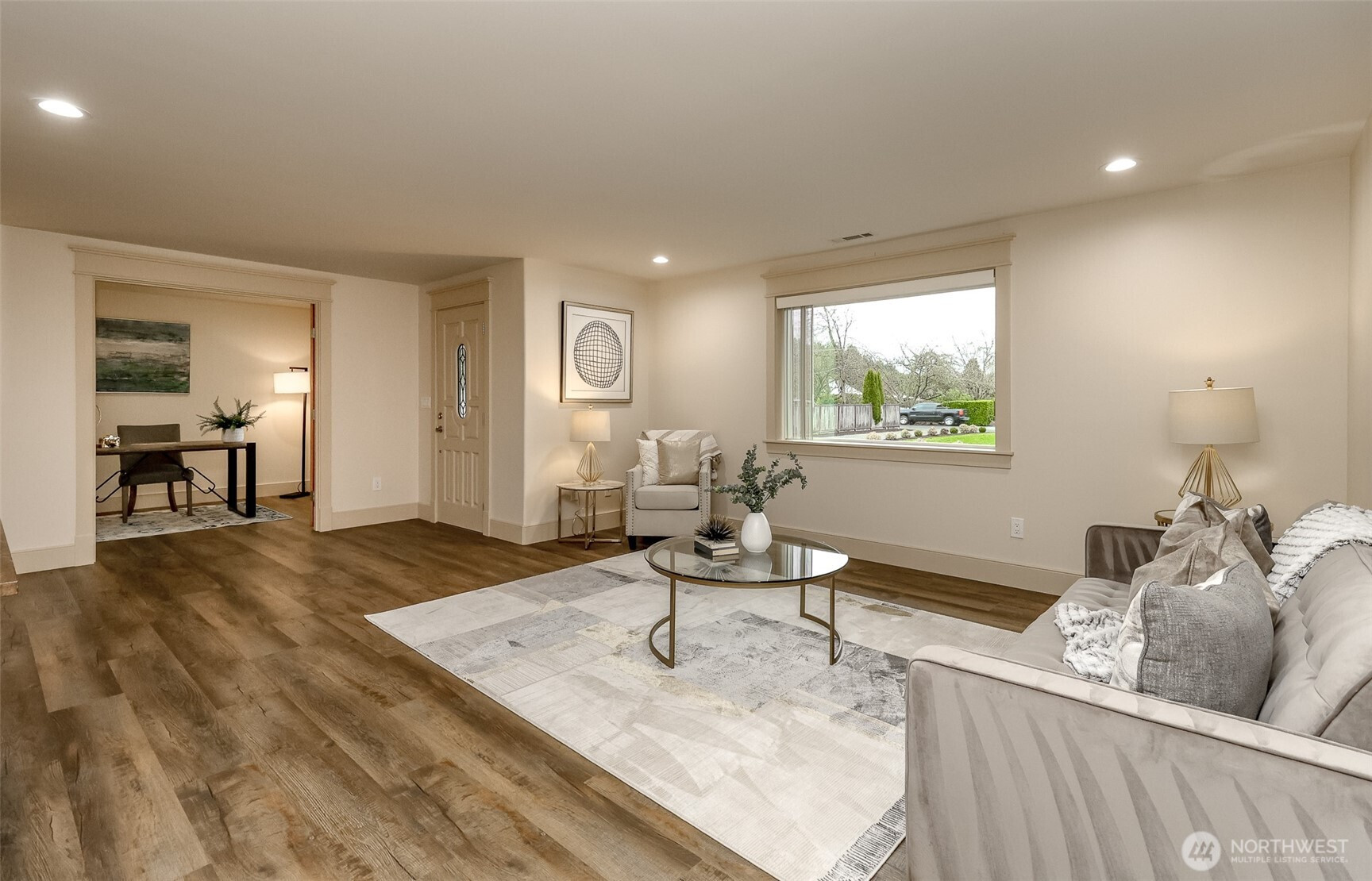 Beautifully updated 3-bed 1.5 bath rambler on a serene acre—your peaceful retreat with an unbeatable location near Good Sam Hospital, close to stores and everyday amenities, and in the Sumner School District. Move-in ready with newer LVP, plush carpet, modern lighting, and fresh interior paint. Spacious living room plus oversized bedrooms with walk-in closets. Showcase kitchen: stainless appliances, butcher-block counters, and custom wood cabinetry. Spa-like 5-piece bath with custom tile, dual vanity, and jetted tub. BBQ year-round on the easy-care TREX deck or relax on the covered front porch and have your morning coffee. Oversized garage, RV parking, sprinklers, heat pump, and a low maintenance yard. There is NO HOA & I'm pre inspected.