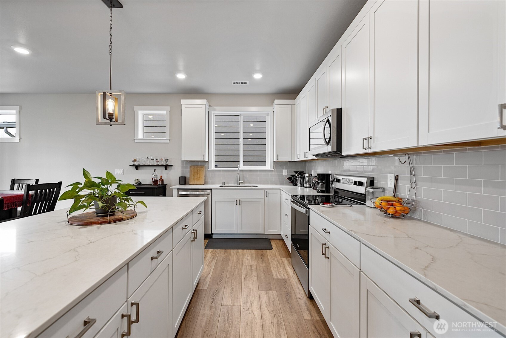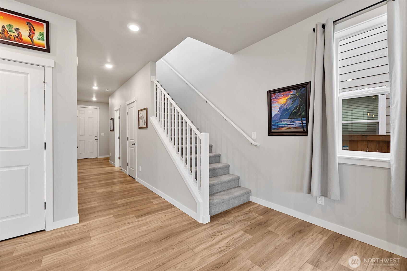 Welcome to this beautifully maintained 3 bedroom, 2.5 bath contemporary home in Puyallup. Built in 2021, it offers 2,130 square feet of thoughtfully designed living space and presents in near new condition. The home feels fresh, clean, and lightly lived in from the moment you walk in. An open main level floor plan brings in great natural light and highlights the modern finishes throughout. The layout works well for everyday living and entertaining. Upstairs, all three bedrooms are located together along with a bonus room that is currently used as a casual hangout area, ideal for a media room, play space, or home office. From the covered back porch, the outlook beyond the fully fenced yard creates a calm, open feel that is hard to find in newer neighborhoods. A heat pump with AC provides efficient, year round comfort. Homes this new, this well kept, and this easy to move into do not come up often. If you want a home that still feels new without the wait, this one is worth seeing in person.