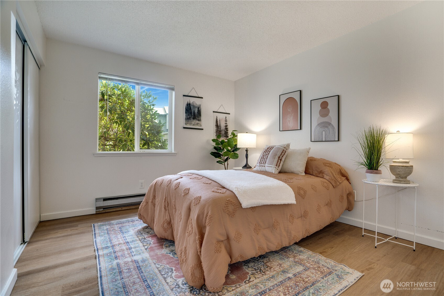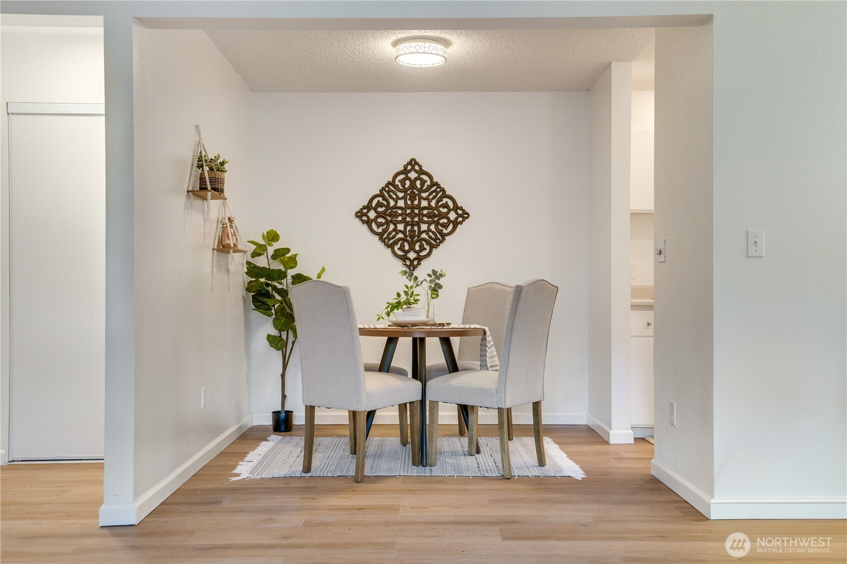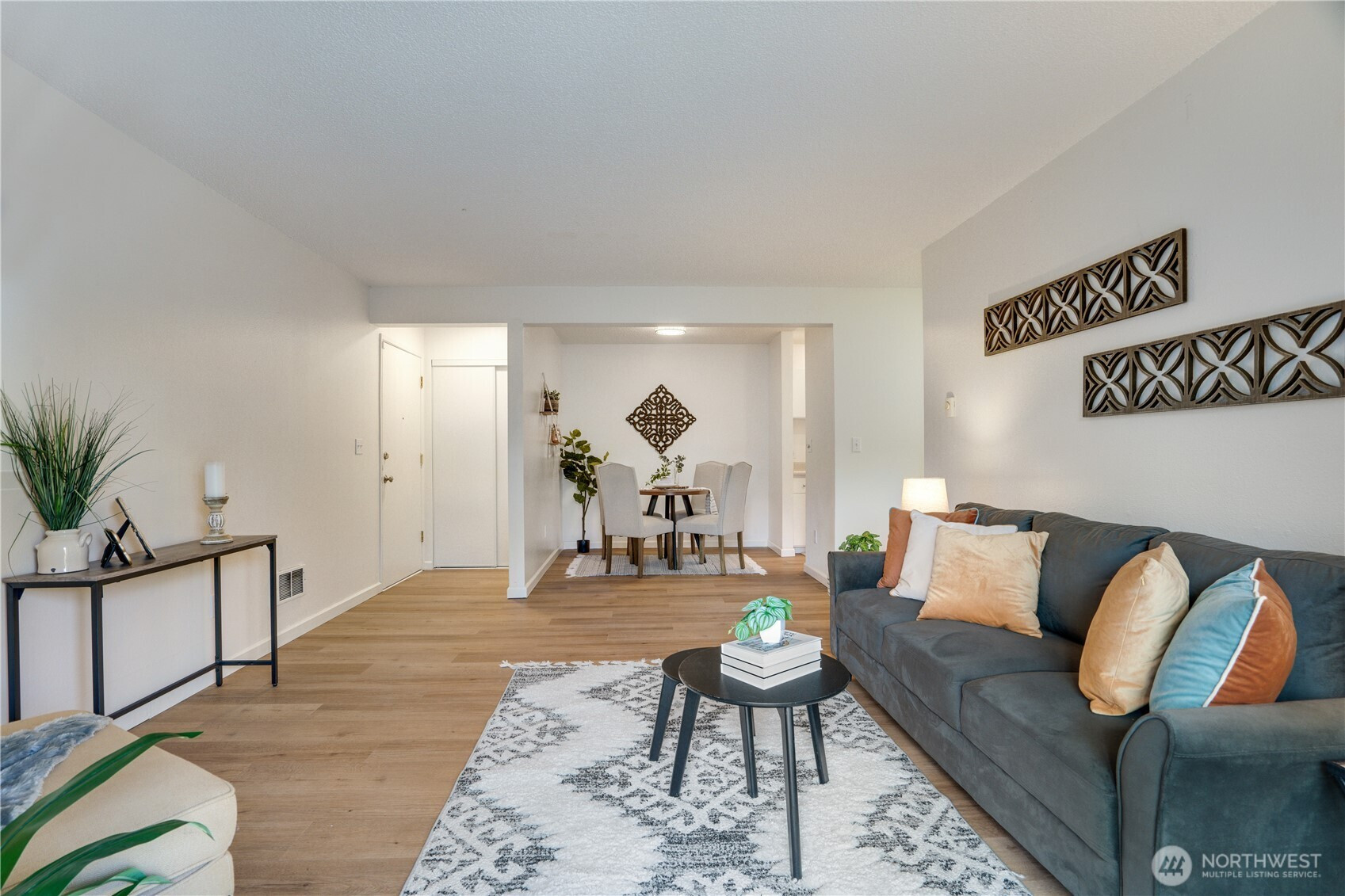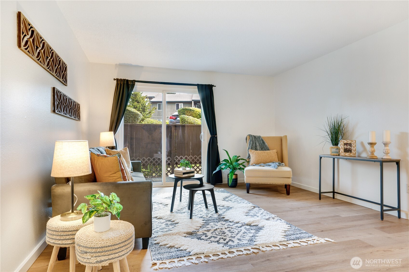Welcome to the Highlands Condominiums—this move-in-ready, ground-level home offers easy living in a well-maintained community with beautifully landscaped grounds. New LVP flooring and a low-maintenance shower surround (2025) add fresh updates to this one-bedroom, one-bath layout. The galley kitchen opens to a dining area and living room, while a private patio extends your living space outdoors—ideal for morning coffee! Offers abundant interior storage, an exterior storage room, reserved parking, and shared laundry just across the hall. Amenities at the Highlands include a pool, fitness center, sport court, and clubhouse. Ideally located in North Tacoma near Highlands Golf Course, Point Defiance, and easy freeway access. No rental cap offers flexibility for homeowners or investors.
