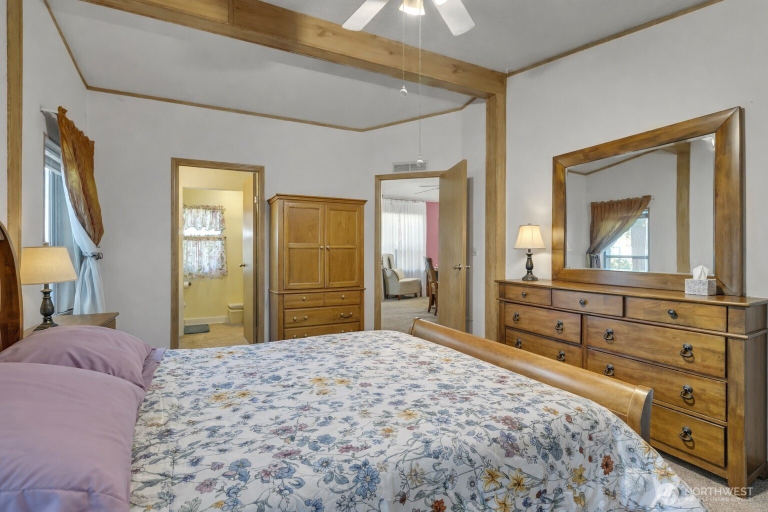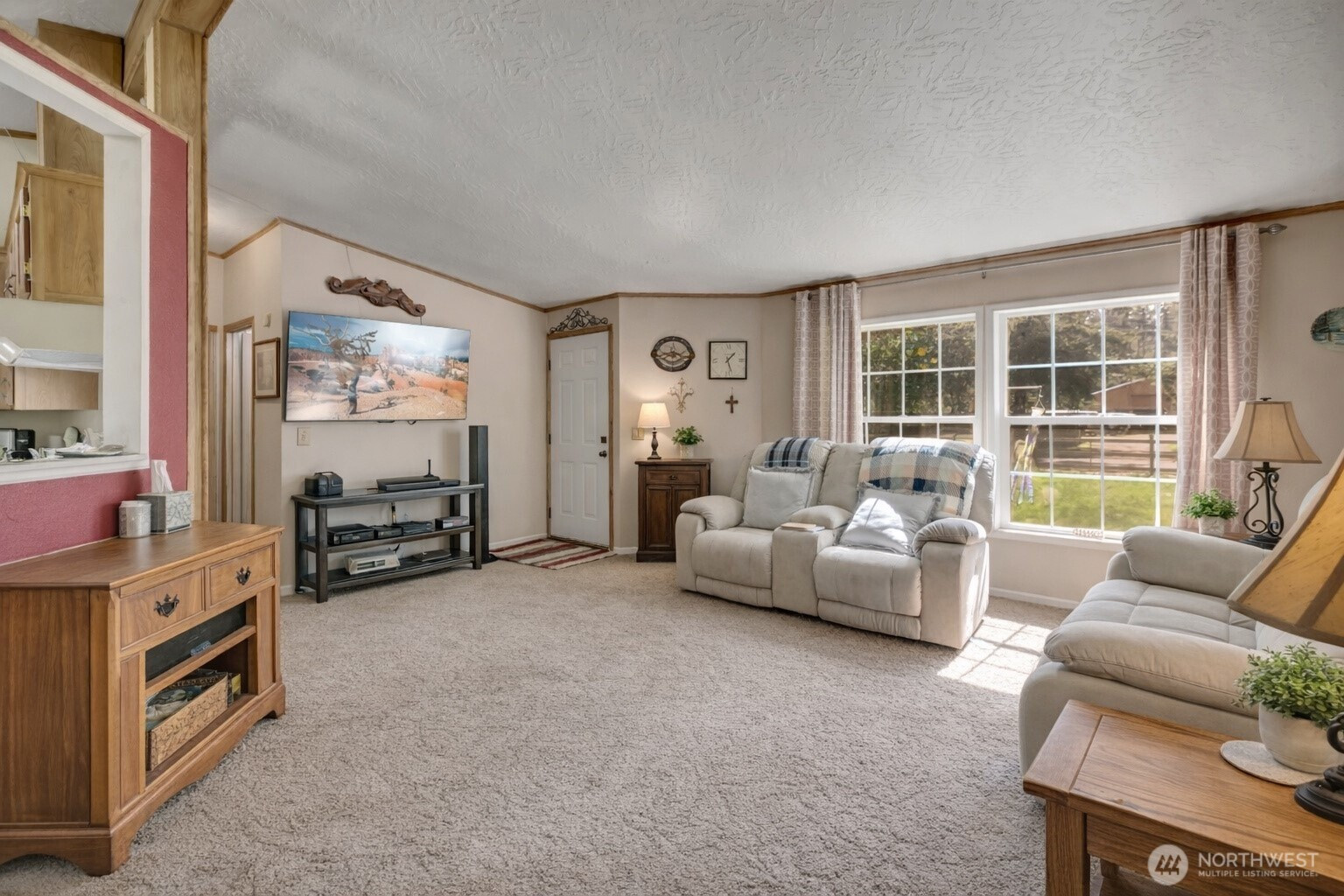 Hurry—opportunities like this don’t last! Don’t miss this rare chance to own this charming manufactured home with 3 bedrooms and 2 baths on 1.26 park-like acres surrounded by tall firs and level, usable land—all at an affordable price! This 1991 home features vaulted ceilings and a bright, open floor plan with a spacious formal living room and dining area flowing seamlessly into a warm and inviting kitchen—perfect for entertaining. The large primary suite offers vaulted ceilings and a private 3/4 bath, creating a comfortable retreat. Step outside to beautiful, park-like grounds with endless potential—ideal for gardens, fruit trees, a future shop, animals, or your dream setup. The property is fully fenced and includes outbuildings for added flexibility and function. Incredible value in a great location—this is a must-see!