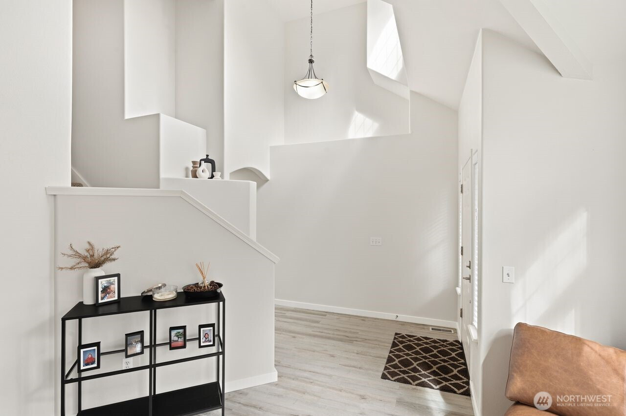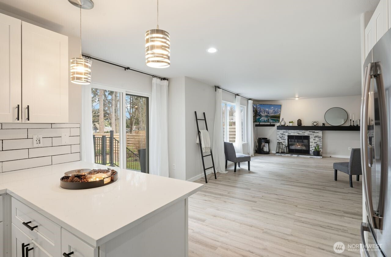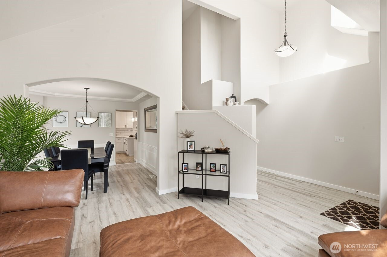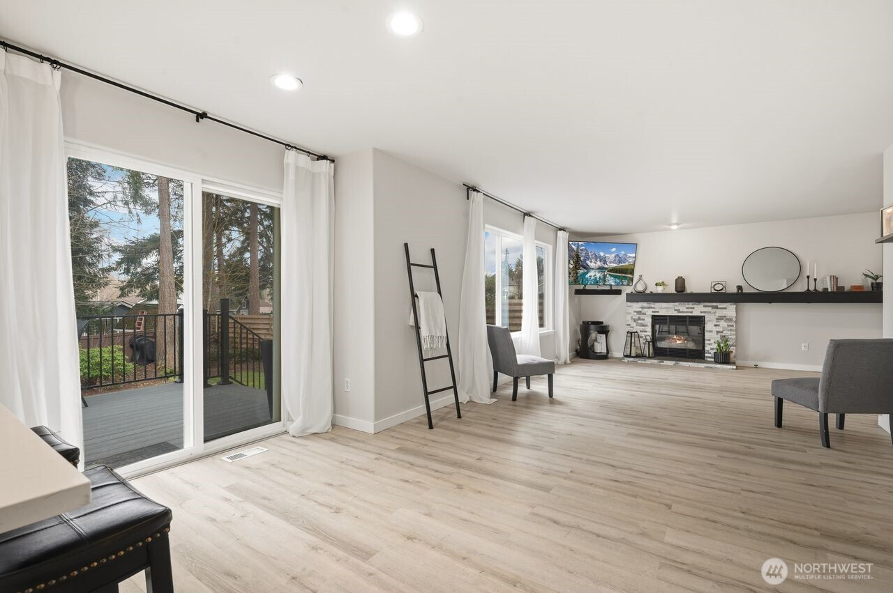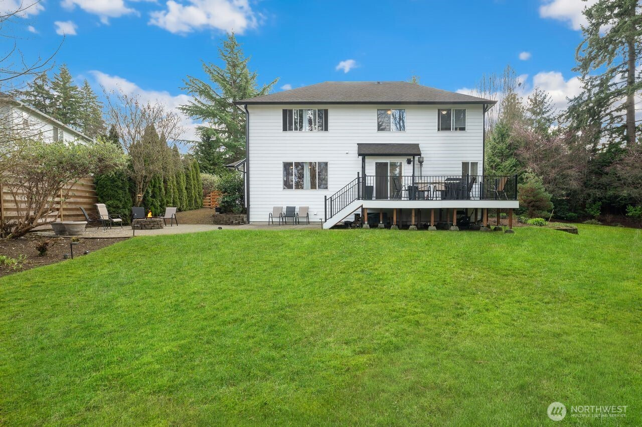 Prime location within an exclusive gated community. This stunning, move-in-ready residence, set on a sprawling 18,957 sq. ft. corner lot, welcomes you with a dramatic grand entry and soaring ceilings. Thoughtfully crafted, it boasts 4 spacious bedrooms, 2.5 baths, and a coveted 3-car wide attached garage, with new flooring flowing seamlessly throughout the main level. Formal living and dining rooms provide refined spaces ideal for hosting and entertaining. At the heart of the home, the fully renovated chef’s kitchen is a standout, showcasing rich quartz countertops, breakfast nook, and stainless-steel appliances. The adjoining family room, featuring a gas fireplace with striking brick detail, creates a warm and inviting ambiance for relaxed evenings. Upstairs, the spacious primary suite offers a peaceful retreat with a spa-inspired bath, dual vanities, a soaking tub, and an oversized walk-in closet. Step outside, and the lifestyle unfolds: a newly crafted Trex deck with contemporary railings invites entertaining, morning coffee, or evening gatherings beneath the open sky. Beyond, the expansive, fully fenced backyard offers both privacy and possibility, an ideal backdrop for relaxation, play, or future vision. Location is everything, just minutes from lake recreation, shopping, schools, entertainment and major employers including Amazon, Boeing, and Joint Base Lewis-McChord. This home blends style, comfort, and convenience for a truly elevated living experience.