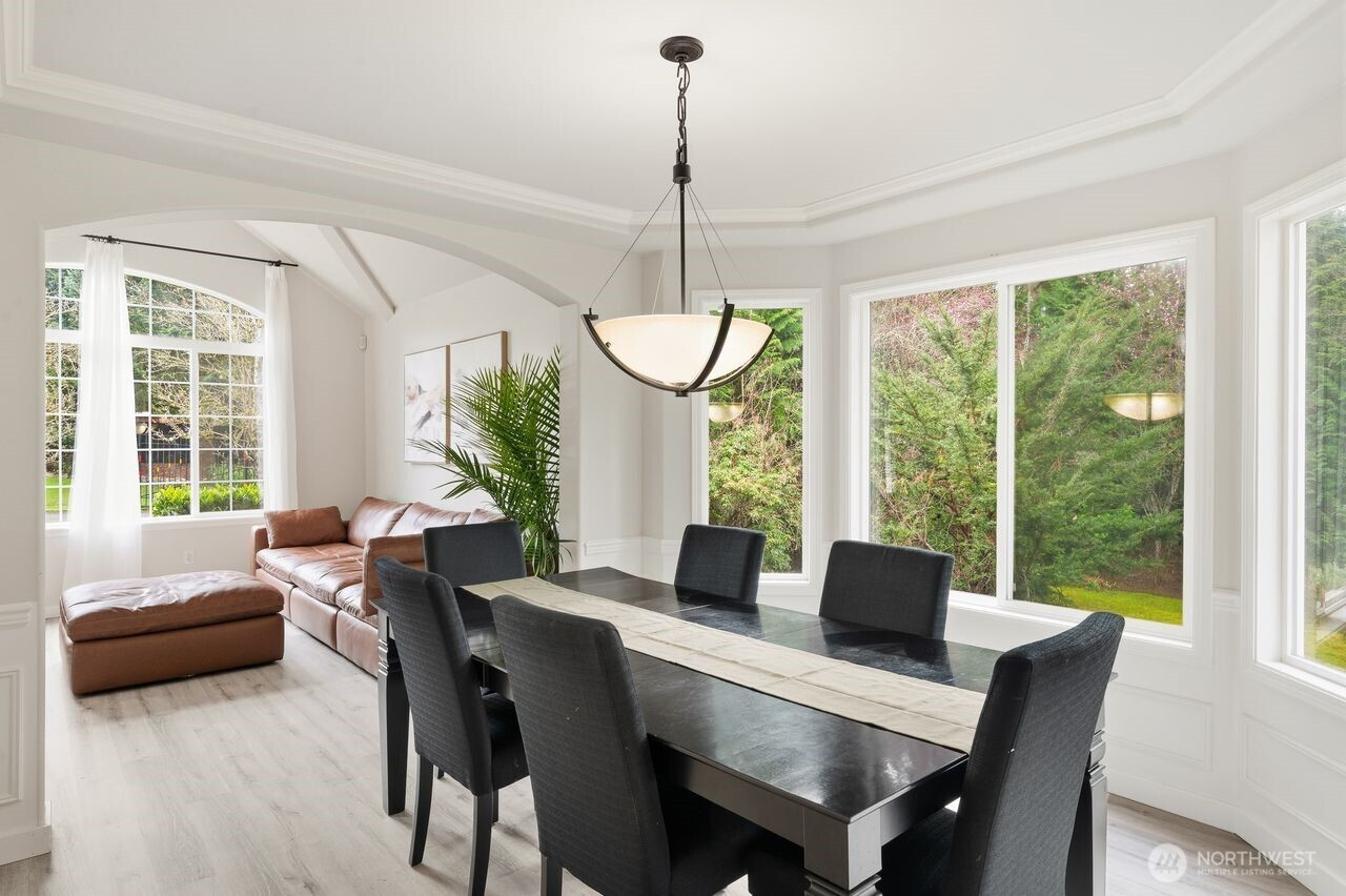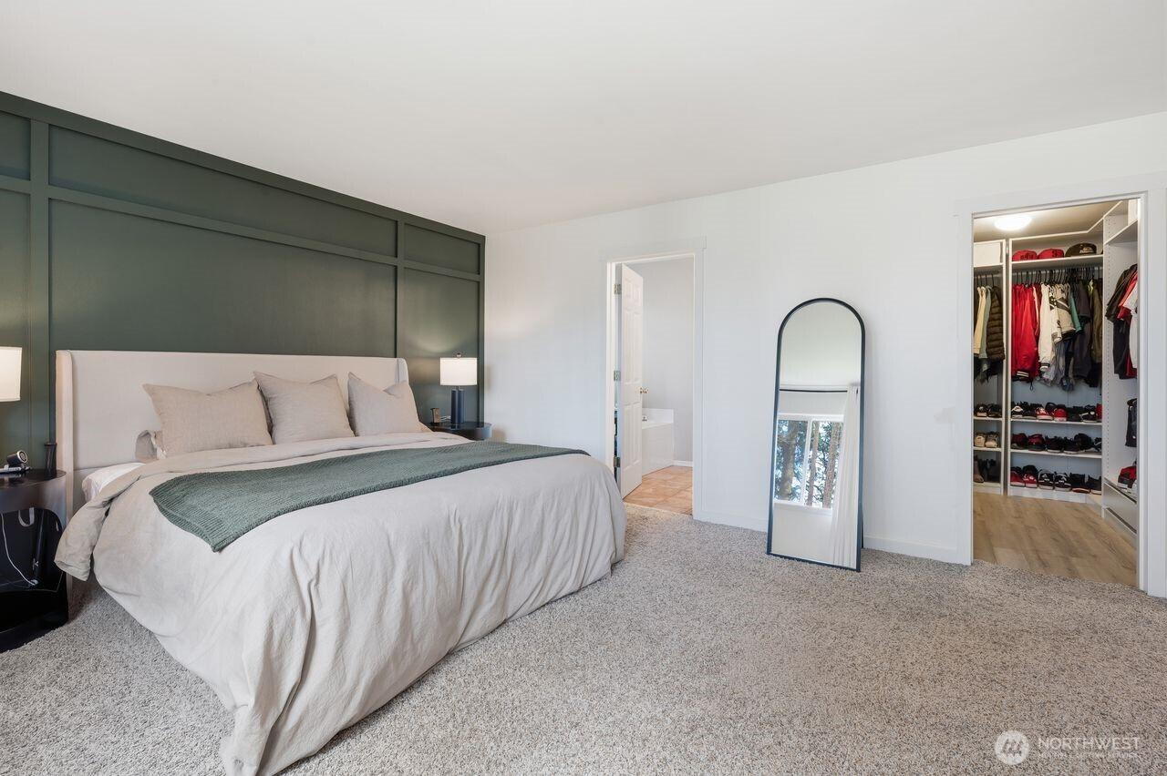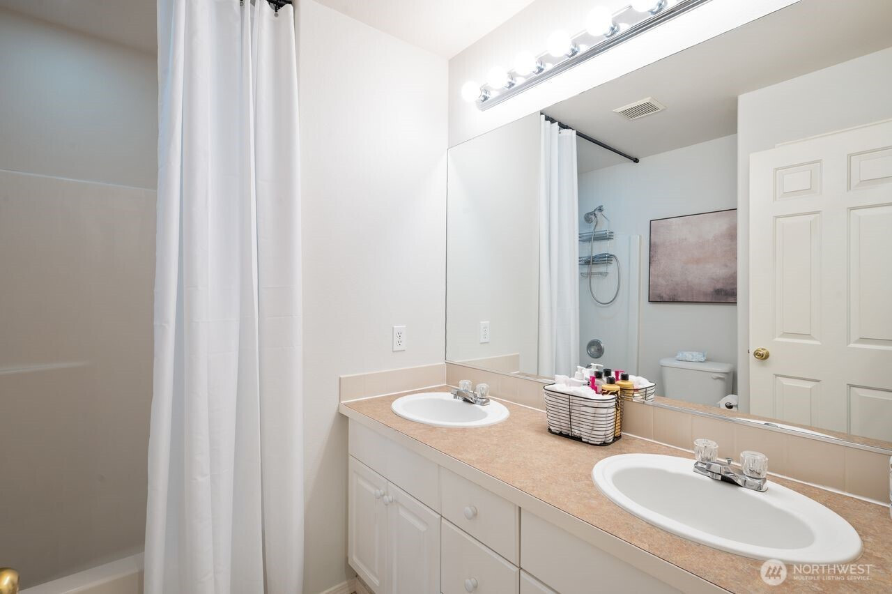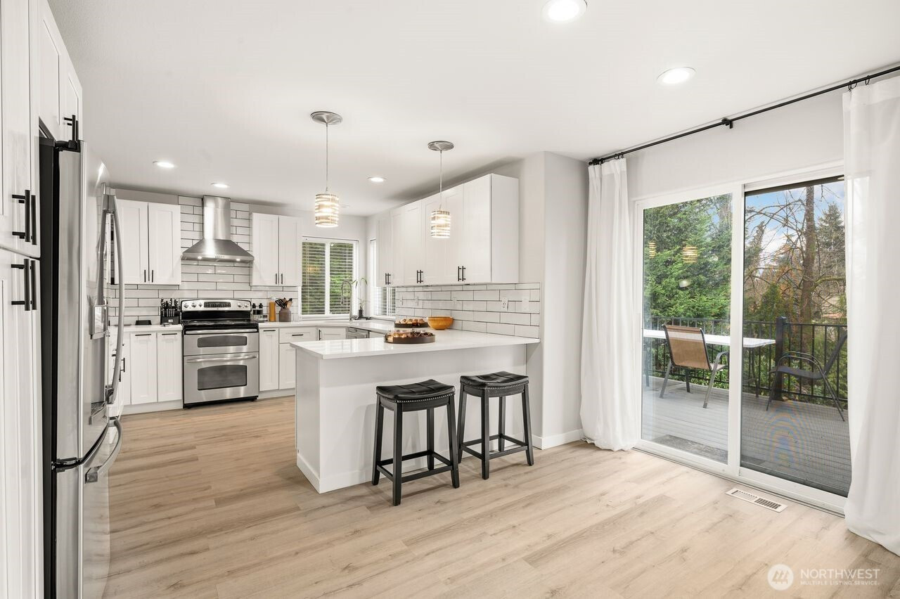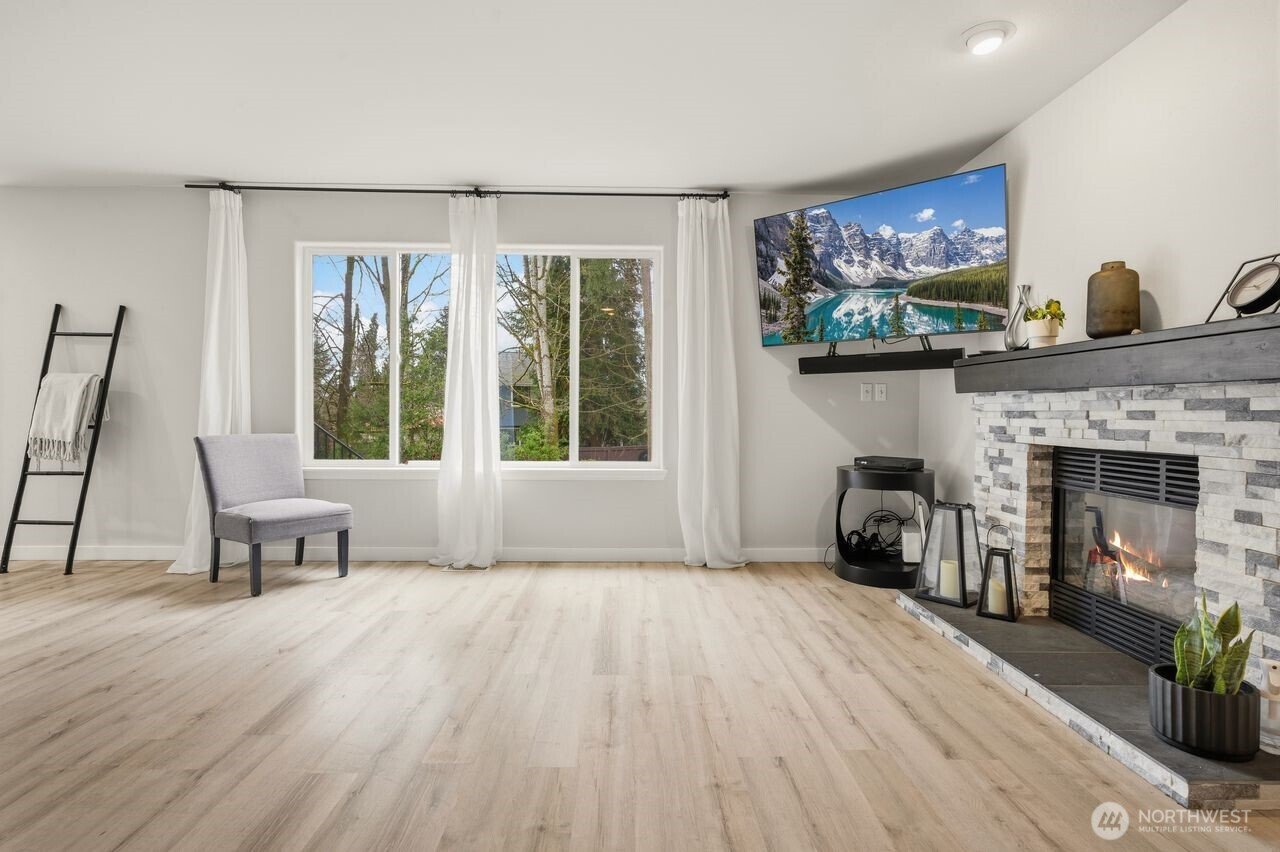 Prime location within an exclusive gated community. This stunning, move-in-ready residence, set on a sprawling 18,957 sq. ft. corner lot, welcomes you with a dramatic grand entry and soaring ceilings. Thoughtfully crafted, it boasts 4 spacious bedrooms, 2.5 baths, and a coveted 3-car wide attached garage, with new flooring flowing seamlessly throughout the main level. Formal living and dining rooms provide refined spaces ideal for hosting and entertaining. At the heart of the home, the fully renovated chef’s kitchen is a standout, showcasing rich quartz countertops, breakfast nook, and stainless-steel appliances. The adjoining family room, featuring a gas fireplace with striking brick detail, creates a warm and inviting ambiance for relaxed evenings. Upstairs, the spacious primary suite offers a peaceful retreat with a spa-inspired bath, dual vanities, a soaking tub, and an oversized walk-in closet. Step outside, and the lifestyle unfolds: a newly crafted Trex deck with contemporary railings invites entertaining, morning coffee, or evening gatherings beneath the open sky. Beyond, the expansive, fully fenced backyard offers both privacy and possibility, an ideal backdrop for relaxation, play, or future vision. Location is everything, just minutes from lake recreation, shopping, schools, entertainment and major employers including Amazon, Boeing, and Joint Base Lewis-McChord. This home blends style, comfort, and convenience for a truly elevated living experience.