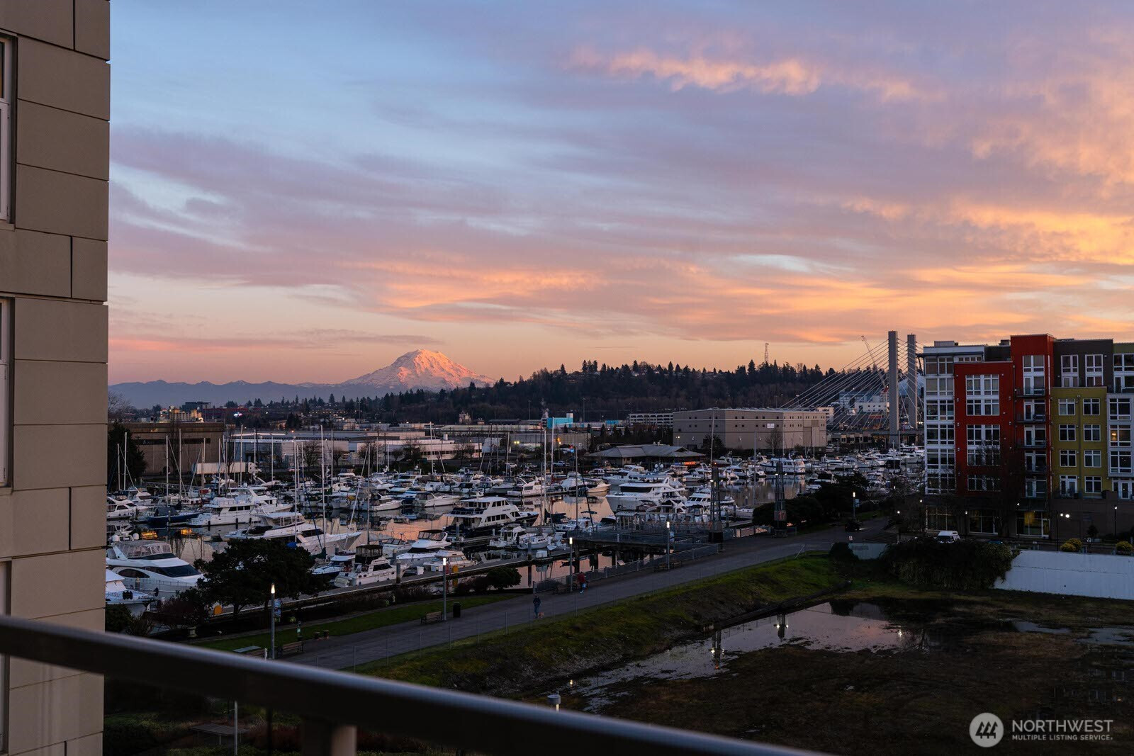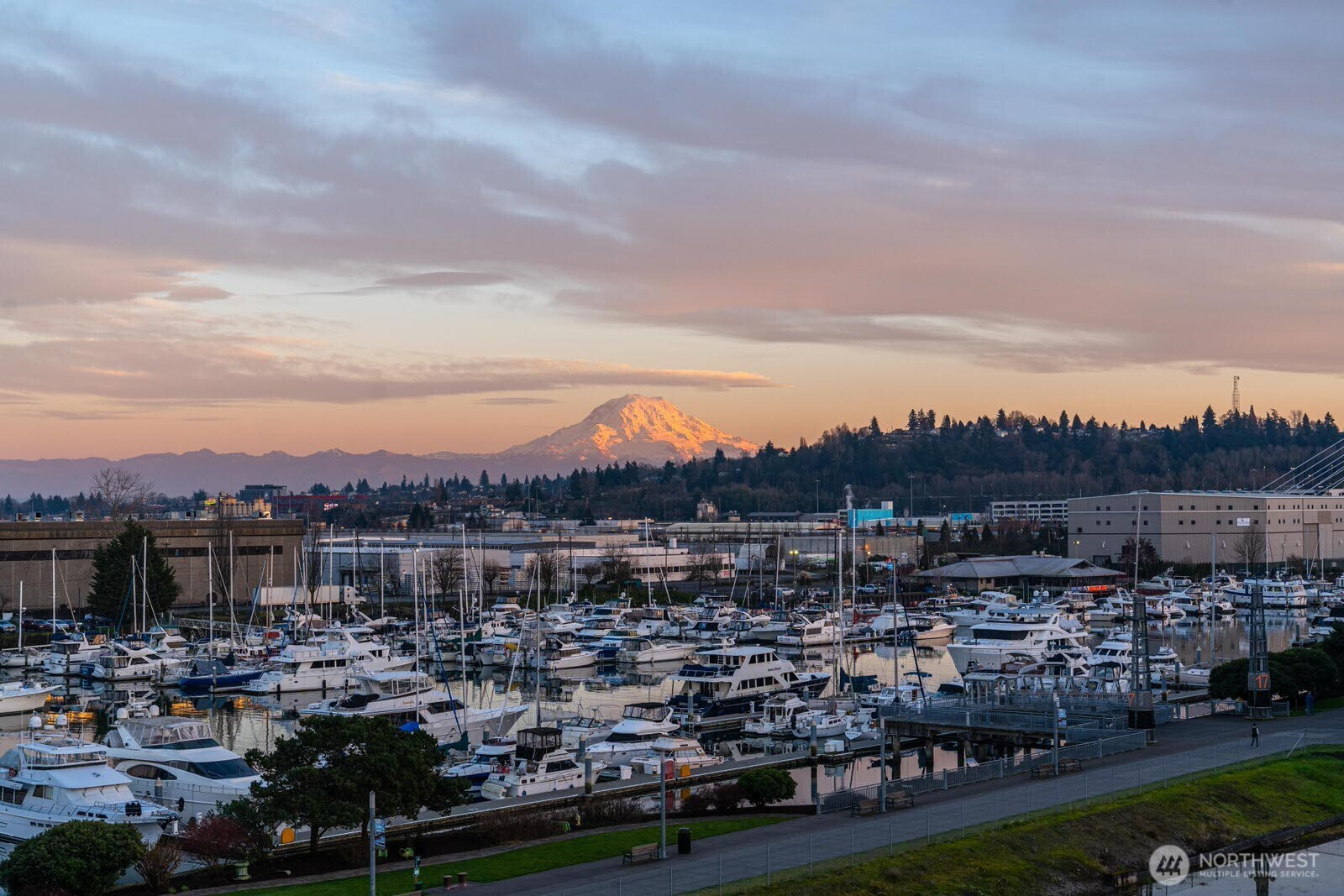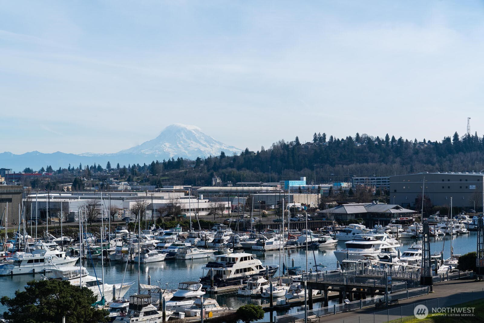 Exceptional Mt Rainier views from your deck with the Thea Foss Esplanade, marina and beach front access just outside your doorstep and moments from Downtown Tacoma! This perfectly positioned condo checks all the boxes. Inside, enjoy a spacious open-concept layout where the kitchen flows seamlessly into the dining and living areas, all leading directly to the view deck—ideal for everyday living and entertaining. Both bedrooms are generously sized, complemented by exceptional storage rarely found in condo living. The building’s concrete and steel construction delivers ultra-quiet interiors, while the well-managed HOA boasts strong reserves and fantastic shared amenities including a gym, common area tv room with kitchen and game room. Conveniently located near world-class museums, dining, hospitals, UW Tacoma, JBLM, Point Defiance & Point Ruston. From your private balcony, panoramic views of Mount Rainier, the Thea Foss Waterway, the marina, and Tacoma’s skyline create a breathtaking backdrop from sunrise to sunset. Additional highlights include no rental cap, two garage parking spaces, a dedicated storage unit, and a pre-inspection available.