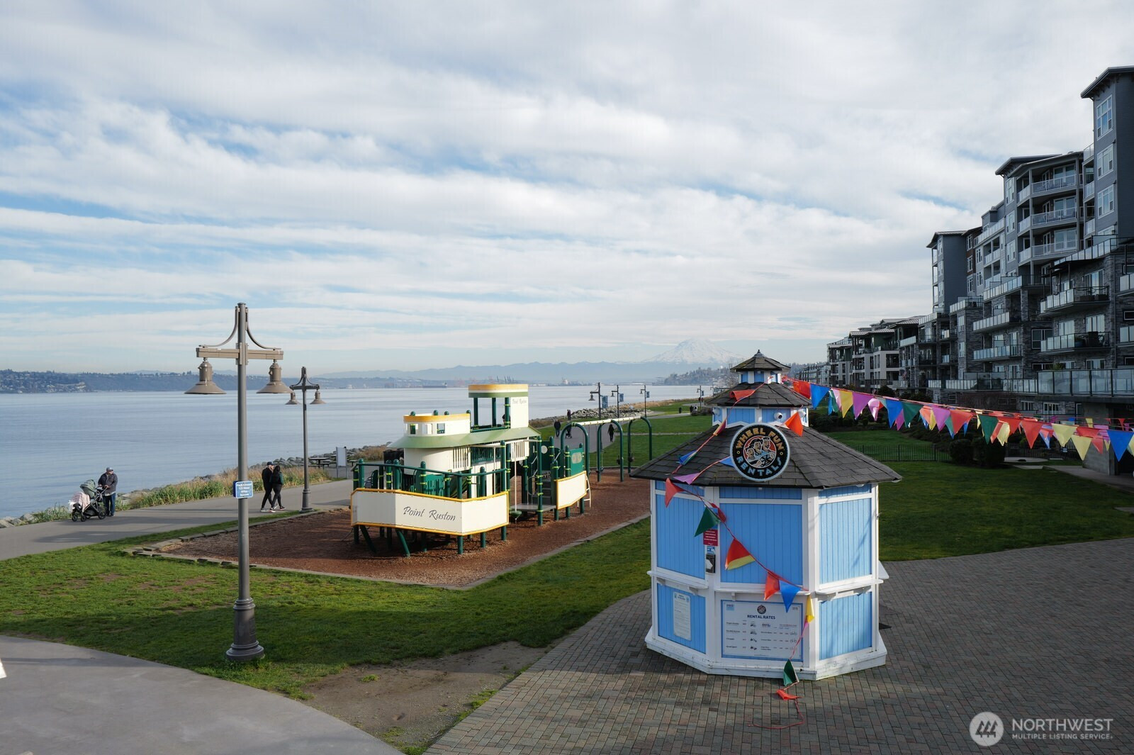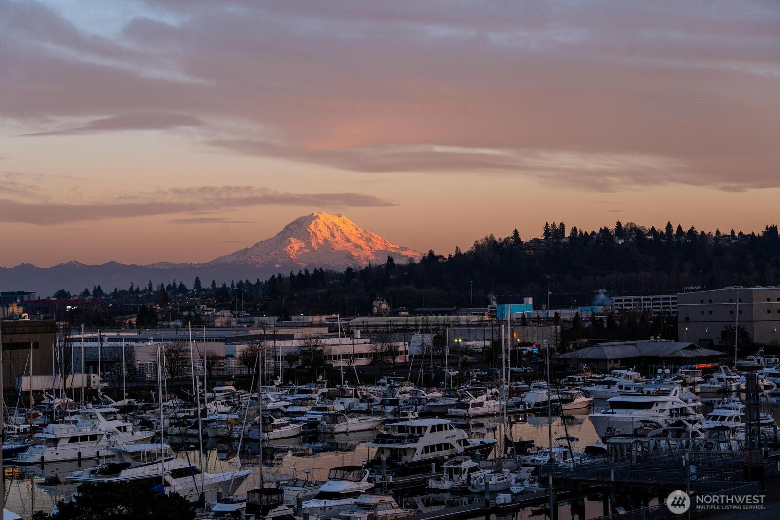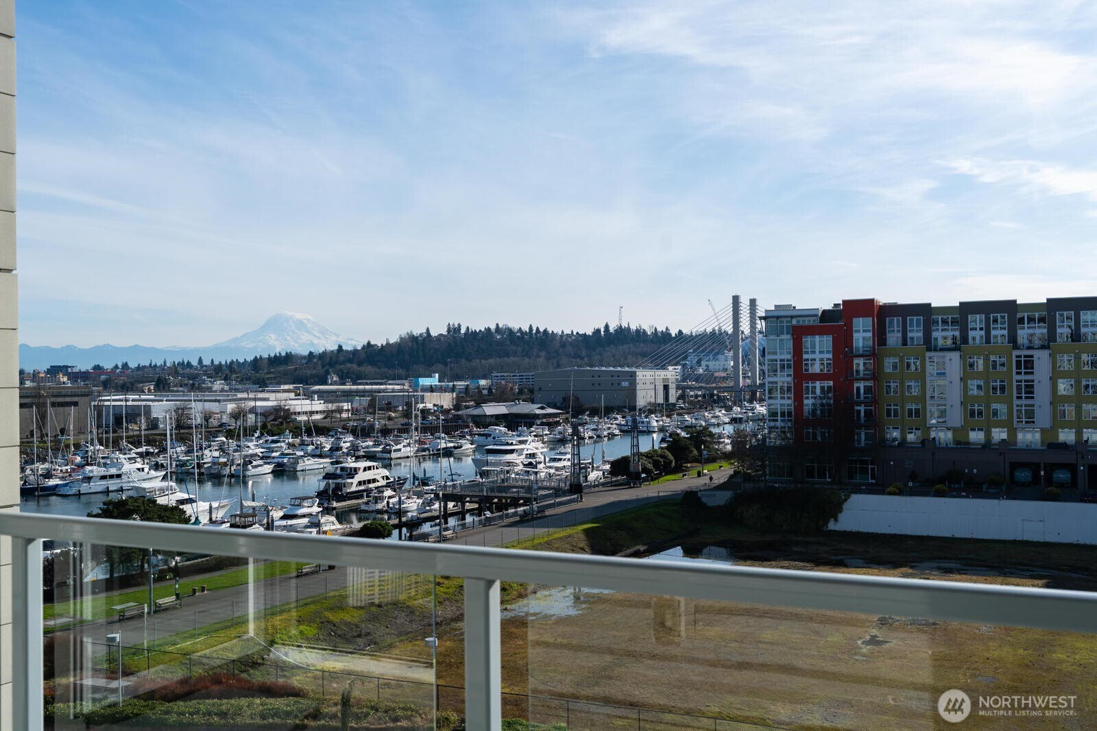 Exceptional Mt Rainier views from your deck with the Thea Foss Esplanade, marina and beach front access just outside your doorstep and moments from Downtown Tacoma! This perfectly positioned condo checks all the boxes. Inside, enjoy a spacious open-concept layout where the kitchen flows seamlessly into the dining and living areas, all leading directly to the view deck—ideal for everyday living and entertaining. Both bedrooms are generously sized, complemented by exceptional storage rarely found in condo living. The building’s concrete and steel construction delivers ultra-quiet interiors, while the well-managed HOA boasts strong reserves and fantastic shared amenities including a gym, common area tv room with kitchen and game room. Conveniently located near world-class museums, dining, hospitals, UW Tacoma, JBLM, Point Defiance & Point Ruston. From your private balcony, panoramic views of Mount Rainier, the Thea Foss Waterway, the marina, and Tacoma’s skyline create a breathtaking backdrop from sunrise to sunset. Additional highlights include no rental cap, two garage parking spaces, a dedicated storage unit, and a pre-inspection available.