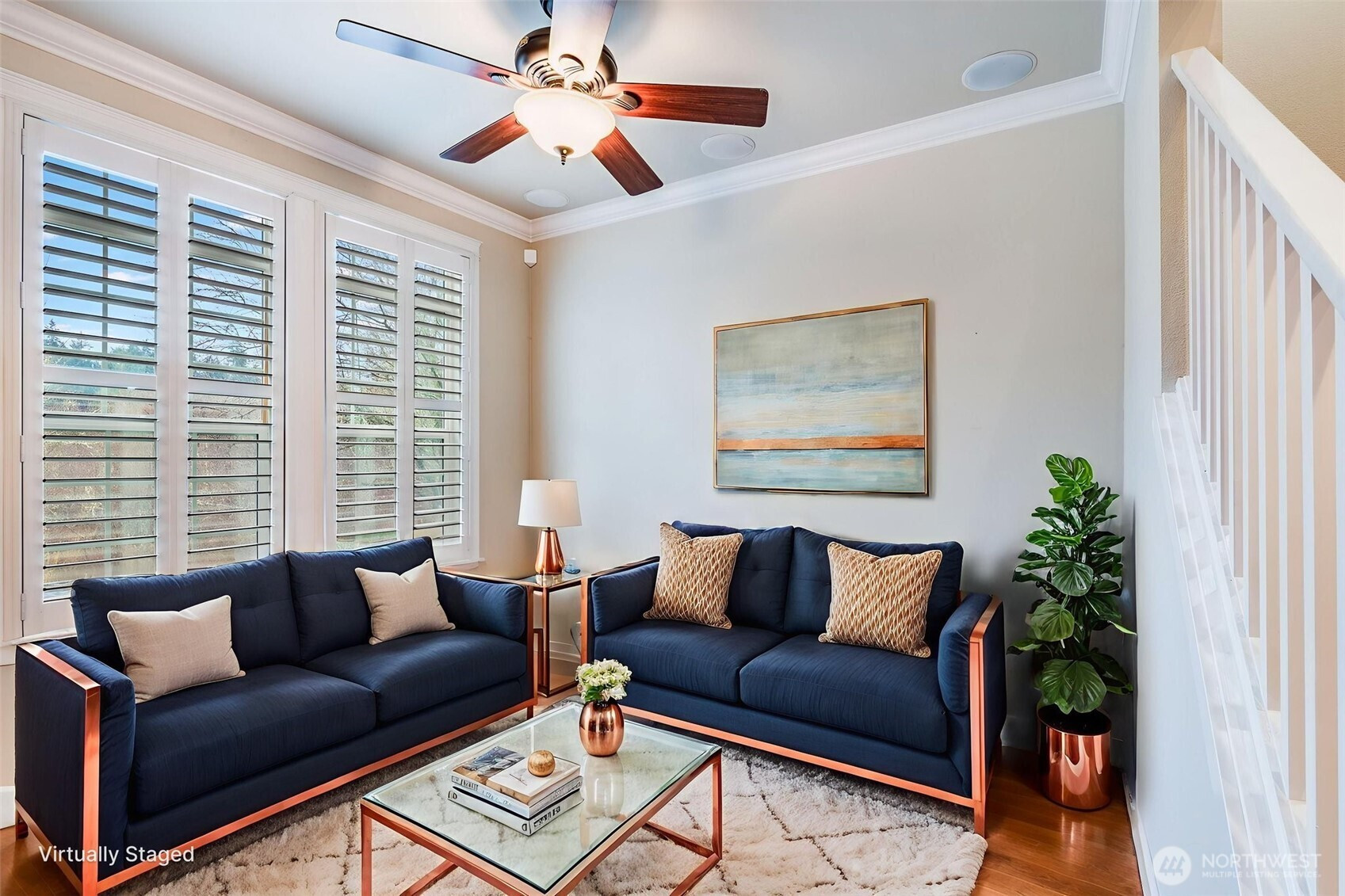 This stunning and well-maintained home is located in a sought after community.University Place School District! This home is better than new. Newer hardwood floors,newer stainless steel appliances,crown moldings,BOSE In-Ceiling surround sound system installed in main floor & in most rooms upstairs.California closets,granite counters,Plantation Shutters.This very low maintenance, paved, and fully-fenced backyard with gas firepit and water fountain is perfect for relaxing or entertaining.Gas fireplace in the living room is perfect for those cold winter nights! Great location,quiet community, and close to shopping & restaurants.This home overlooks the greenbelt across the street & the neighborhood park is just down the street.Virtually Staged!