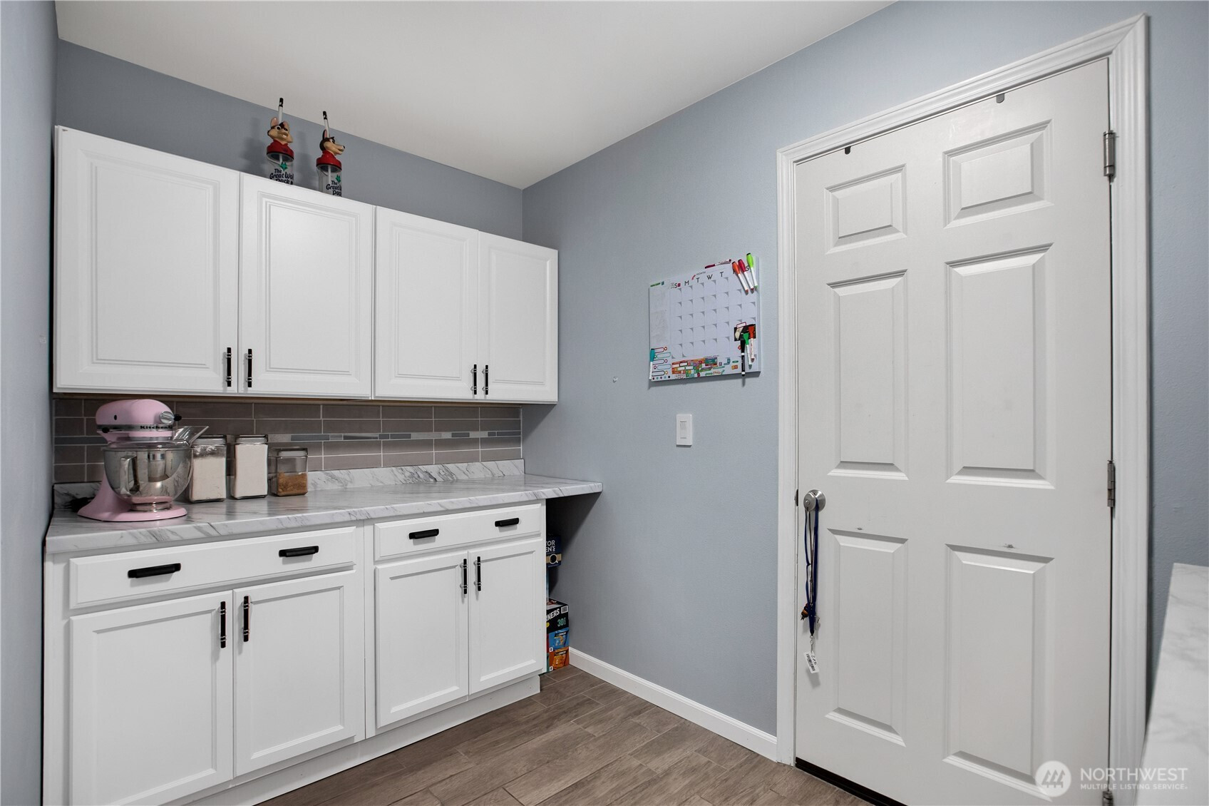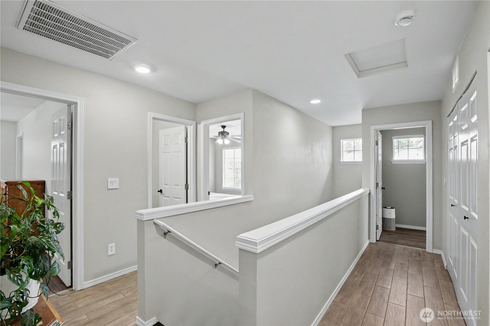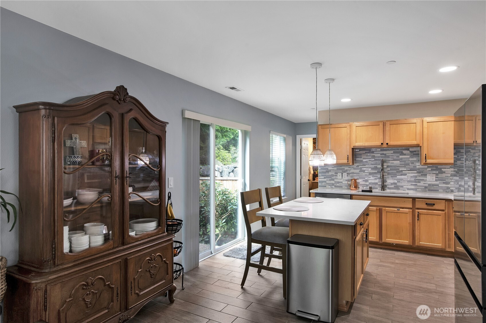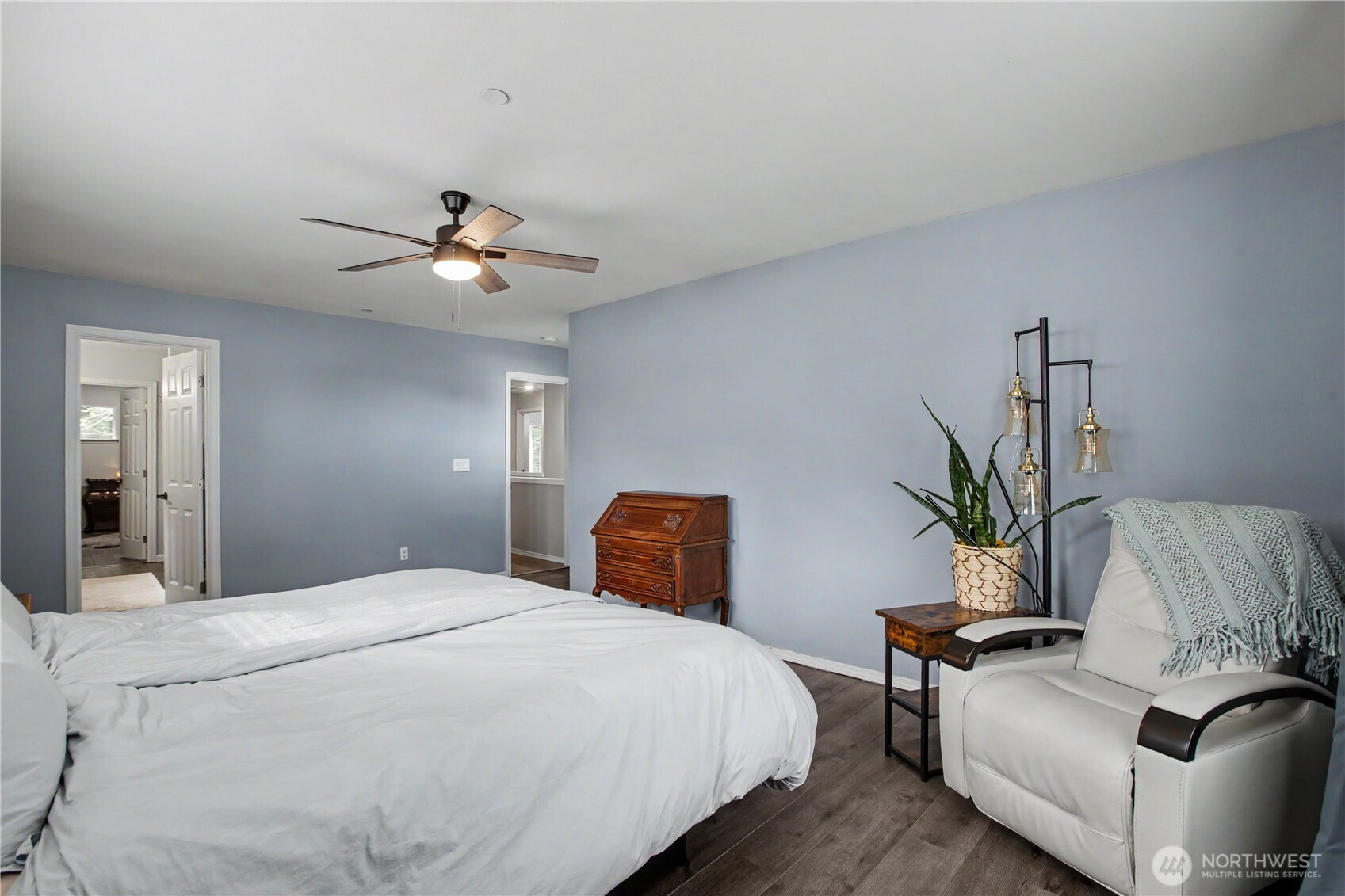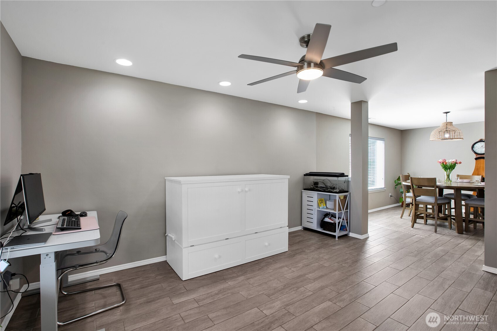 Bright, polished, and move-in ready! The covered front porch welcomes you in, while the private greenbelt backyard creates a peaceful retreat. This 4-bedroom, 2.5-bath home offers 2,603 sqft of thoughtfully designed space, including a front den/office, dining room, and main-level half bath. You’ll find durable ceramic tile throughout and a refreshed kitchen with new countertops, a center island, and walk-in pantry/mudroom. Upstairs, all bedrooms feature ceiling fans and walk-in closets, including a spacious primary suite with a 5-piece bath. Enjoy peace of mind with newer furnace, AC, water heater, and refrigerator, plus smart upgrades like updated lighting, Ecobee thermostat, motion-sensor bathroom lights, and humidity sensors. Complete with a 2-car garage, overhead storage, and trail access from your own backyard. Minutes to JBLM, I-5, and all DuPont has to offer!