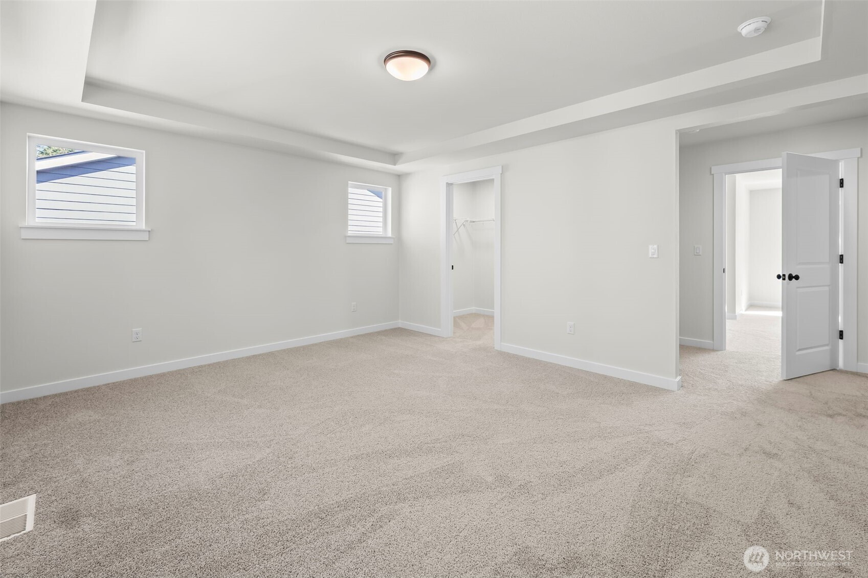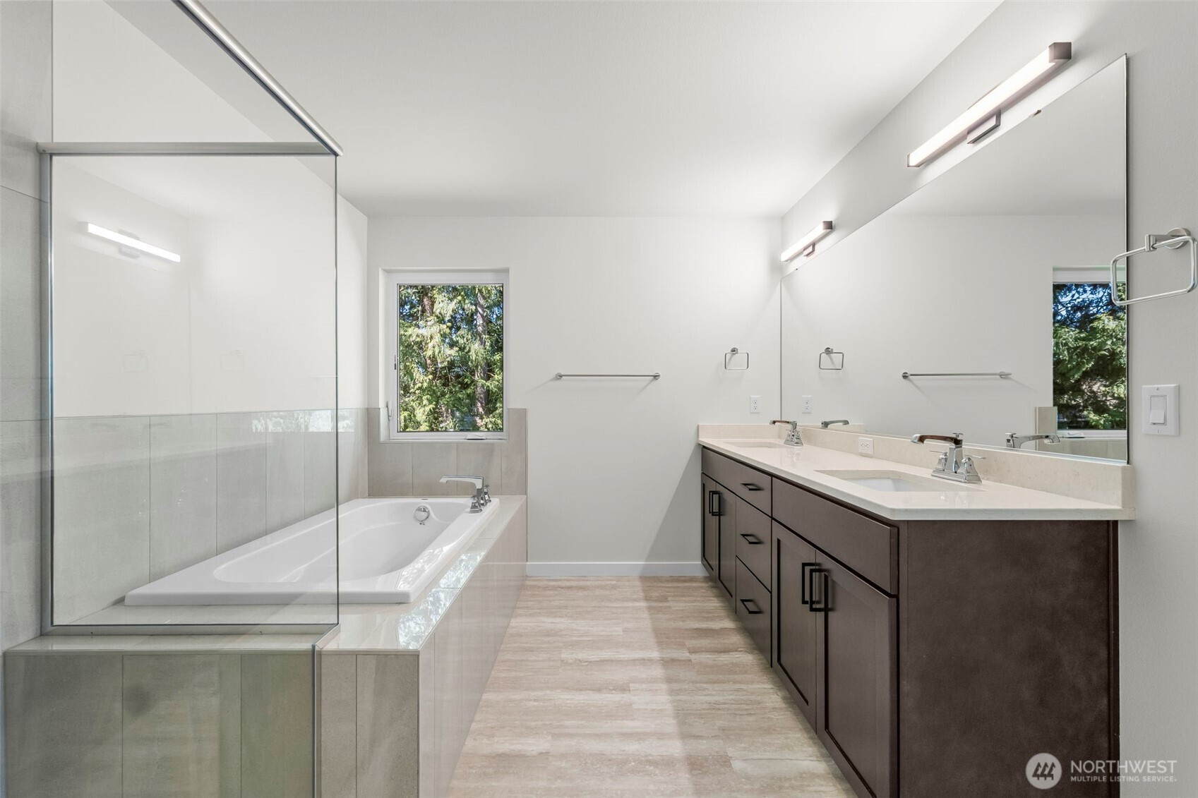 Mountain Glen, a Fabulous New Home Community in Puyallup. Final opportunity in this sought-after cul-de-sac community, ideally located near schools, shopping, dining & everyday conveniences. Move in just in time for summer and enjoy the perfect blend of comfort, style, and functionality. Designed with today’s lifestyle in mind, the open-concept main floor offers seamless indoor-outdoor living. The spacious great room w/ cozy gas FP flows effortlessly into the dining area and beautifully appointed kitchen—complete w/ quartz countertops, center island, tile backsplash, stainless steel appliances incl gas range, soft-close cabinetry, and a generous walk-in pantry. Step outside to your covered patio overlooking a fully fenced and professionally landscaped backyard—perfect for entertaining or relaxing all season long. Upstairs, retreat to the private primary suite featuring a walk-in closet, and convenient direct access to the laundry room. The spa-inspired 5-piece ensuite includes a glass and tile shower, soaking tub, and dual vanities. Additional highlights include designer-selected finishes, white millwork, wrought-iron railing, 8' interior doors on the main level and heatpump with A/C for year-round comfort. Rare 3-car garage includes a 10' high third bay door—ideal for larger vehicles, recreational gear, or extra storage. Builder included upgrades: mandoor in garage, upper/lower cabinets in laundry, coffered ceiling in primary & direct access to laundry room from Primary.