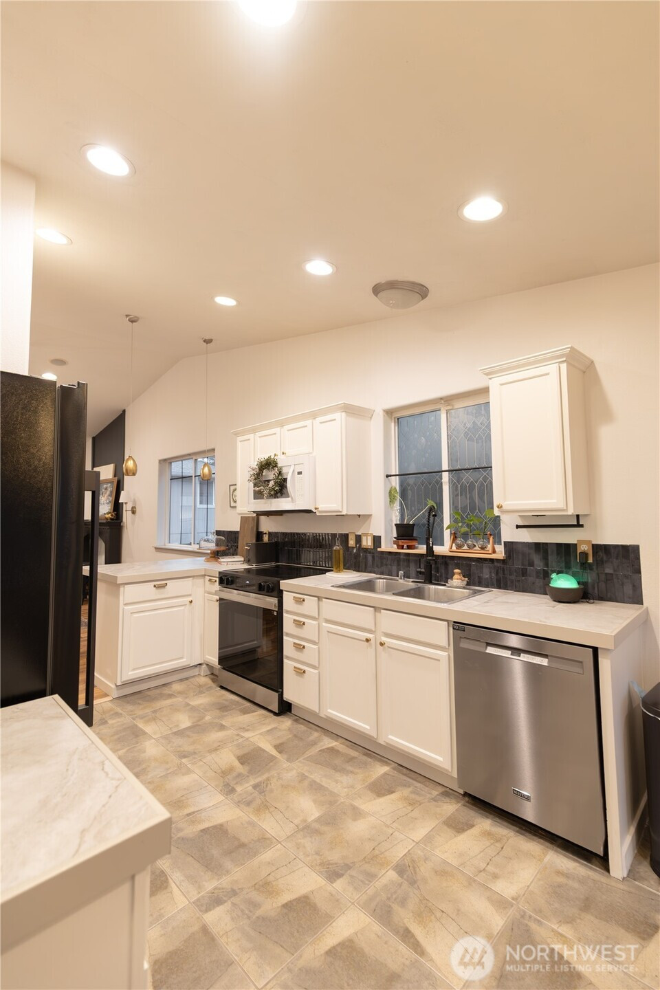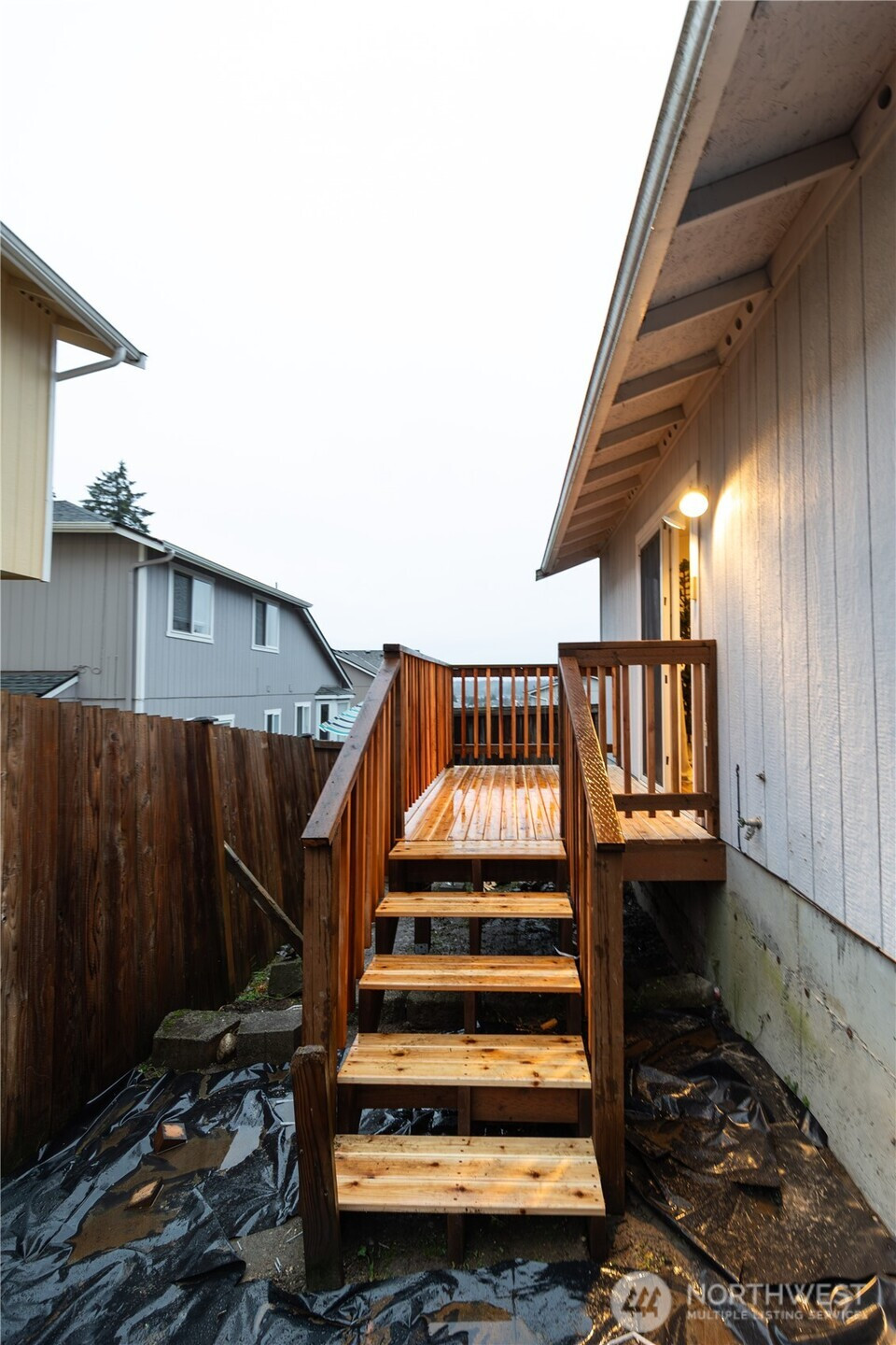 Beautifully updated 3 Bedroom & 2 Bathroom home with vaulted ceilings and a bright open layout. Charming features include hand-painted accent walls, built in laundry room cabinets for extra storage, with new light fixtures throughout the home. Enjoy large windows for tons of natural light. Enjoy a freshly updated kitchen with brand-new appliances and modern farmhouse touches throughout. Bedrooms feature new carpet, and both bathrooms are nicely updated with new tile flooring and a wood vanity. The spacious primary suite fits a king bed and offers a walk-in closet and private en-suite. Outside, enjoy a fenced, low maintenance yard with a brand new deck. SELLER TO GIVE $5k TOWARDS CLOSING WITH A FULL PRICE OFFER!
