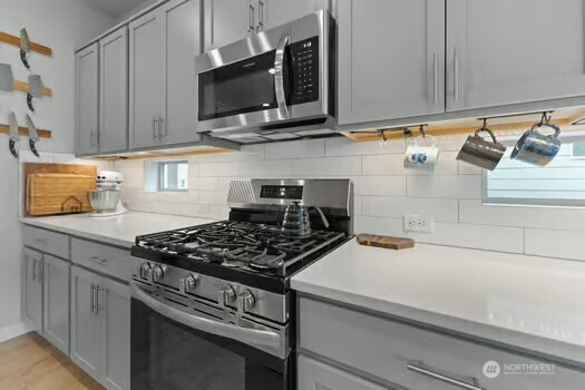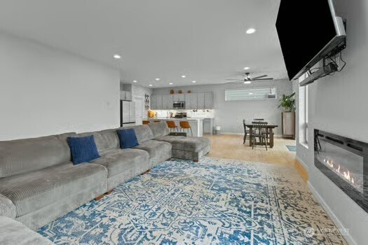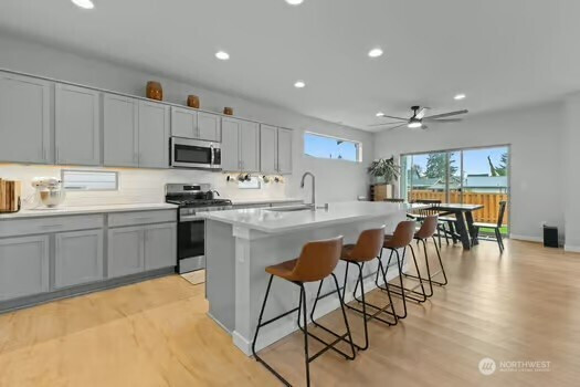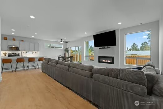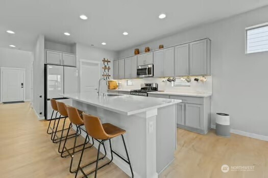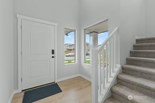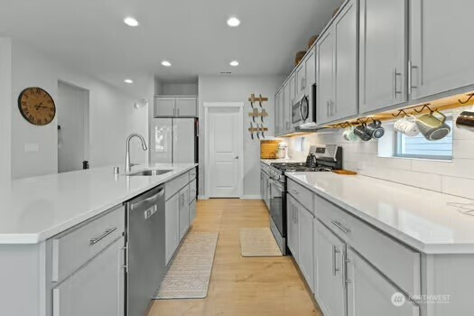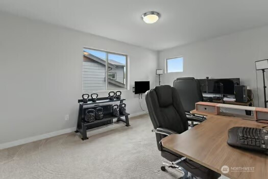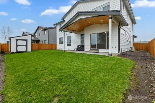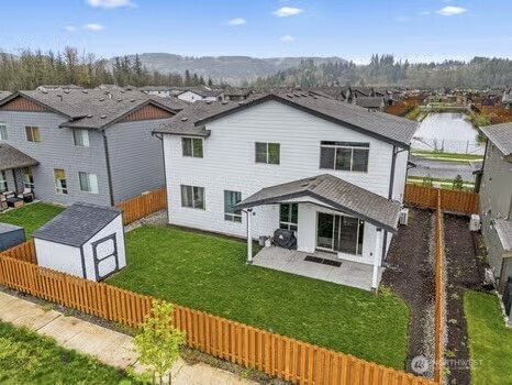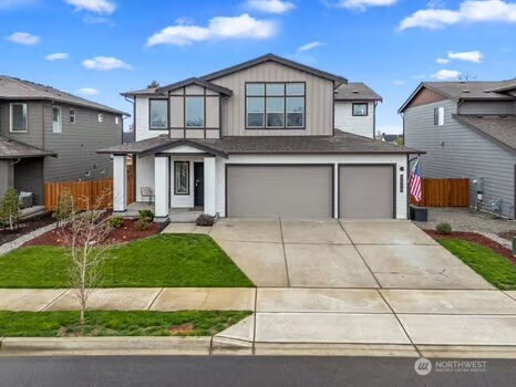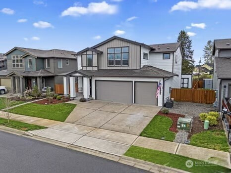 Experience refined living in this beautifully designed Buckley home, offering the largest floorplan in the neighborhood and thoughtfully curated upgrades throughout. From the moment you enter, you’re welcomed by expansive living spaces filled with natural light and a seamless flow perfect for both everyday living and entertaining. The heart of the home is a stunning chef’s kitchen featuring a generous island, gas range, walk-in pantry, tile backsplash, and abundant cabinetry, all opening to a warm and inviting living area with a fireplace. A rare main-level junior suite adds flexibility for guests or multi-generational living. Upstairs, the vaulted primary suite is a true retreat with a spa-inspired 5-piece bath and dual closets. An expansive loft offers additional space for work, relaxation, or entertaining, while spacious bedrooms and modern smart home features enhance everyday living. An oversized 3 car garage with smart openers. Outside, enjoy a fully fenced yard with a covered front porch and covered back patio, ideal for year-round enjoyment, all near neighborhood parks in the sought-after White River School District.
