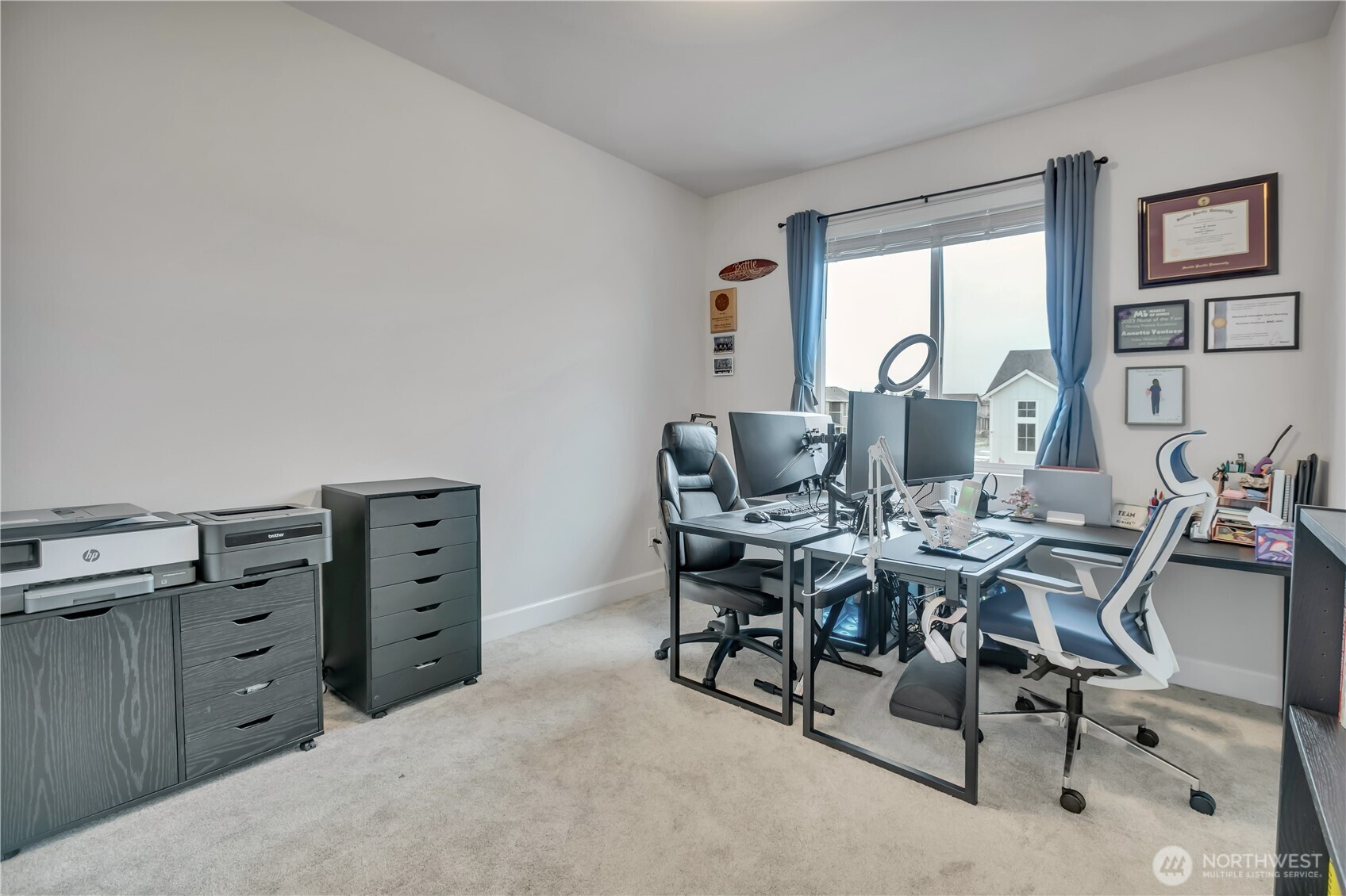 Beautiful resale by Richmond American Homes featuring the sought-after Yorktown plan in Glacier Pointe at Tehaleh! This impressive 5-bed home offers 3,146 sq ft with 3 full baths & one ¾ bath, thoughtfully designed for comfort & flexibility. Ideal for multigenerational living, the main floor includes a bedroom with ¾ bath located just across the hall. Expansive great room with cozy gas fireplace flows seamlessly into the gourmet kitchen, showcasing stainless steel appliances, enormous center island, walk-in pantry & adjacent dining area—perfect for entertaining. An abundance of windows fills the home with natural light. Upstairs you’ll find an immense loft surrounded by 3 bedrooms, including one with its own private full bath. Enjoy beautiful front-facing Mt. Rainier views from two of the bedrooms and the backyard. The spacious laundry features abundant cabinetry & beverage fridge! The luxurious primary suite offers private bath complete with soaking tub & walk-in closet. Enjoy tons of storage with several large closets & thoughtfully designed spaces to keep everything organized. This home is also wired for a generator, features an electric car charging station, central AC, and sprinklers. Step outside to year-round outdoor living on the large covered patio overlooking the fully fenced backyard. Situated on a spacious corner lot with 3-car garage, this home delivers space, functionality, and an exceptional lifestyle in one of the area’s most desirable communities.