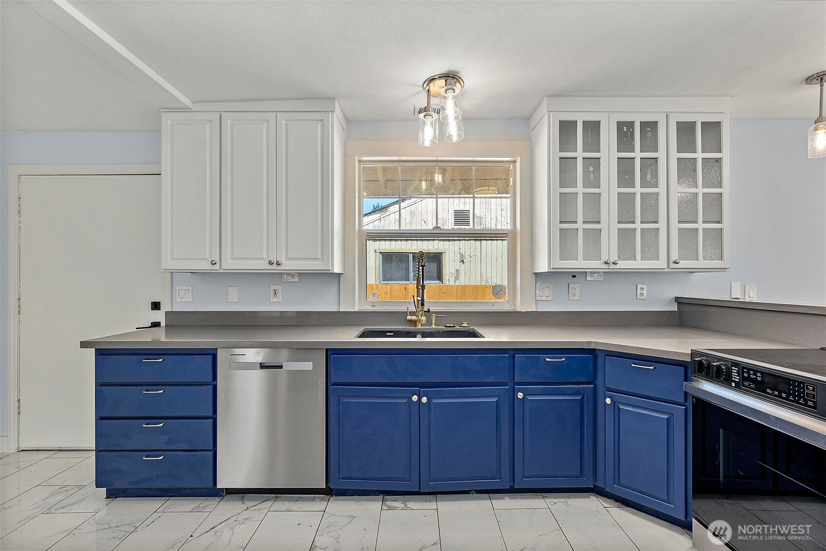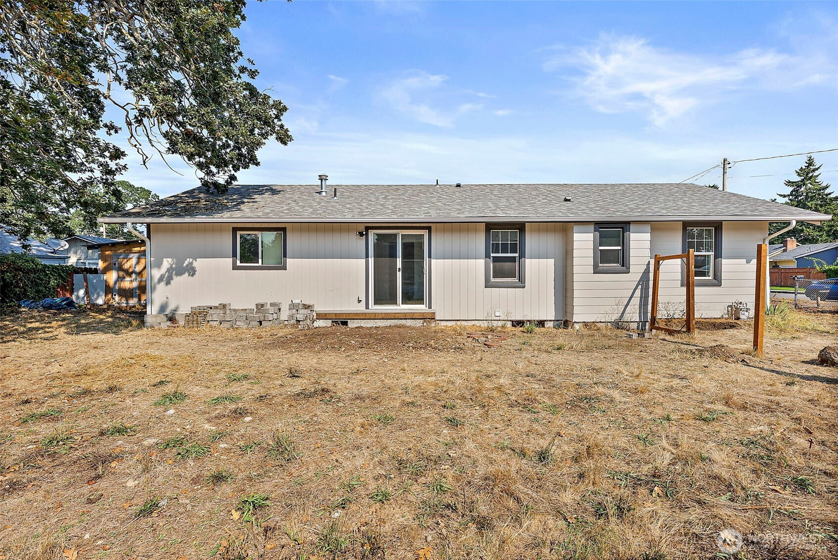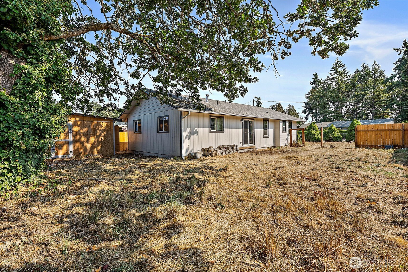 Updated rambler just North of JBLM main gate and walk to American Lake. A few blocks off I-5, this 1-story shines. Updates inclusive of newer roof, solid surface floors and ceramic tile. *Original hardwoods underneath* Kitchen has abundant cabinets, updated quartz counters & a brand-new stainless appliance package. Modern touches - baths, vanities, fixtures, custom lighting, fresh doors, trim & wood wrapped windows. Outdoors features fully fenced and new cedar at front, plus new storage shed. Lot offers potential for detached garage, and has RV or boat parking. Seller just completed finishing touches after photos - come see the upgrades in person!