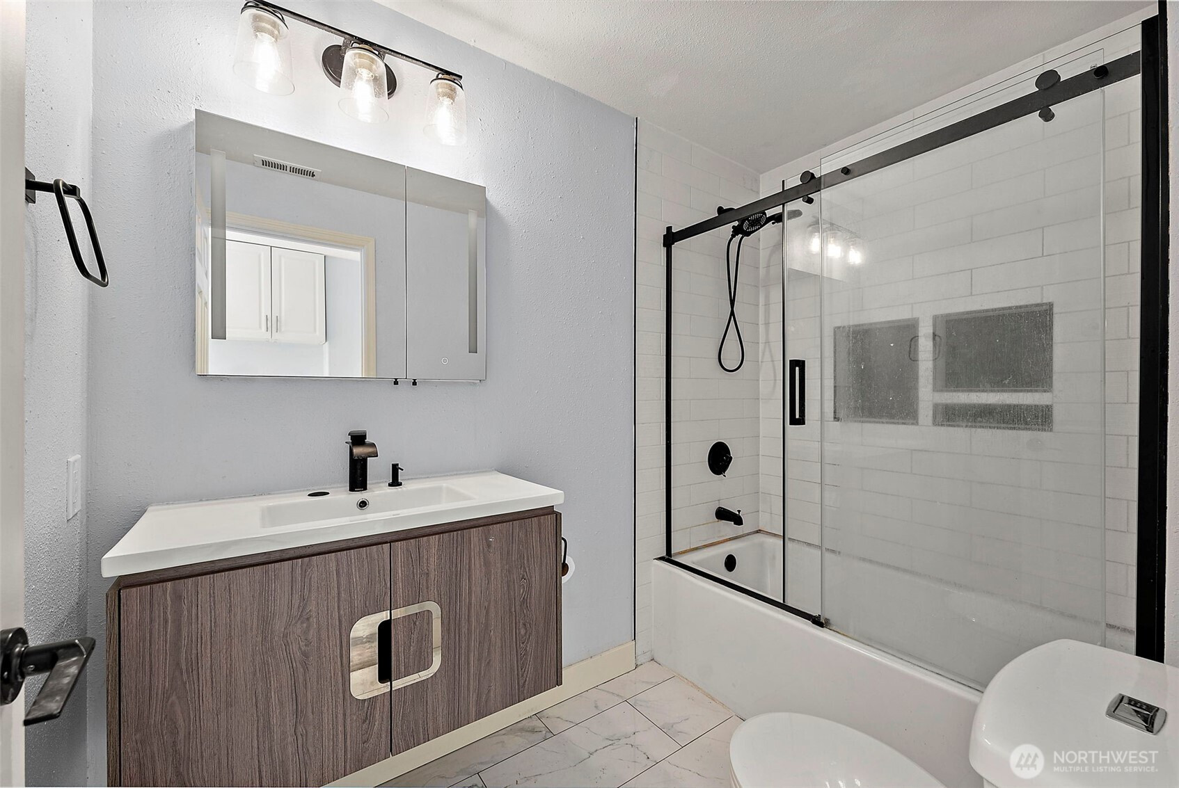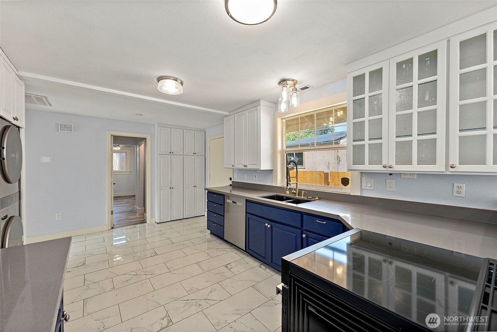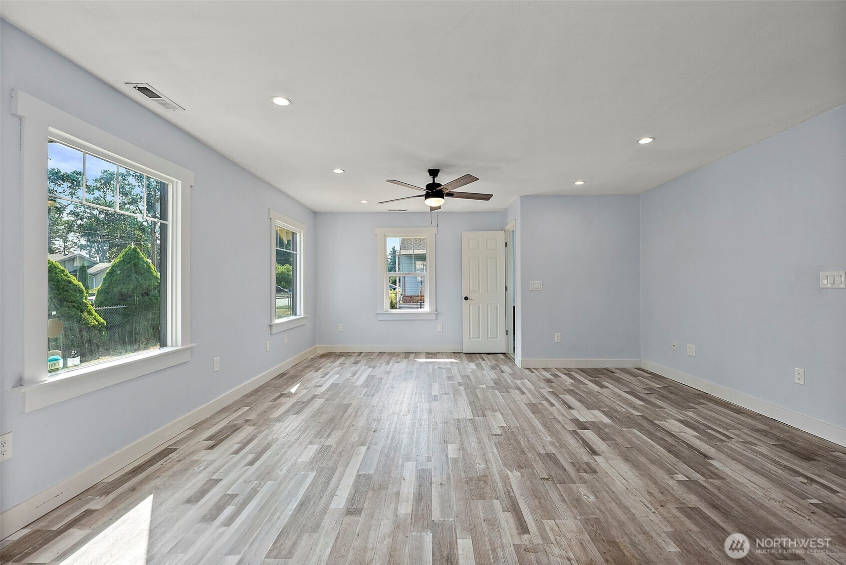 Updated rambler just North of JBLM main gate and walk to American Lake. A few blocks off I-5, this 1-story shines. Updates inclusive of newer roof, solid surface floors and ceramic tile. *Original hardwoods underneath* Kitchen has abundant cabinets, updated quartz counters & a brand-new stainless appliance package. Modern touches - baths, vanities, fixtures, custom lighting, fresh doors, trim & wood wrapped windows. Outdoors features fully fenced and new cedar at front, plus new storage shed. Lot offers potential for detached garage, and has RV or boat parking. Seller just completed finishing touches after photos - come see the upgrades in person!