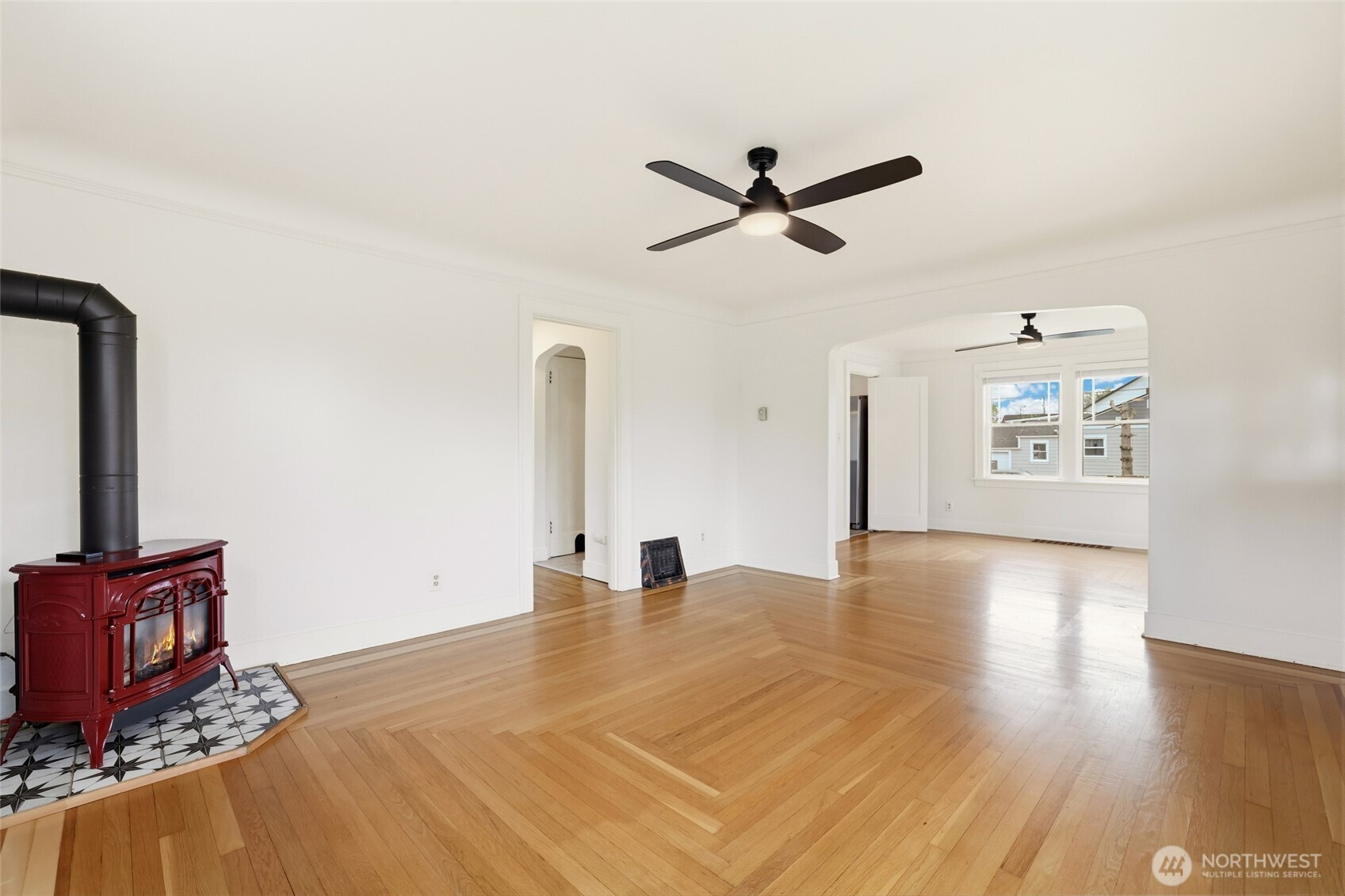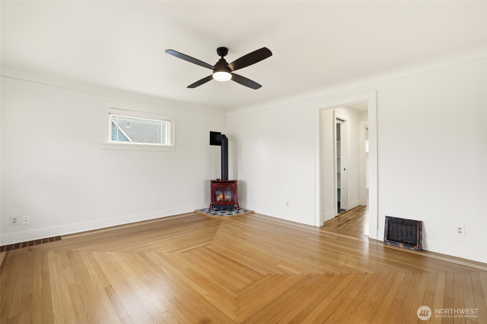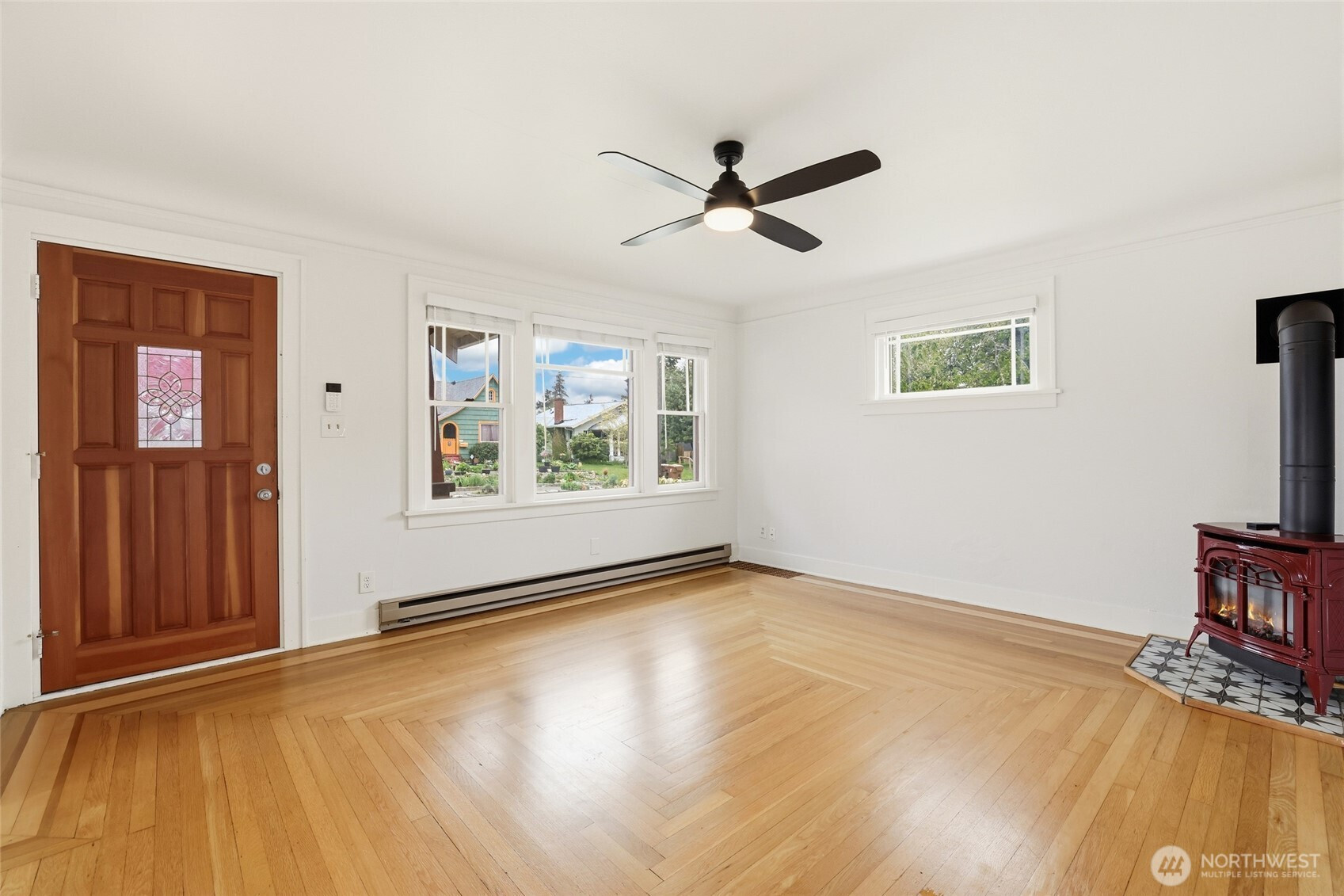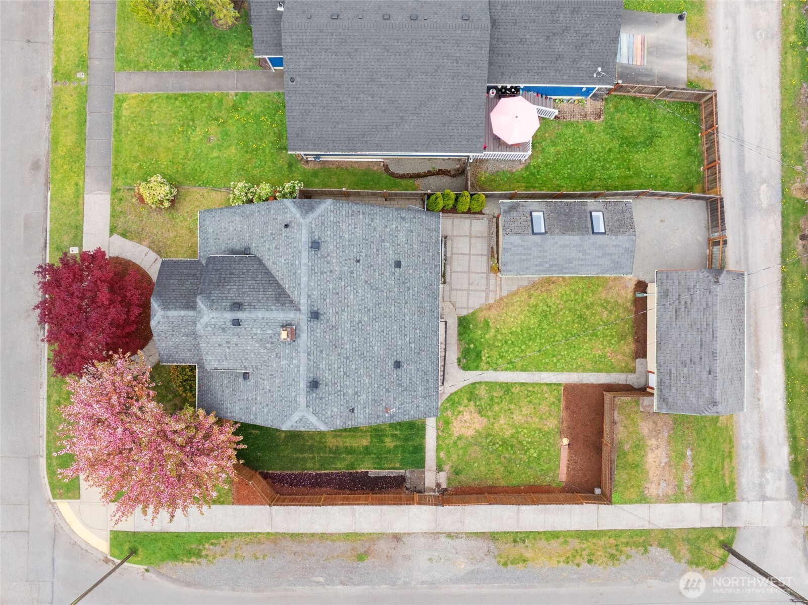 Classic Tacoma Craftsman charm packed with character, updates, and versatility. From the covered front porch with brick pillars and exposed rafter tails to the beautifully refinished oak hardwoods with herringbone inlay inside, this home celebrates its period architecture while delivering modern updates where they matter most. The remodeled kitchen features crisp white shaker cabinetry, sleek dark counters, stainless appliances, recessed lighting, & deep undermount sink. Updated bathrooms include a spa-inspired main bath with floor-to-ceiling subway tile, a fixed square showerhead plus handheld sprayer, soaking tub, & matte black fixtures. A gas stove on a decorative tile hearth anchors the sunlit living room, accented by coved ceilings, original millwork, & wood doors w/ period hardware. Upstairs offers generous bedrooms, a walk-in closet w/ original hook rail & soft dormer light. The lower level presents a fully functional ADU/MIL w/private exterior entrance, full kitchen, full bath, & its own laundry, built flexibility for multi-generational living arrangements or rental income potential. And the crown jewel: DOUBLE LOT with a fully fenced expansive lawn, detached garage/shop, bonus storage shed, & plenty of extra side parking for trailers, boats, or RVs—all framed by mature flowering cherry & Japanese maple. Historic character, modern updates, & outdoor space come together in one rare offering. Commuters' dream- Close to parks, ball fields, shopping, & the I-5 corridor.
