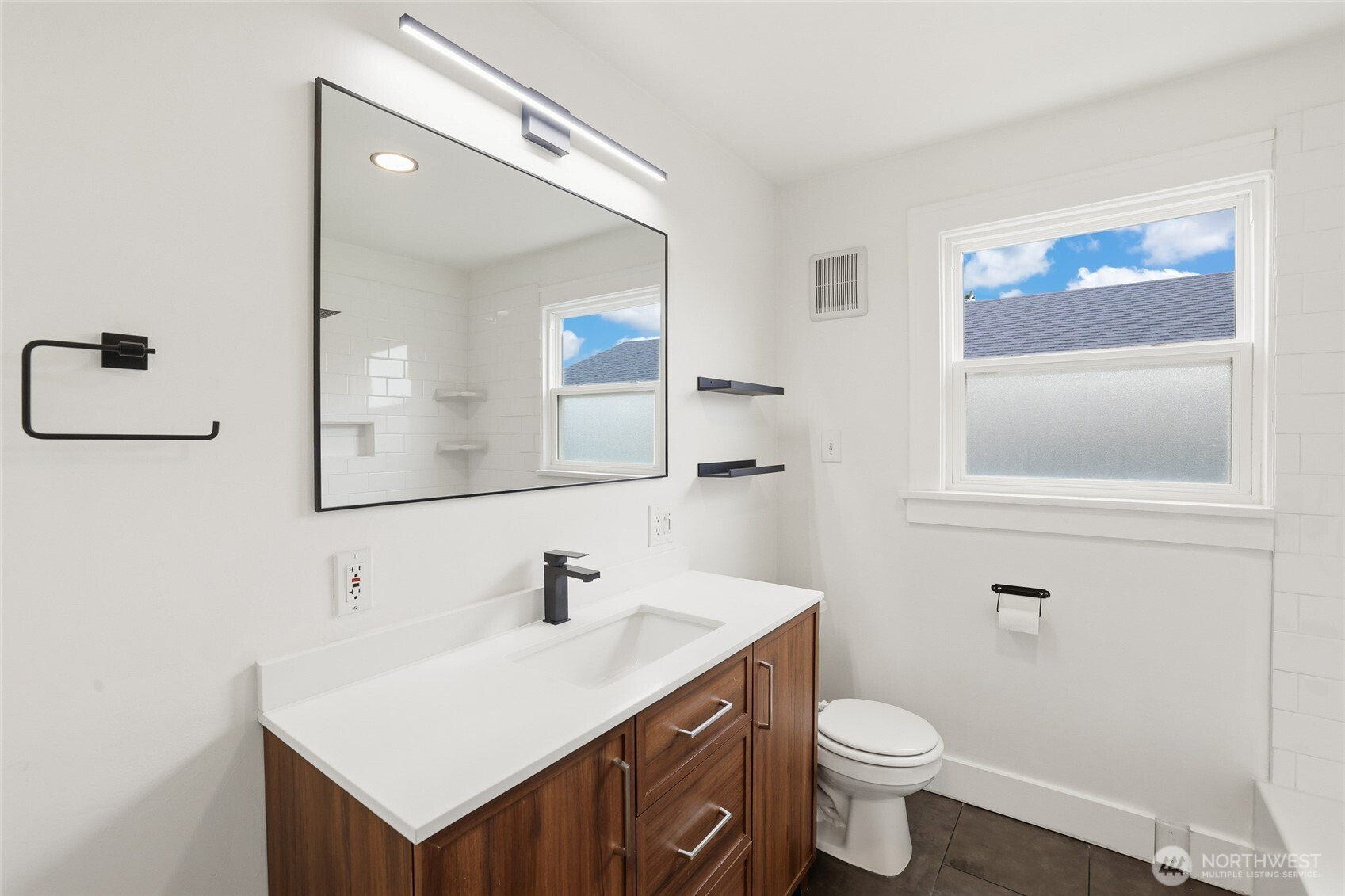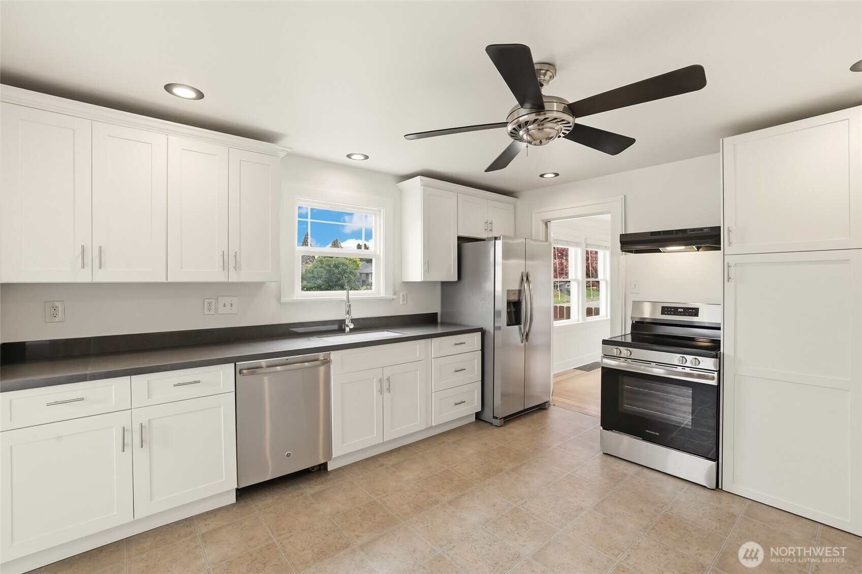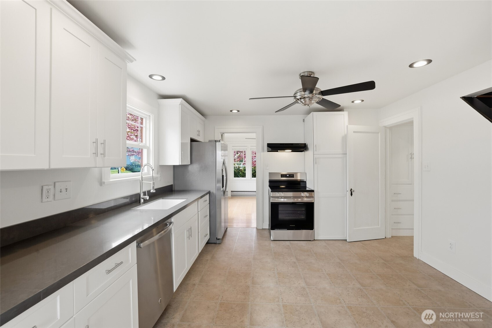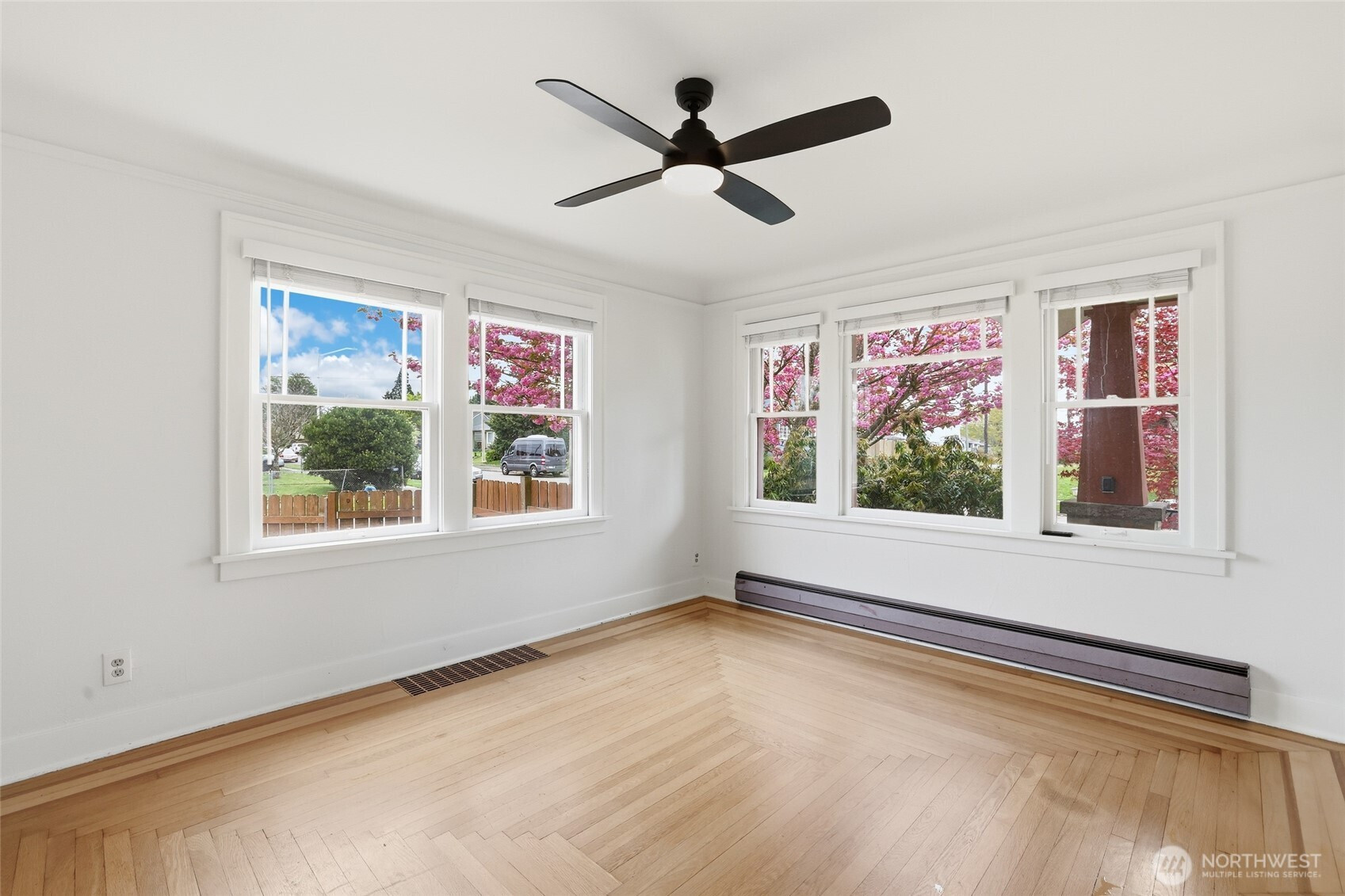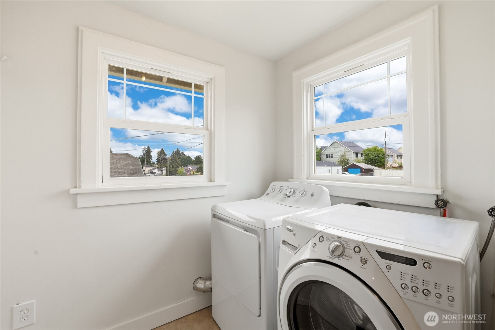 Classic Tacoma Craftsman charm packed with character, updates, and versatility. From the covered front porch with brick pillars and exposed rafter tails to the beautifully refinished oak hardwoods with herringbone inlay inside, this home celebrates its period architecture while delivering modern updates where they matter most. The remodeled kitchen features crisp white shaker cabinetry, sleek dark counters, stainless appliances, recessed lighting, & deep undermount sink. Updated bathrooms include a spa-inspired main bath with floor-to-ceiling subway tile, a fixed square showerhead plus handheld sprayer, soaking tub, & matte black fixtures. A gas stove on a decorative tile hearth anchors the sunlit living room, accented by coved ceilings, original millwork, & wood doors w/ period hardware. Upstairs offers generous bedrooms, a walk-in closet w/ original hook rail & soft dormer light. The lower level presents a fully functional ADU/MIL w/private exterior entrance, full kitchen, full bath, & its own laundry, built flexibility for multi-generational living arrangements or rental income potential. And the crown jewel: DOUBLE LOT with a fully fenced expansive lawn, detached garage/shop, bonus storage shed, & plenty of extra side parking for trailers, boats, or RVs—all framed by mature flowering cherry & Japanese maple. Historic character, modern updates, & outdoor space come together in one rare offering. Commuters' dream- Close to parks, ball fields, shopping, & the I-5 corridor.