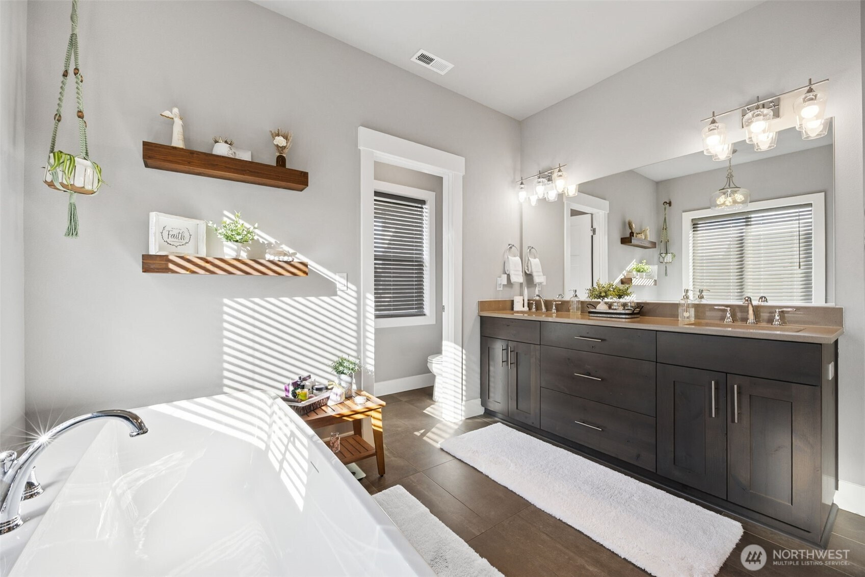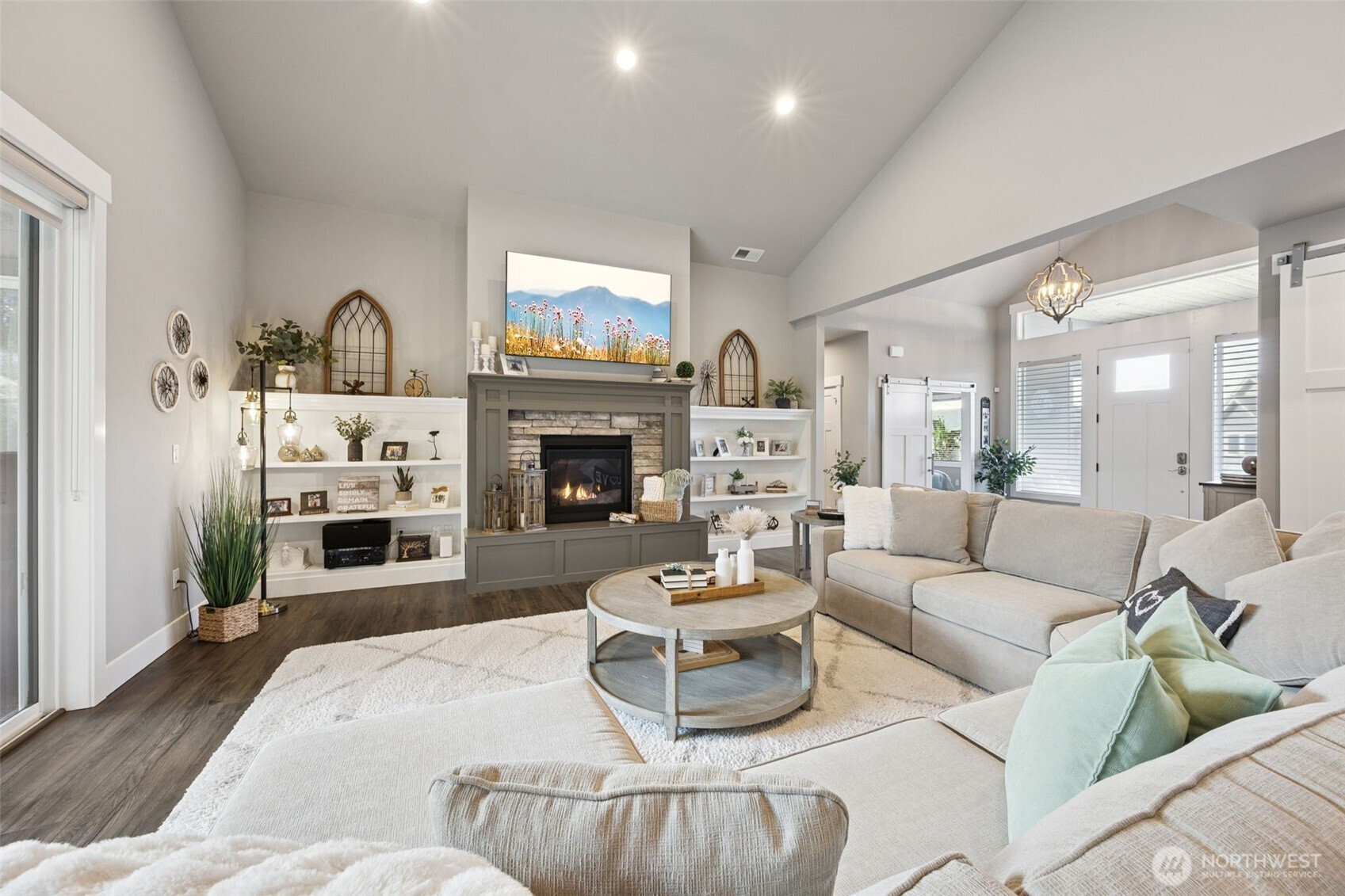 Private community • 3,146 sq ft • 3 beds • 3 baths • Eatonville Beautifully designed single-level residence nestled in a quiet, private community on Mountain Crest Lane, offering over 3,146 sq ft of thoughtfully appointed living space. This home blends a functional layout with designer touches, creating flexible spaces that are ideal for everyday living, entertaining, and multigenerational comfort. Large rooms include a soaring great room with a statement stone fireplace and built-in shelving, opening to the outdoors for seamless indoor-outdoor living. Chef-inspired kitchen features quartz countertops, extensive custom cabinetry, and high-end appliance accommodations, including oversized refrigerator space and ample prep areas. Three spacious bedrooms include a private junior suite and a generous primary retreat with dual walk-in closets and a luxury 5-piece en-suite bathroom with a jetted rain shower, an elegant soaking tub, and a dual vanity. Additional rooms, a bonus/game room, and a home office supporting versatile lifestyles and work-from-home needs. Outdoor living is enhanced by glass doors that lead to a covered veranda with a second fireplace and extended patio, perfect for year-round enjoyment. A fully finished, gorgeous 3-car garage and a large lot with manageable landscaping. Located close to all amenities, community parks, schools, and outdoor recreation options. A refined residence in a desirable setting designed for comfort and style. Includes virtual tour.