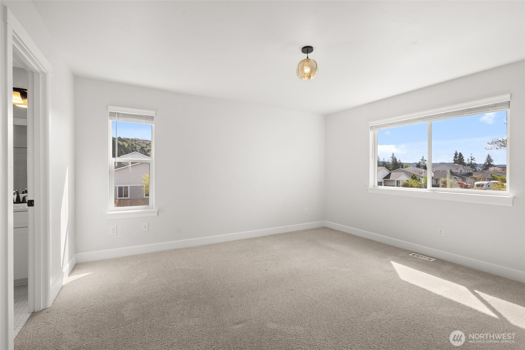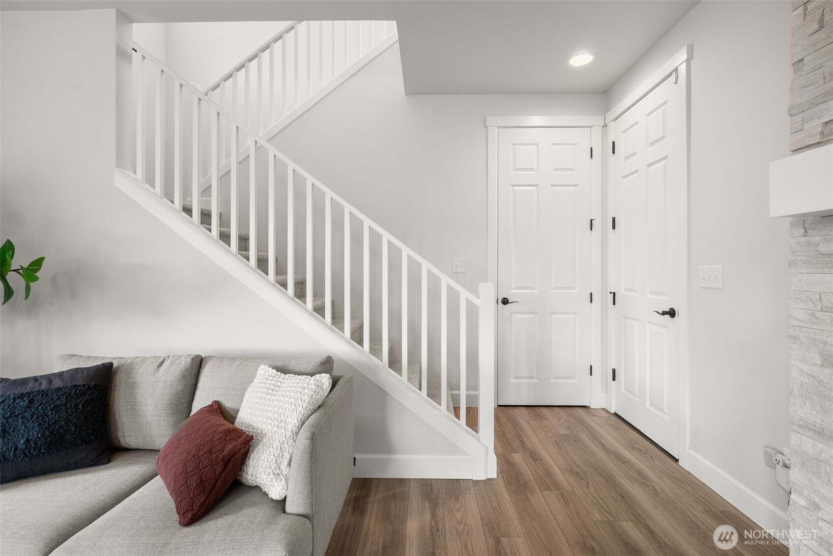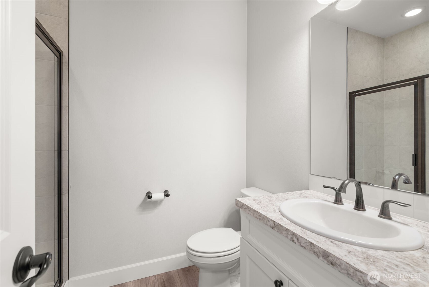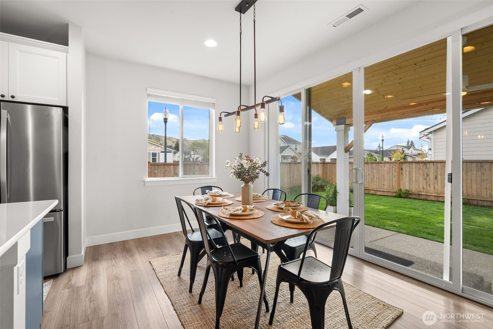Better-than-new and beautifully appointed, this 2021-built home in Sumner offers the ideal blend of style, function, and outdoor living. Featuring 4 bedrooms with a highly desirable main-floor bedroom and adjacent ¾ bath, this layout is perfect for guests, multi-generational living, or a flexible home office space. The open-concept great room is anchored by a stunning floor-to-ceiling stone-wrapped fireplace, creating a warm and inviting focal point. The designer kitchen showcases striking two-tone cabinetry, quartz counters, stainless appliances, and a large island that opens seamlessly to the dining and living areas. Upstairs you’ll find two generously sized guest bedrooms served by a full bath, along with a spacious primary suite featuring a large walk-in shower, oversized closet, & pic-a-boo views of Mt Rainier. Step outside to enjoy the oversized covered patio complete with an outdoor heater and ceiling fan—perfect for year-round entertaining. Situated on a large corner lot with abundant garden space, lush lawn, and room to play. Enjoy a convenient Sumner location close to schools, parks, shopping, and commuter routes.