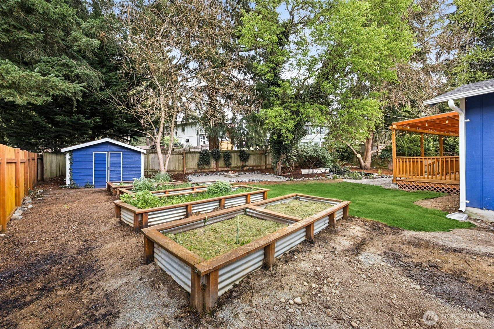 Adorable rambler in the desirable Rainier Meadows community offering 1,068 sq ft of thoughtfully utilized space, NO Homeowners Assocation, and RV parking! This move-in ready home is packed with updates, including a new roof, fresh interior and exterior paint, new interior doors, and stylish LVP flooring. The bright kitchen features newly painted cabinetry, ample prep space, and stainless steel appliances- all included. Functional layout with a primary bedroom plus two guest bedrooms and an updated bathroom showcasing new vinyl flooring, vanity, light fixtures and mirror. The backyard is the perfect entertianing space with a large, covered deck (built 4 years ago), tranquil pond, firepit area, raised garden beds, storage shed and fully fenced. A fantastic opportunity with modern updates and outdoor charm! Ask for our Features List.