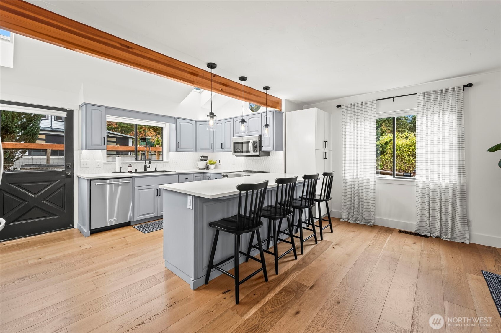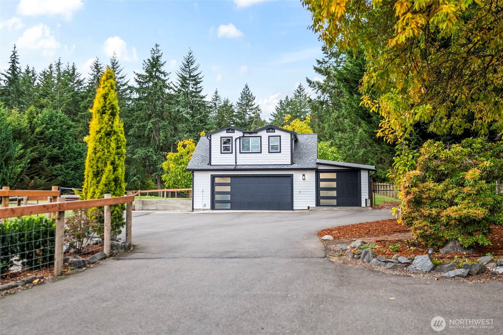 Country living within Gig Harbor—just minutes from Downtown Gig Harbor, Gig Harbor North (Costco, Target, Home Depot) and Hwy 16! This beautifully remodeled home shines with a brand-new kitchen, bathrooms, flooring, interior & exterior paint, new 4-bedroom septic, and fresh asphalt driveway. The main level offers a bedroom and 3/4 bath, while upstairs features a bedroom, office, and an additional 3/4 bath. Enjoy a rooftop patio, back deck with hot tub, and a 3-car detached garage (or 2-car + finished gym) with unfinished space above. Level, fully fenced 2.5 acres include outbuildings and carports—perfect blend of comfort, style, character and space!