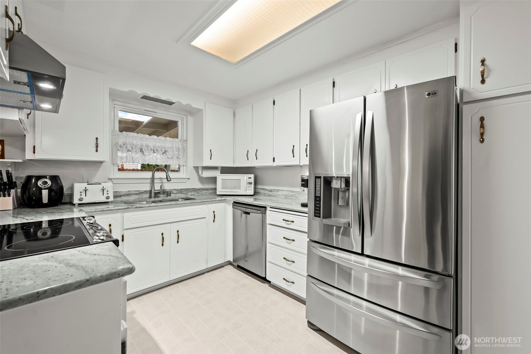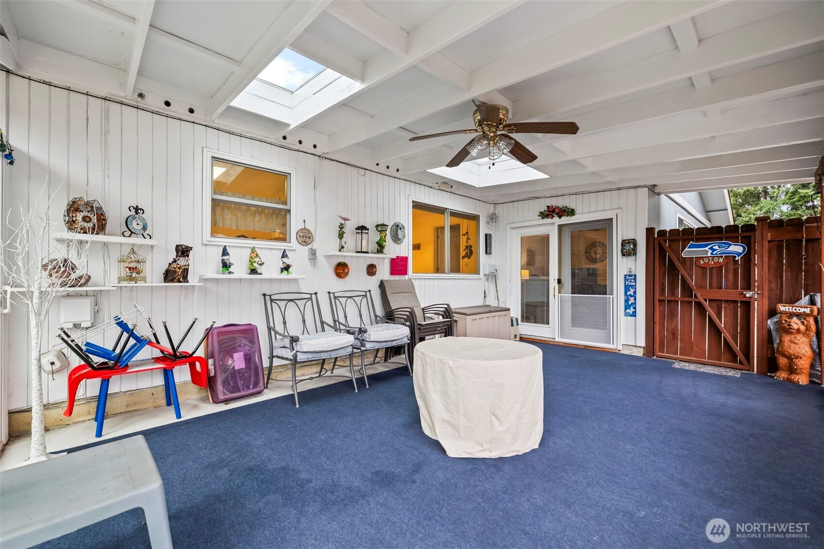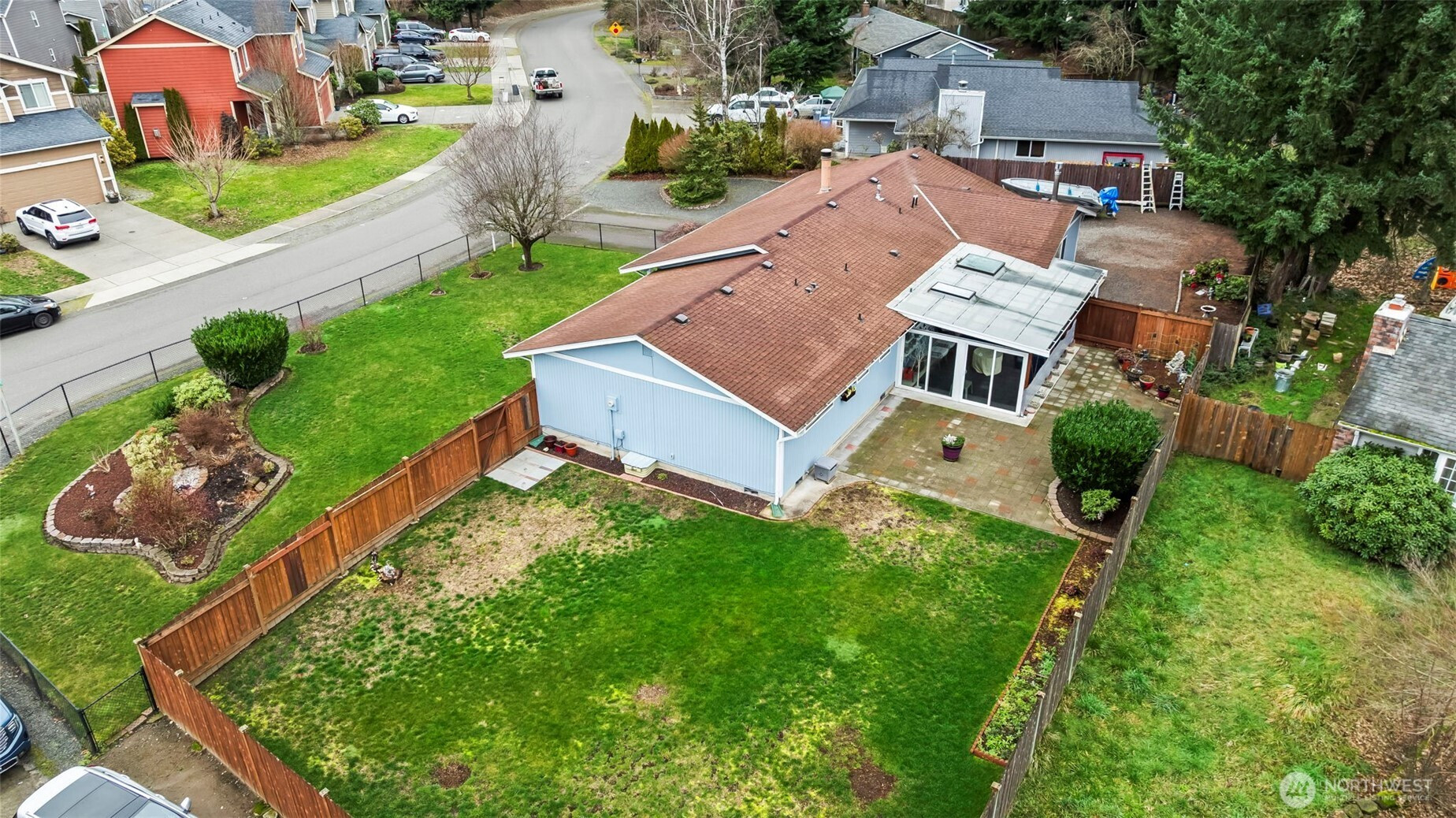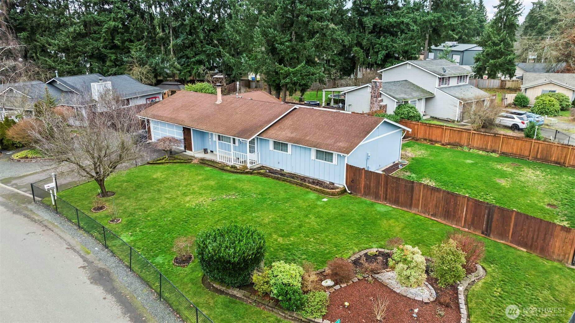 Looking for the single level home that has a large yard with extra space for RV storage, a place to put a boat, cars or side by sides, You name it this one has the enclosed space and gated. The property is fenced and landscaped beautifully. One step to the front door and you will be impressed with how lovingly maintained this home is with newer white blinds throughout and paint. Remodeled kitchen with white cabinets, granite and stainless appliances. The family room has a modern free standing gas stove that keeps you toasty. French doors out to the covered, enclosed patio area for year round enjoyment. The living room has a real wood fireplace, large bay window and the hallway that leads to the ample bedroom. minutes away from shopping, entertainment and recreation.