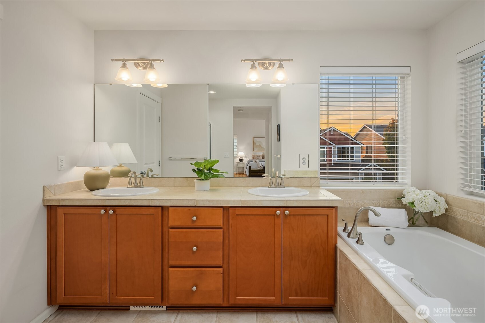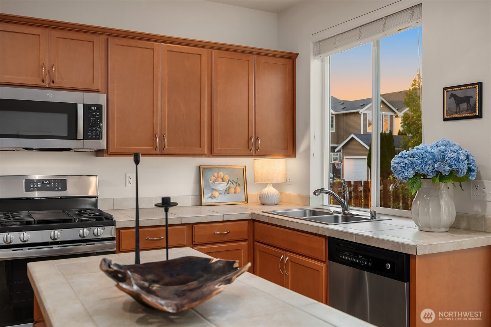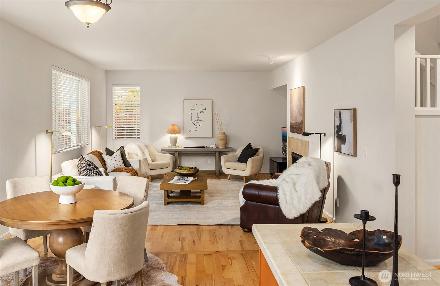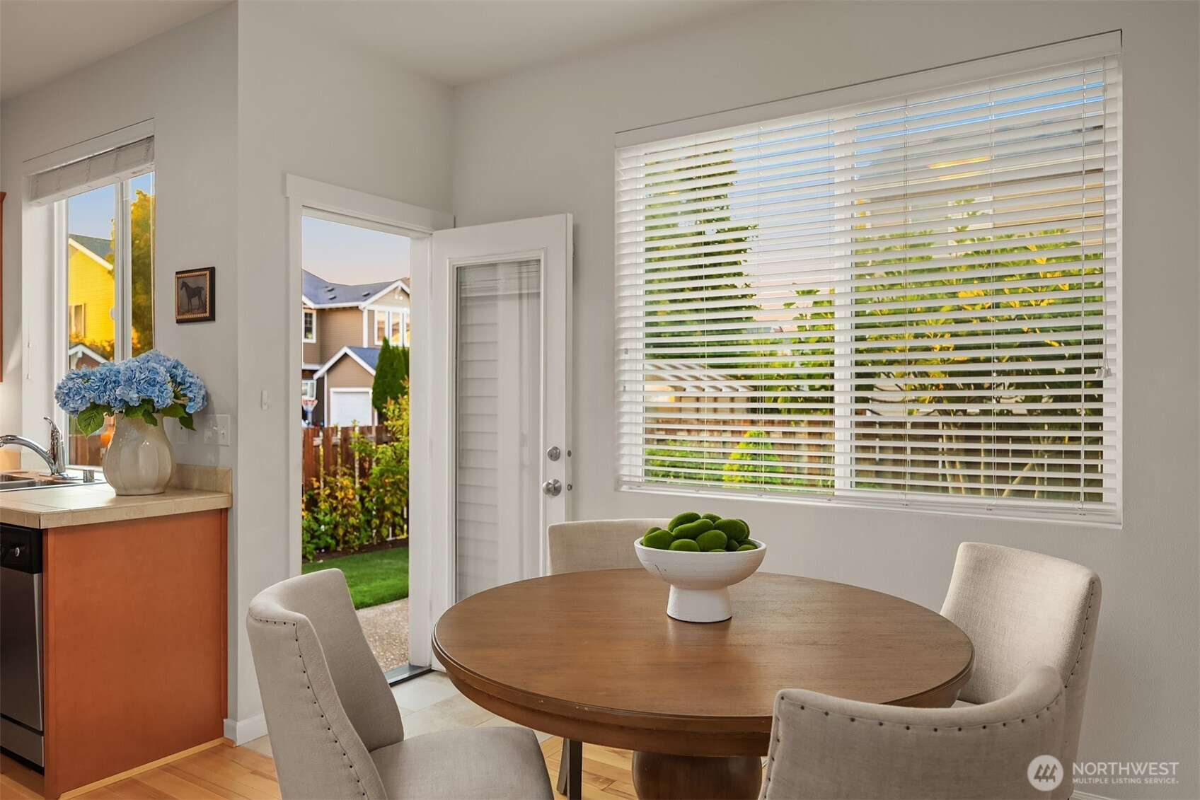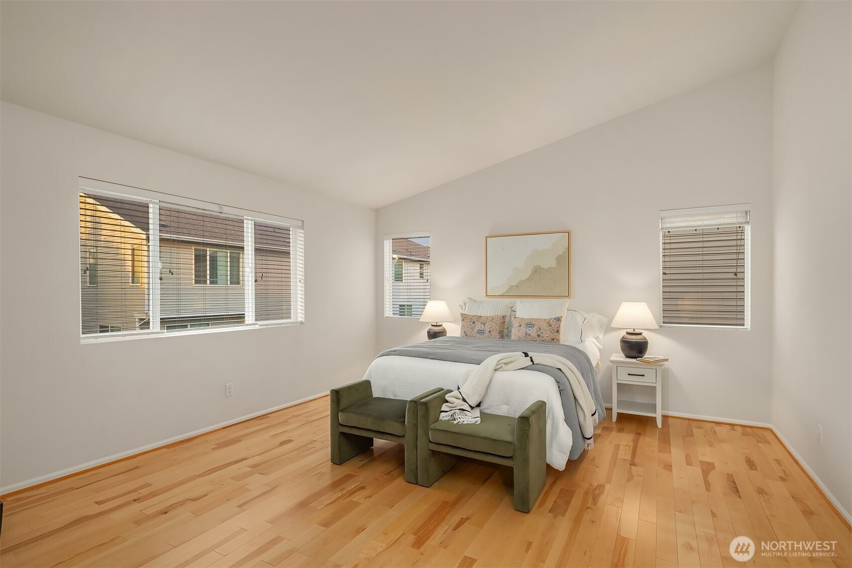 Sunny and move-in ready, this corner-lot gem in Lakeland shows true pride of ownership. Soaring ceilings and a bright dining room set the tone, flowing to a vaulted office and gourmet kitchen with wood cabinetry, island seating, and stainless appliances. The living room shines with hardwood floors, a gas fireplace, and custom niche. Upstairs, retreat to the vaulted primary suite with spa-like 5-piece bath, plus two spacious bedrooms and a full bath. A fenced yard with lush landscaping and sunlit patio completes this thoughtfully maintained home—just minutes to schools (Dieringer!), parks, dining, and shopping.